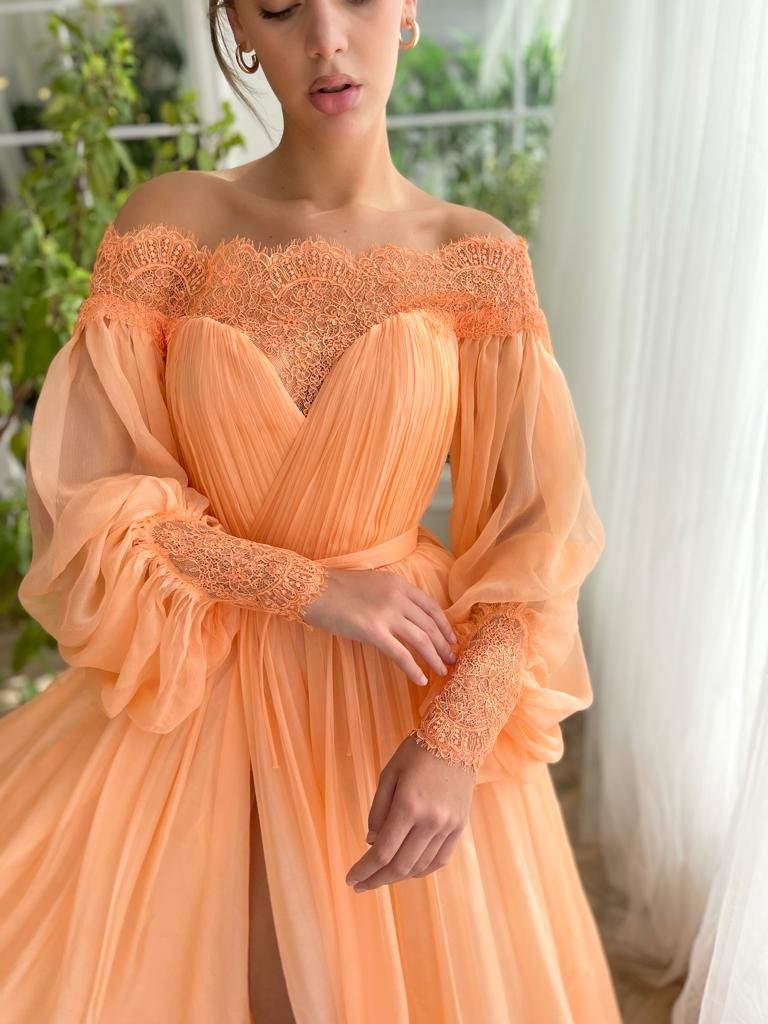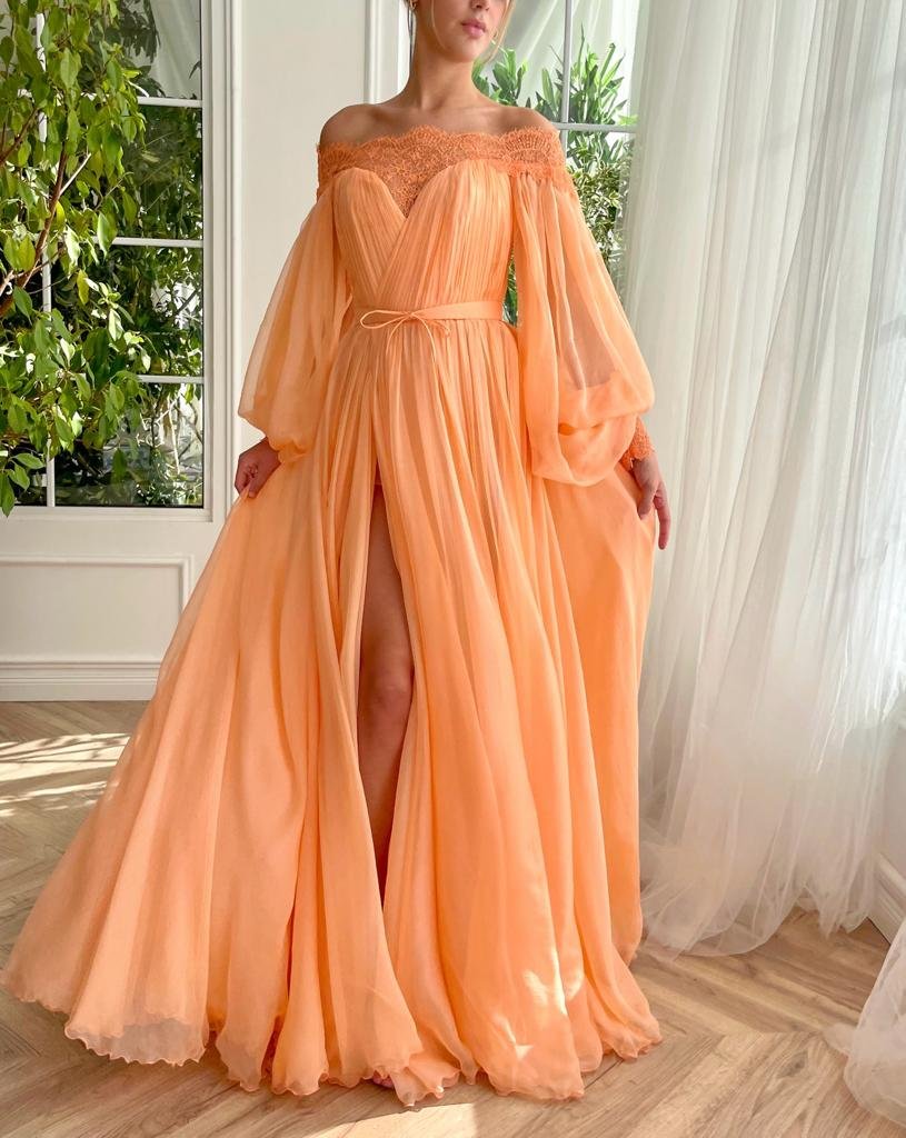 Indulge in the epitome of elegance with our off-shoulder draped wrap top, meticulously crafted from pure soft silk fabric. The tender embrace of the Savannah Sun hue illuminates the room as you make an entrance, reflecting a serene yet vibrant aesthetic. Its delicately designed off-shoulder cut gracefully highlights the collarbone, while the cinched waist and A-line silhouette honor your natural curves. The long puffy sleeves, gathered into a charming cuff, complement the decorative bow detail, adding a touch of whimsy to this sophisticated ensemble. A tantalizing leg slit ensures ease of movement and adds a flirty flair, encapsulating a harmonious blend of comfort and high fashion. Elevate your wardrobe with this enthralling piece, where every fold of silk and adornment is a tribute to modern elegance.