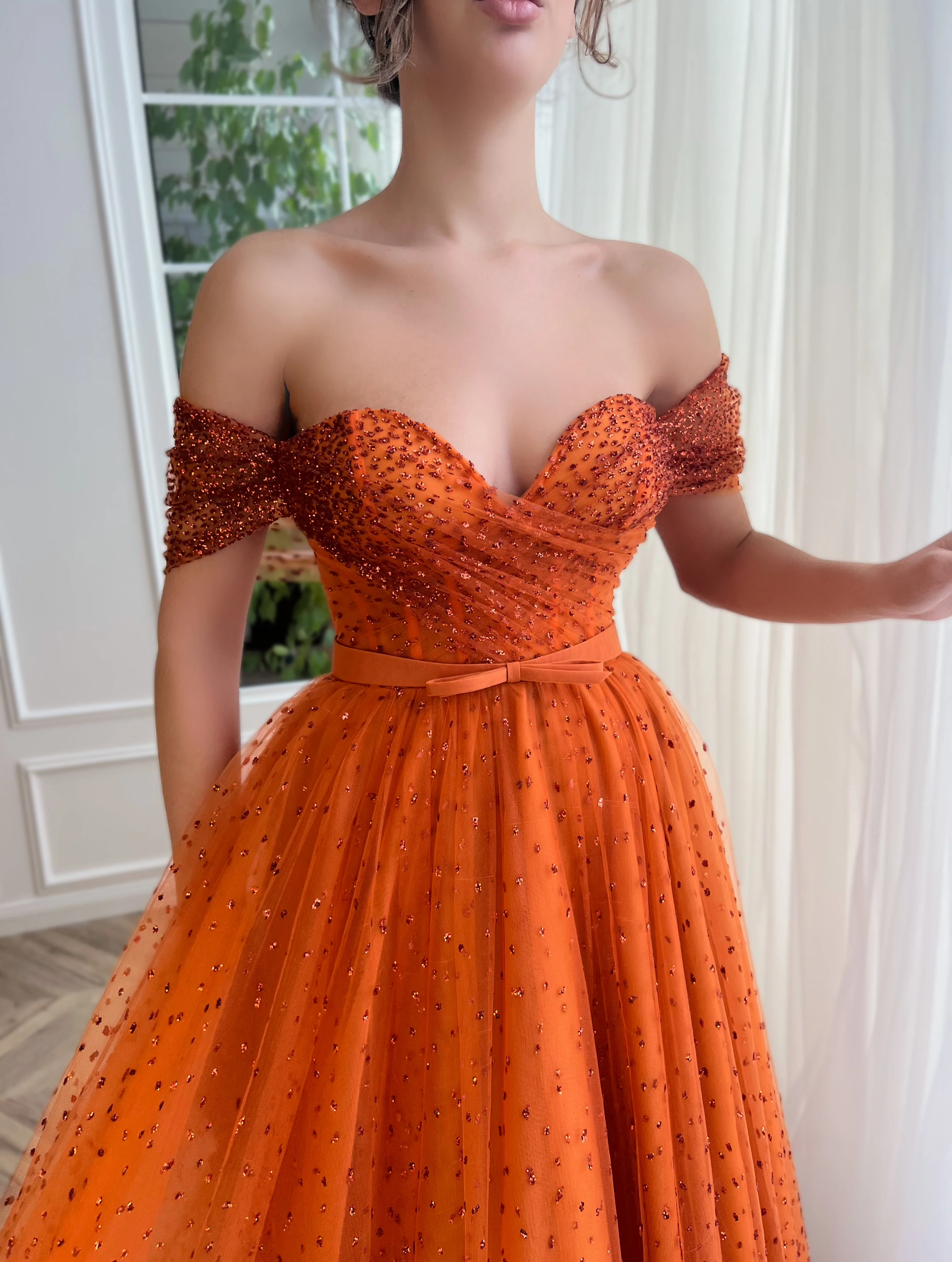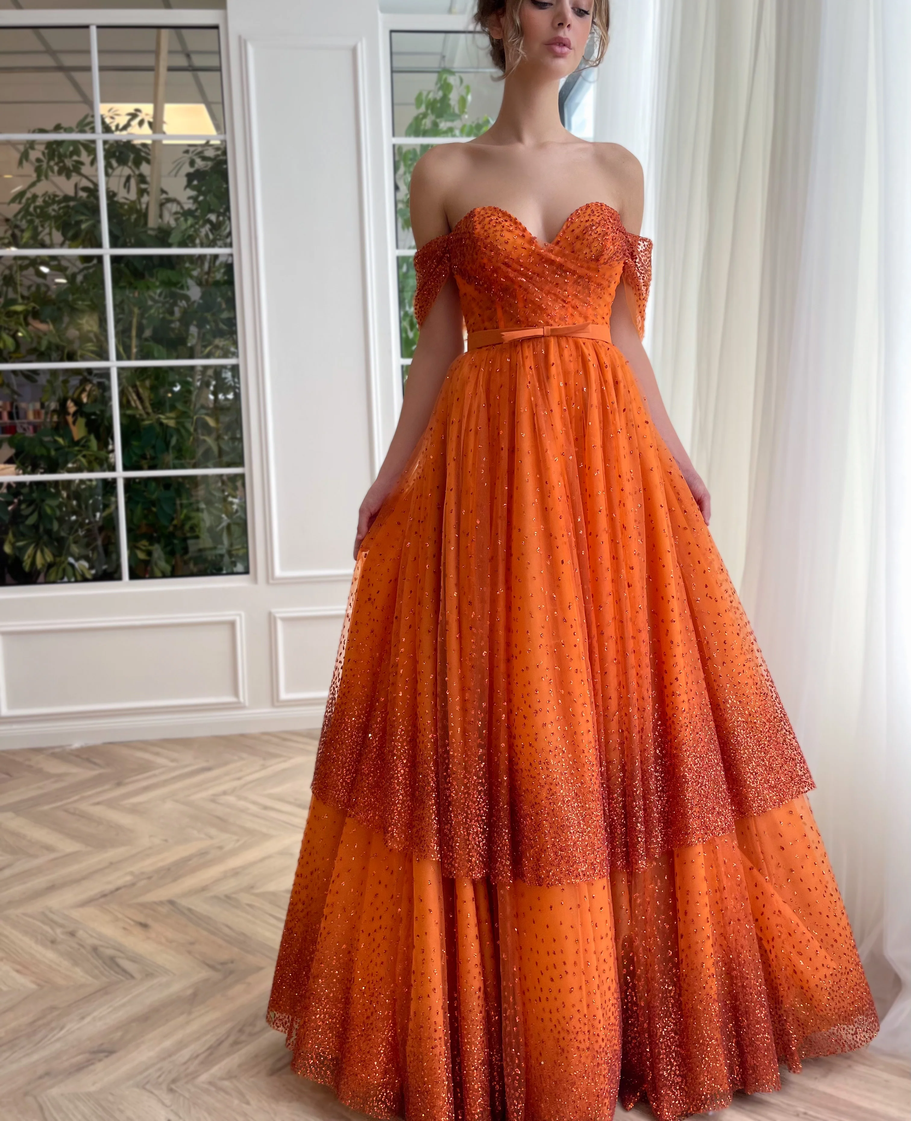 This shiny sequins gown sparkles with timeless elegance. Its bodice features built-in pads and boning, while the cinched waist adds shape to your figure. The tiered gathered skirt is adorned with a bow belt and the radiant fiery colors of the Everlasting Embers Gown will make any occasion memorable for you!