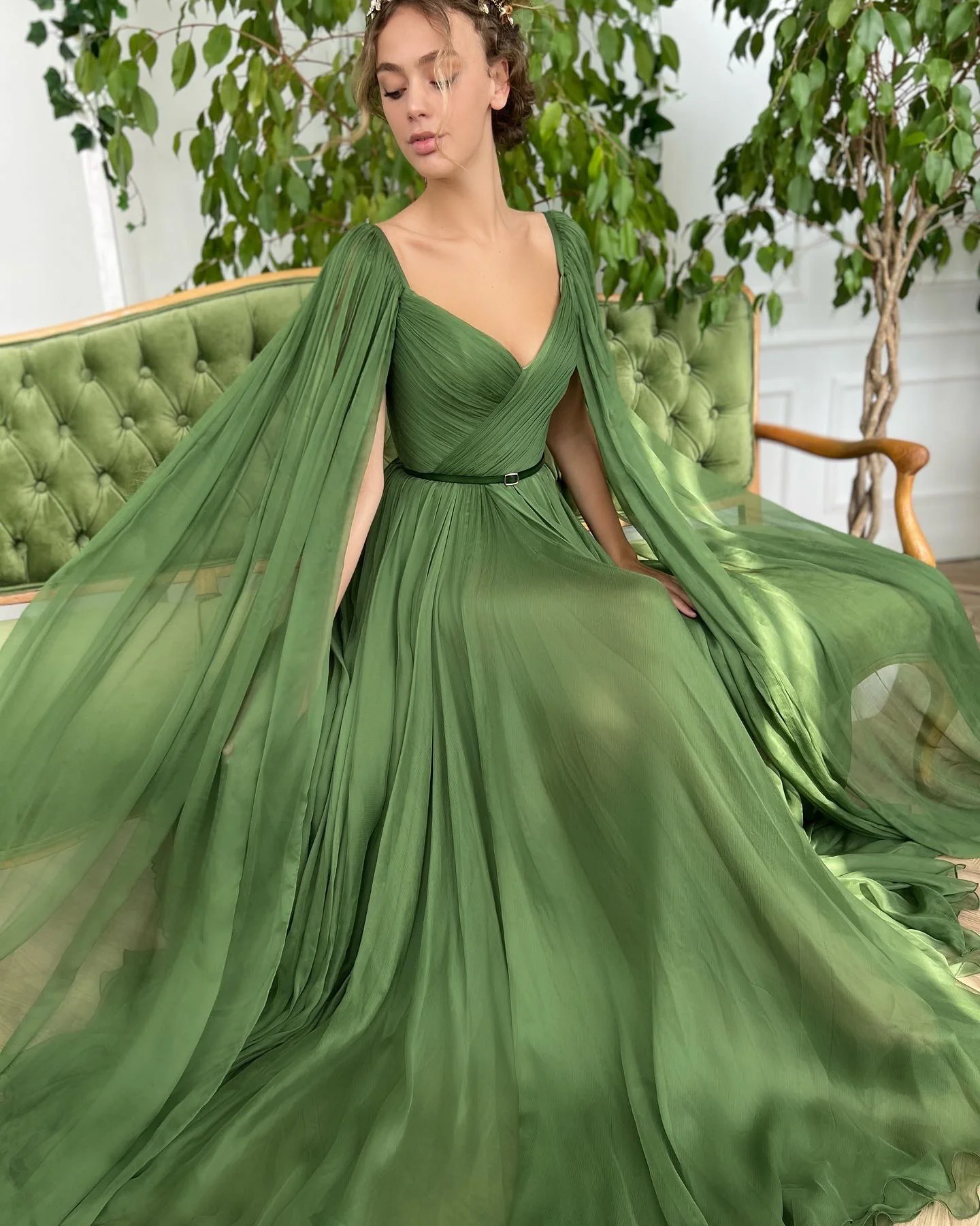 Draped Royal Olive Gown