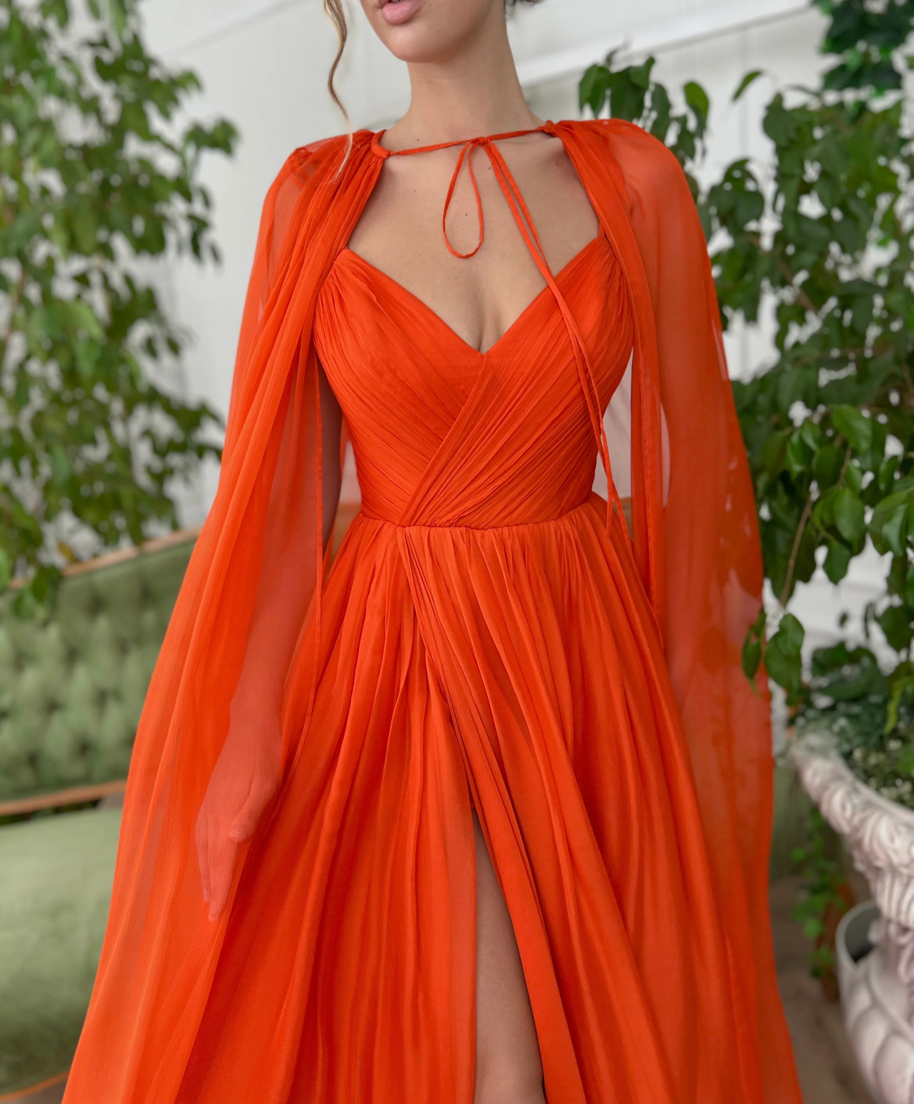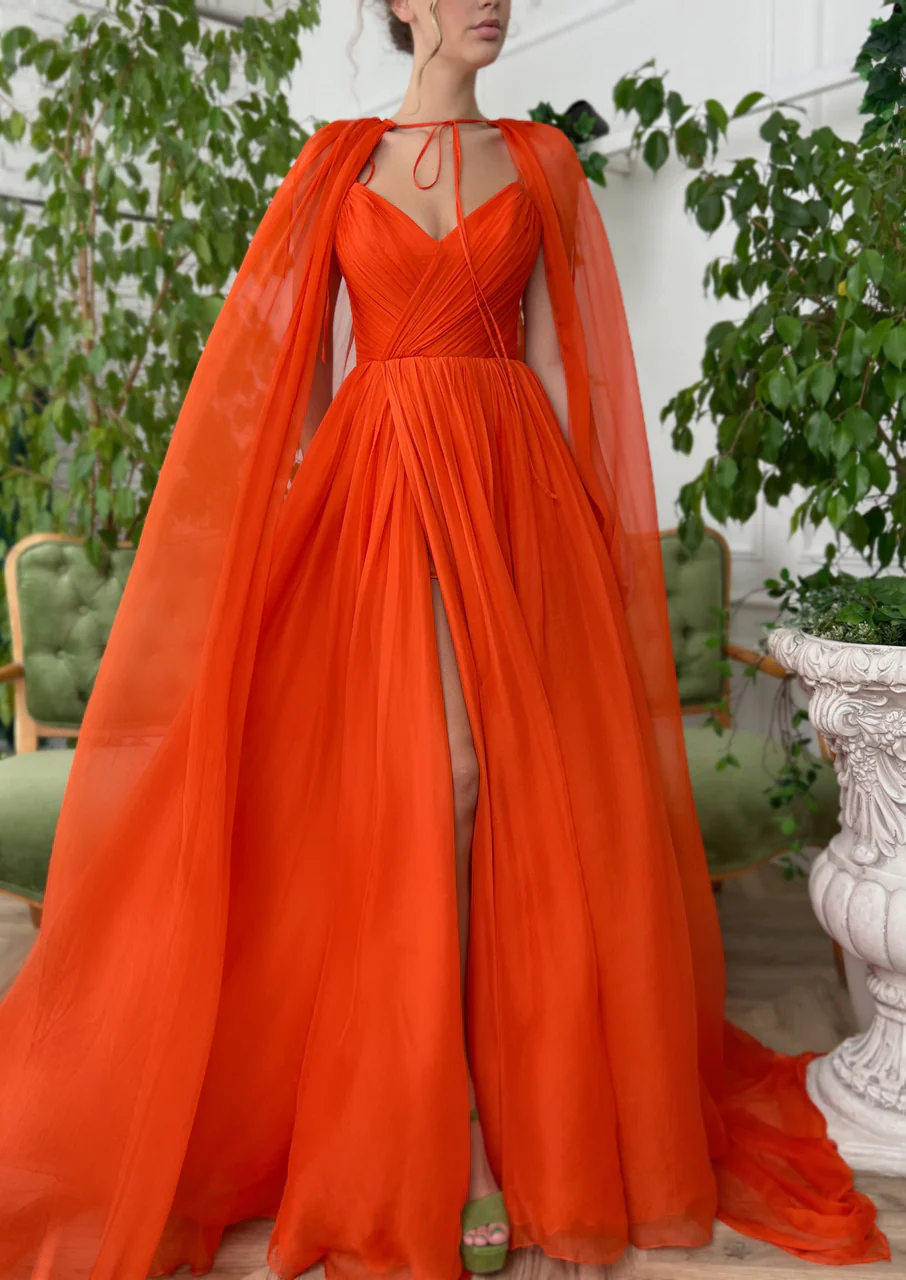-Decorative long cape, perfect finishing touch to this stunning gown.