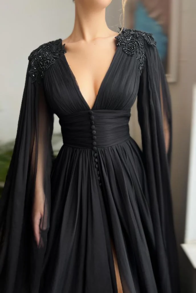 -Long-to-floor cape sleeves