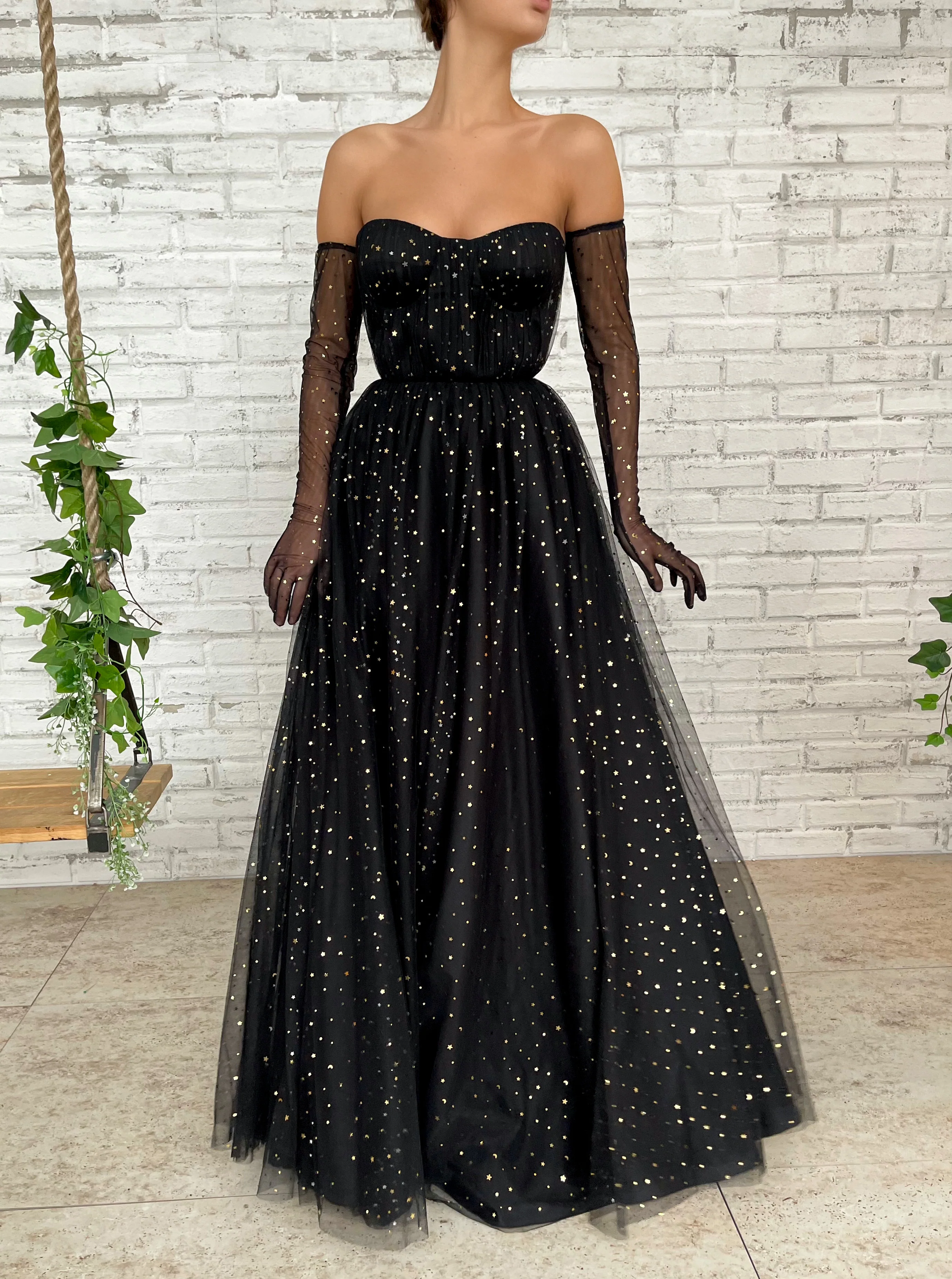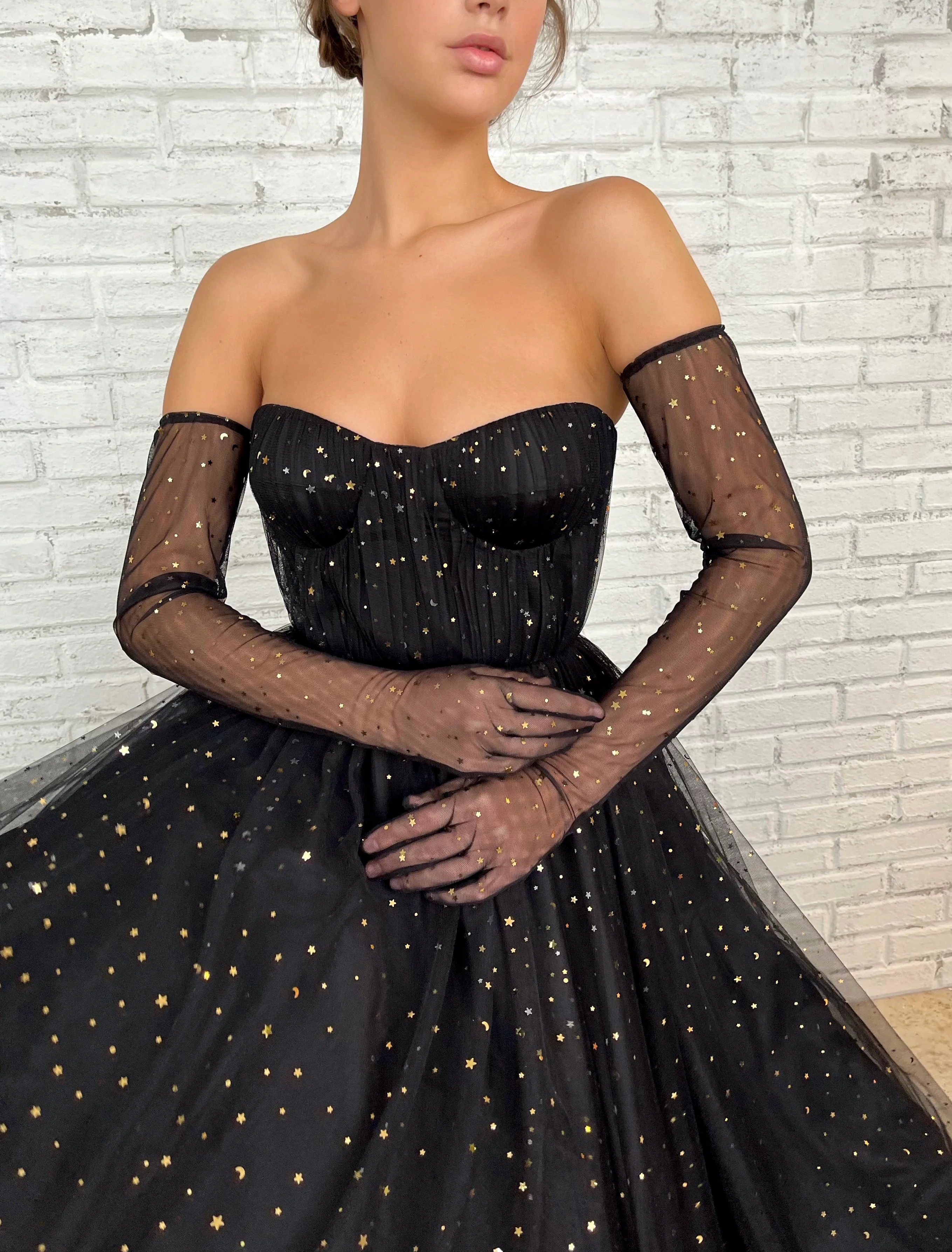 Midnight Stargazer Gown with gloves