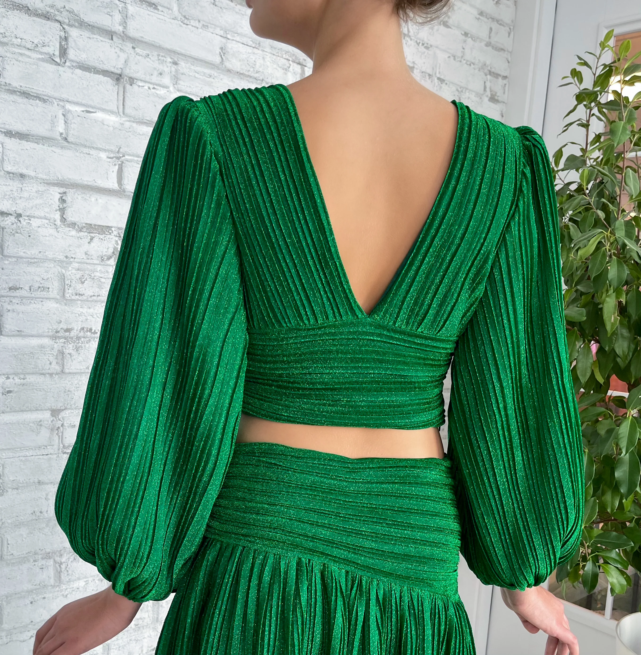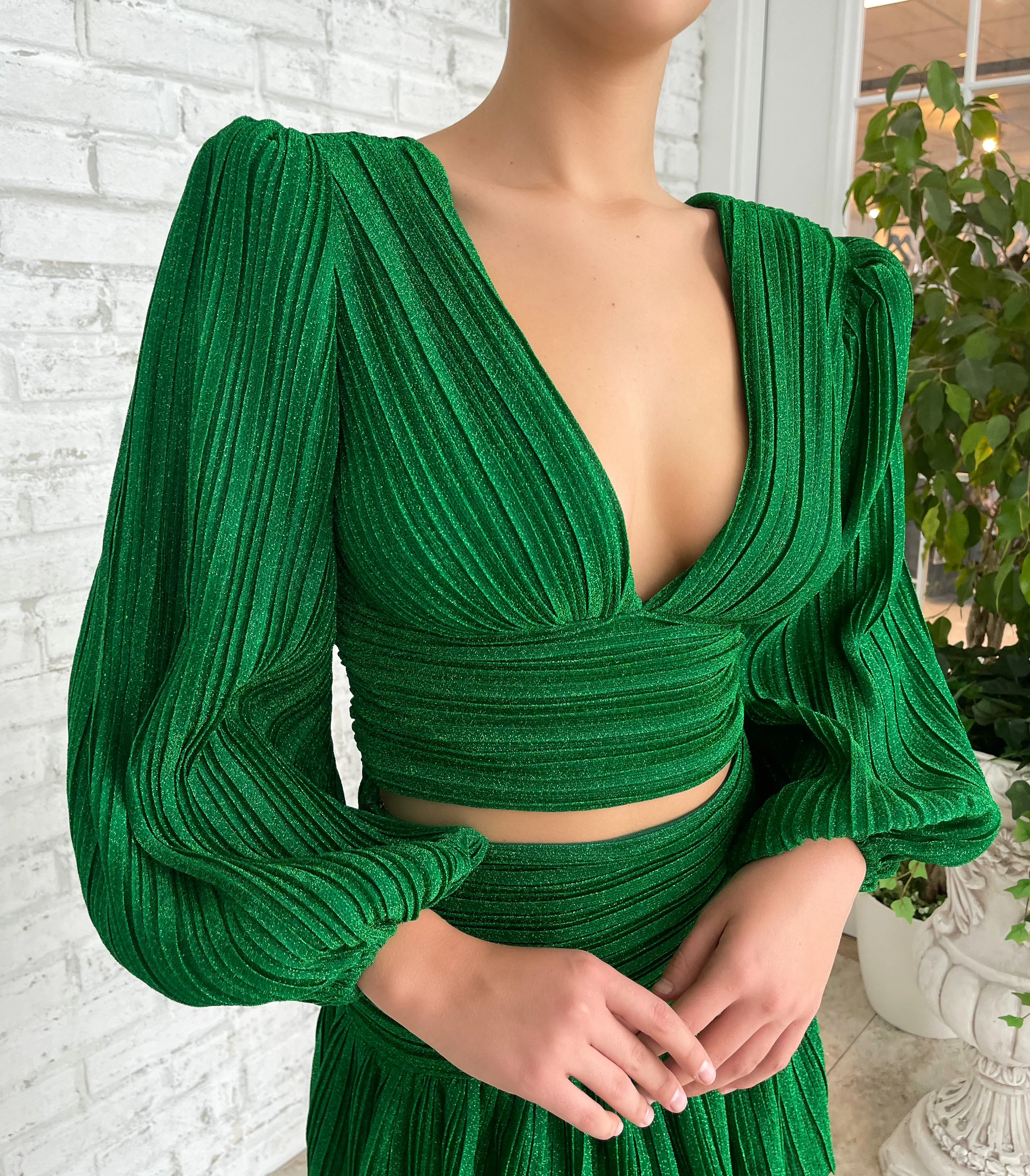 Experience the calming feeling of nature with the divine energy of femininity in our Emerald Femme Blouse. The cozy plisse texture reprents femme fatale energy, but owned by you. Feel like the best version of yourself.
