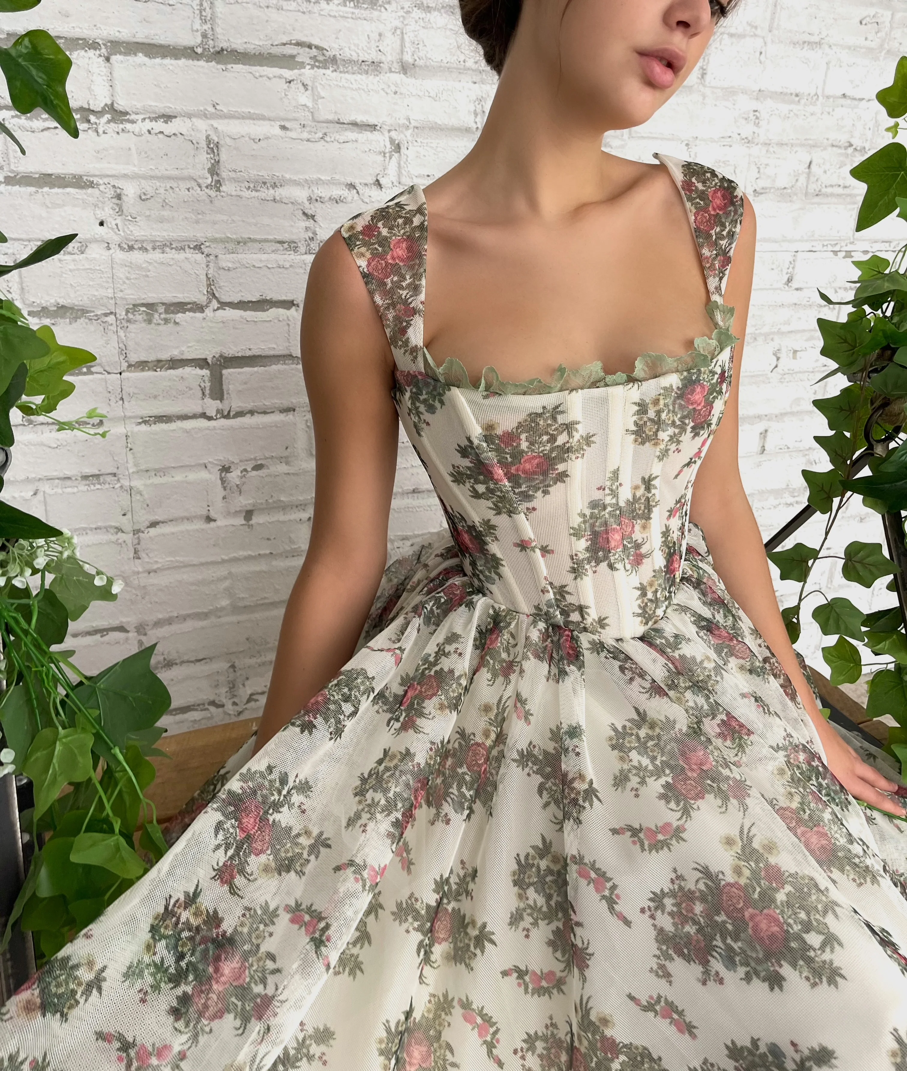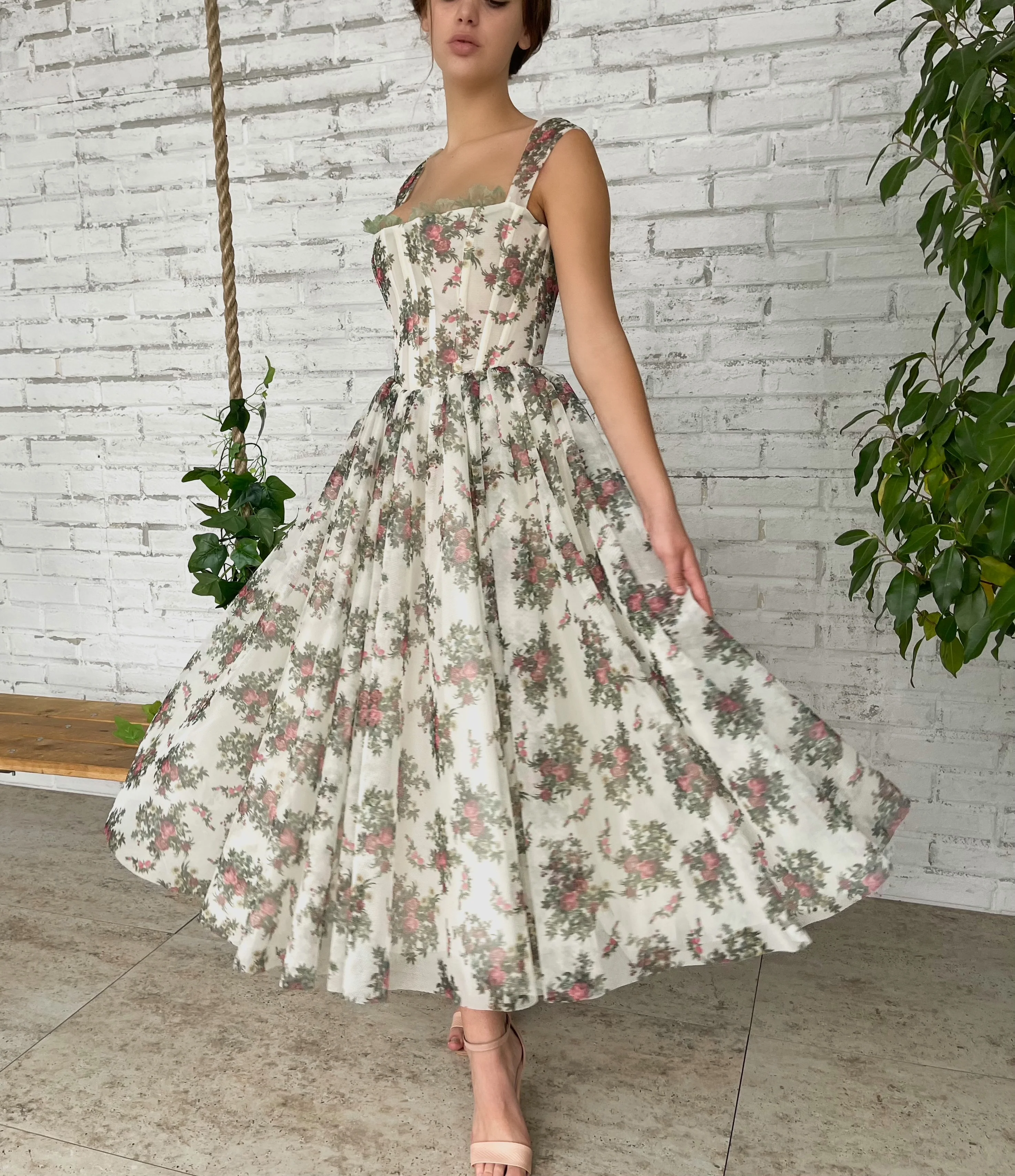 You can't go wrong wearing a retro-inspired silhouette. Decorate your midcentury kitchen and have a dinner party in our Flowery Filigree Corset Dress. The bodice features elegant corset boning with a tea-length hemline. It's perfect for evening cocktail parties and nights of conversation.