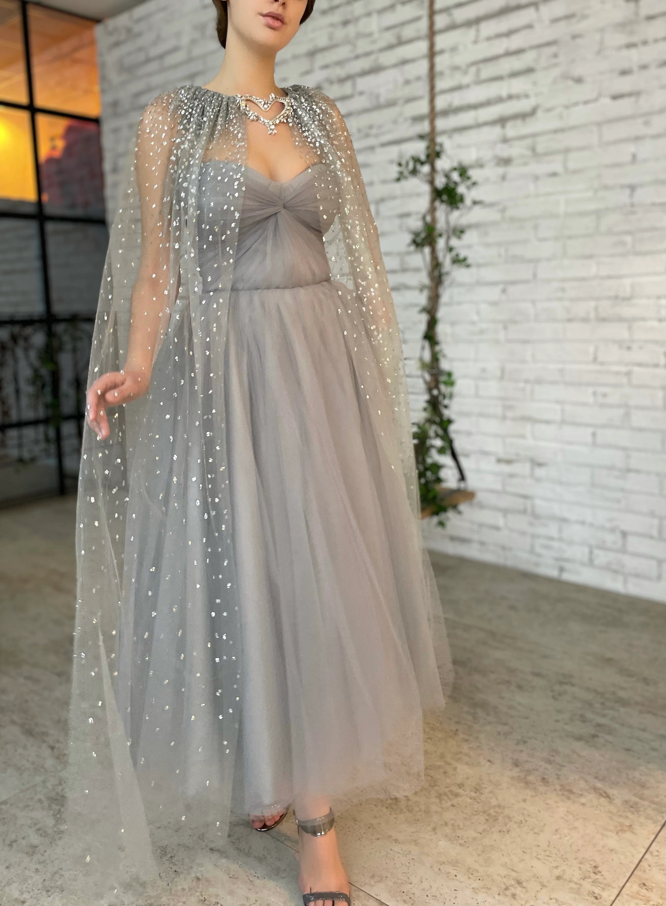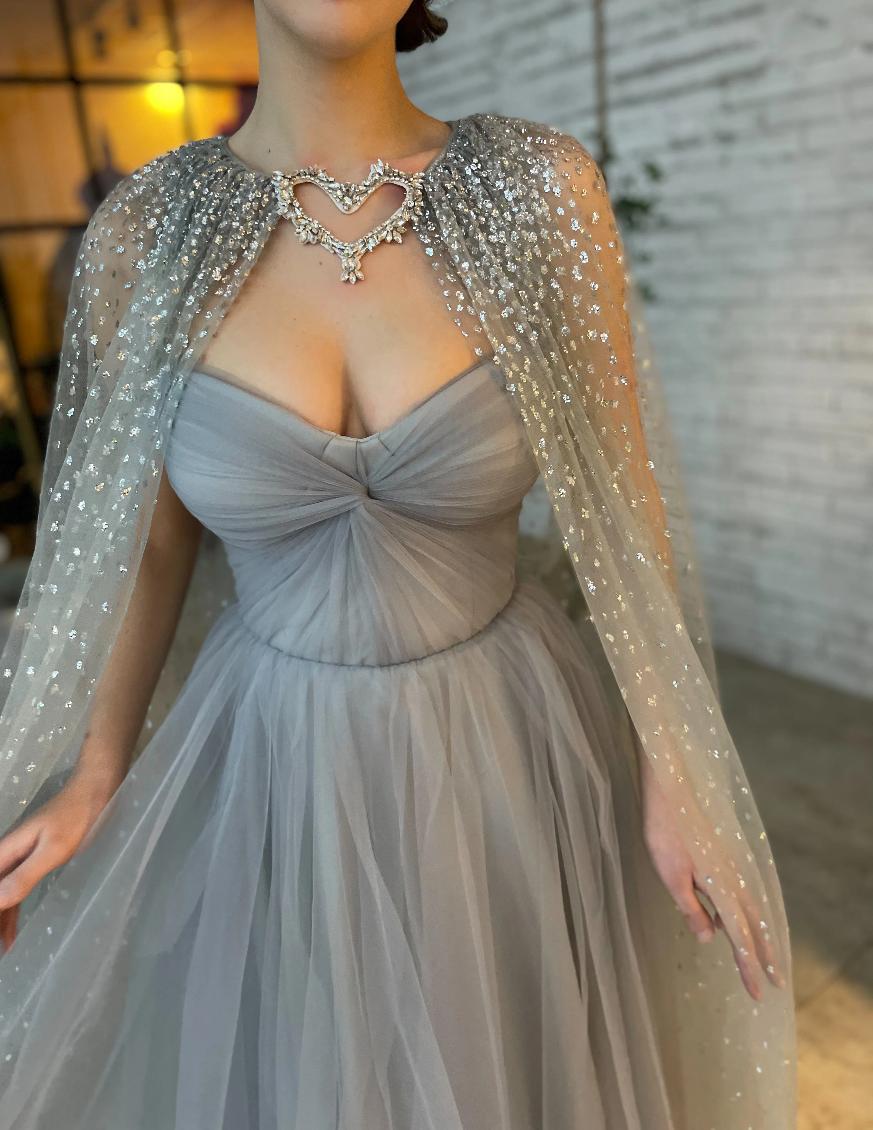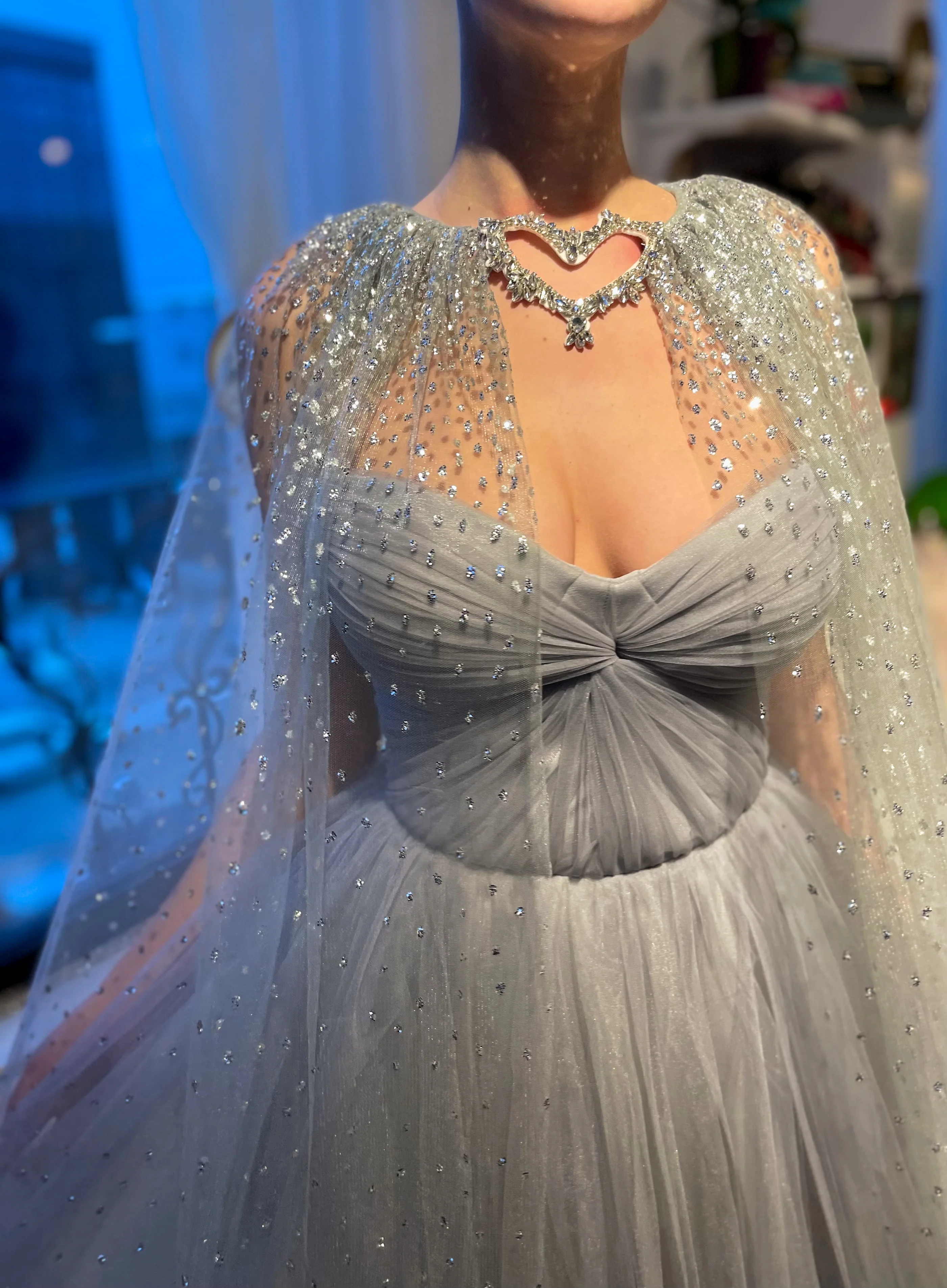 - Decorative crystallized cape, with dazzling crystals and an attached heart in the middle