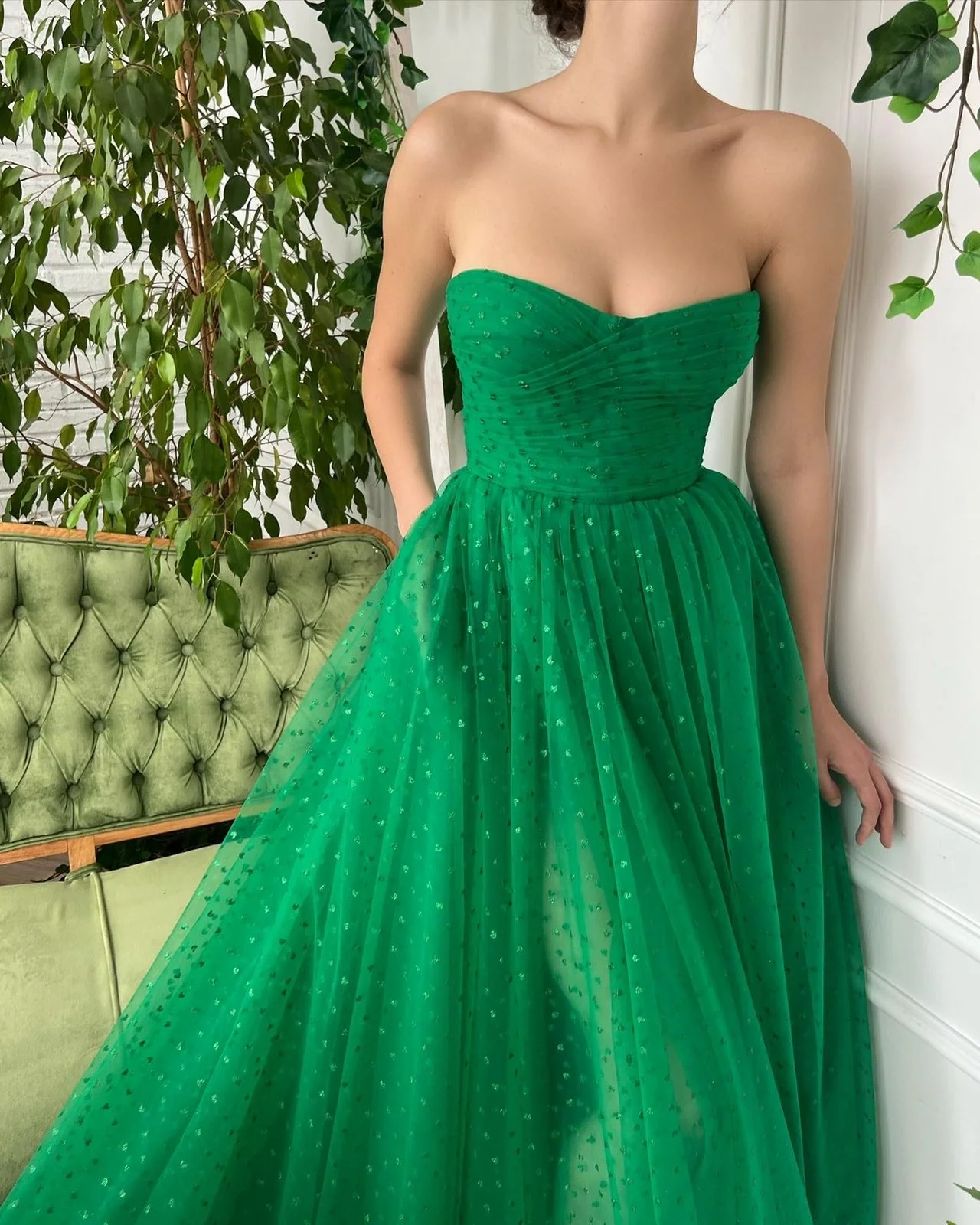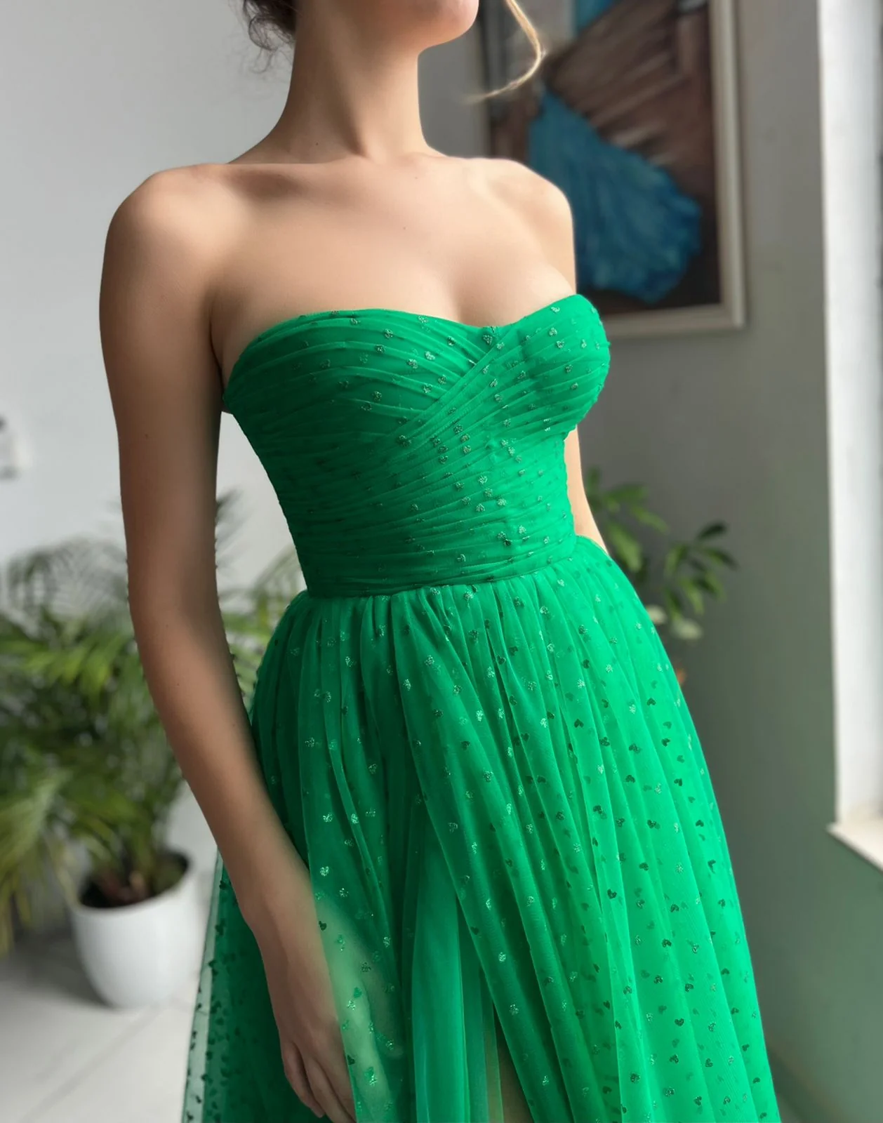 -Strapless neckline