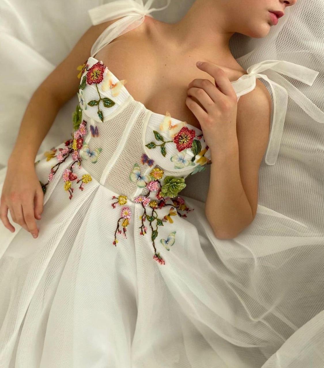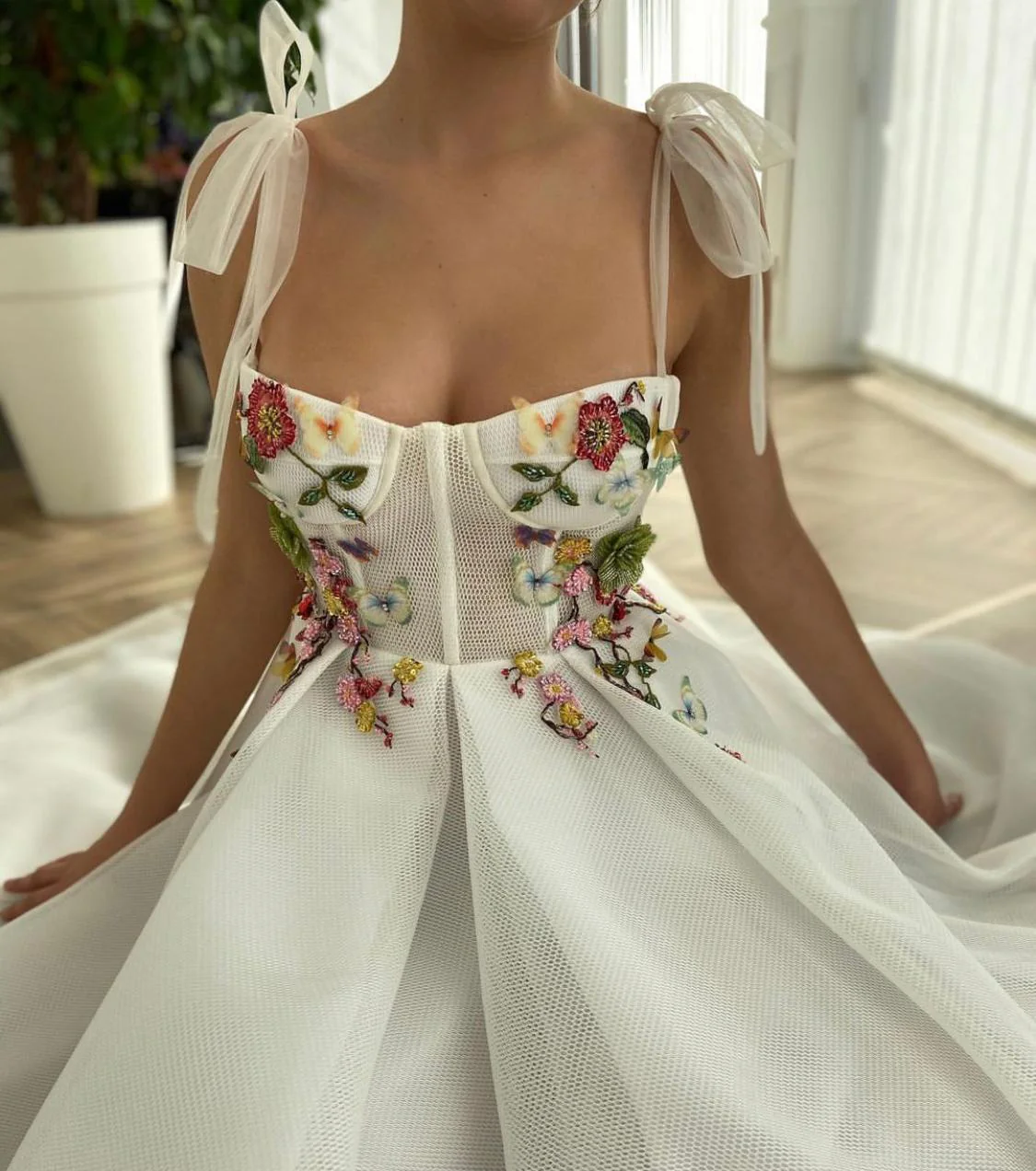 -Tea length style with ribbon straps