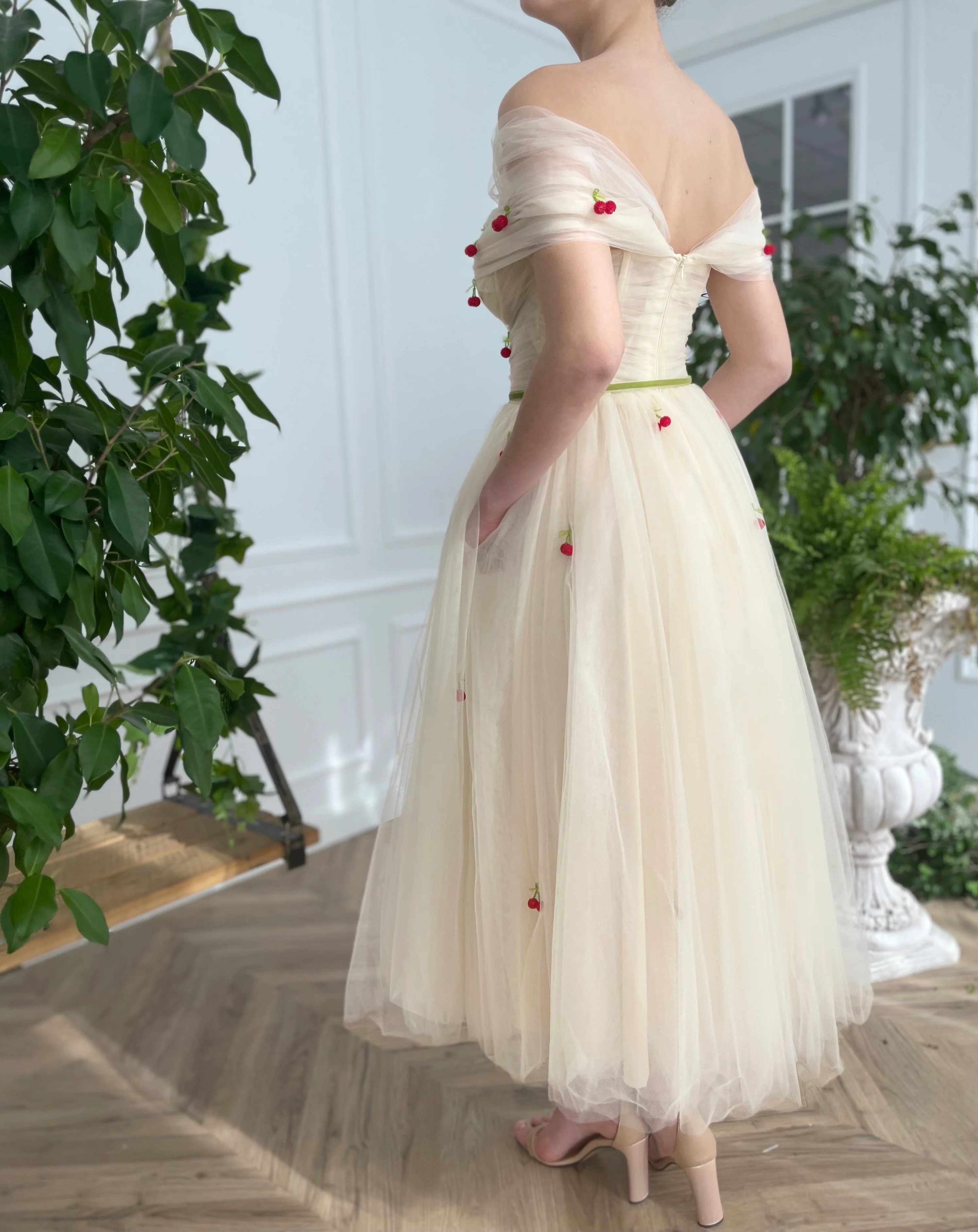 -Embellished with embroidered crystal cherries