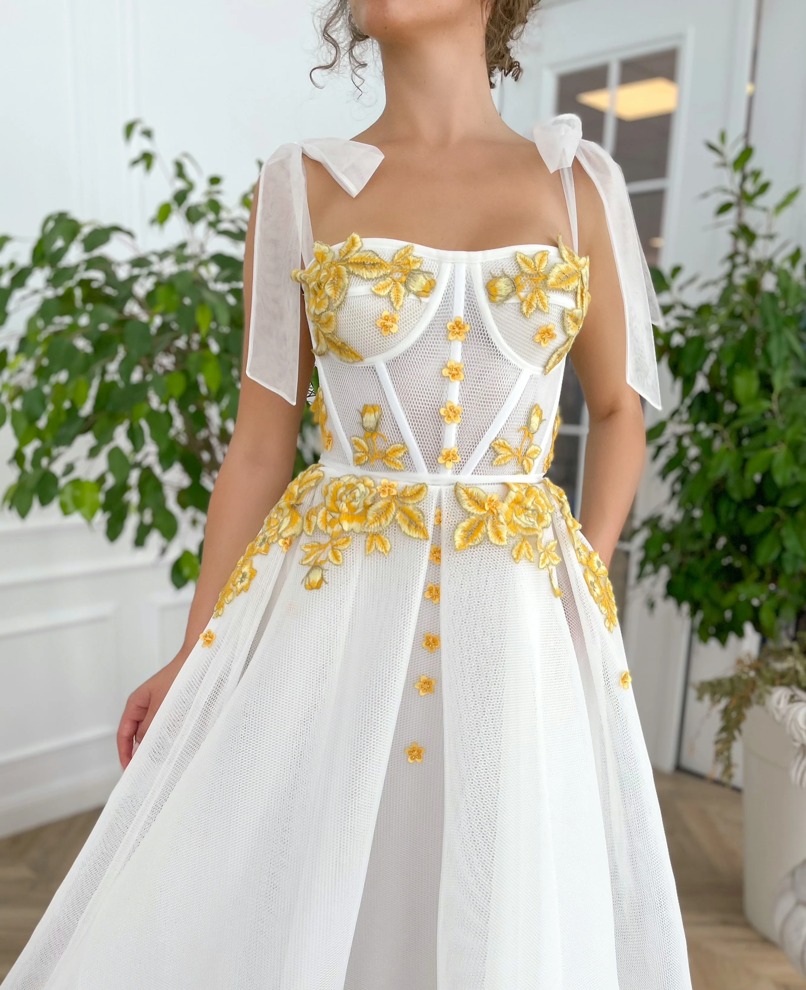 -Tea length style with a pleated skirt