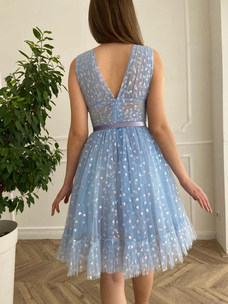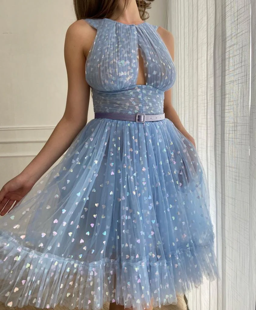 -Mini dress style in a bordered skirt with a decorative belt and side pockets