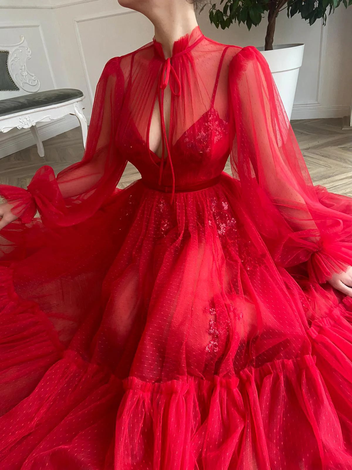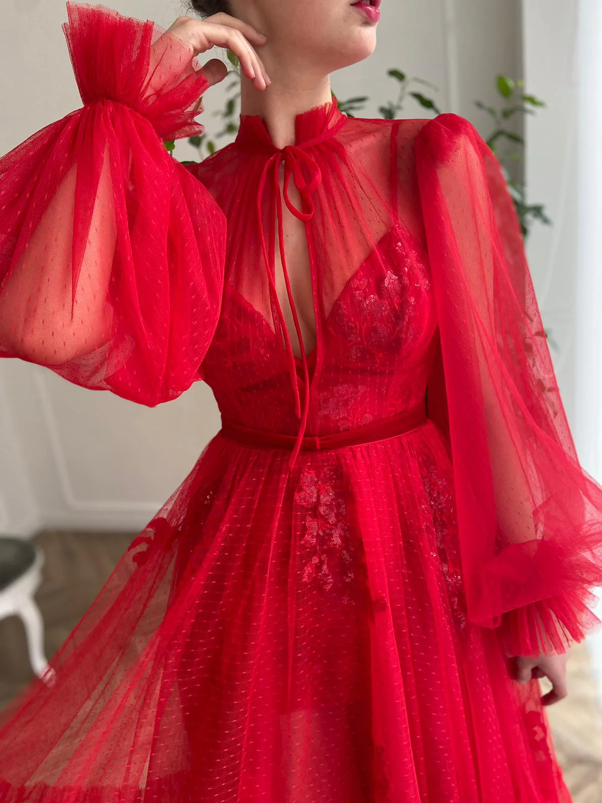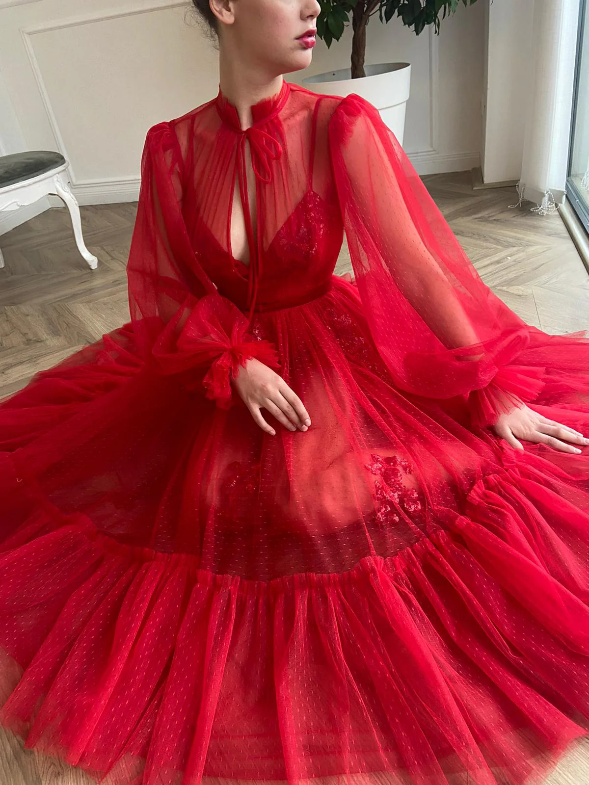 - Cuffed long sleeves and a velvet ribbon belt as decoration.