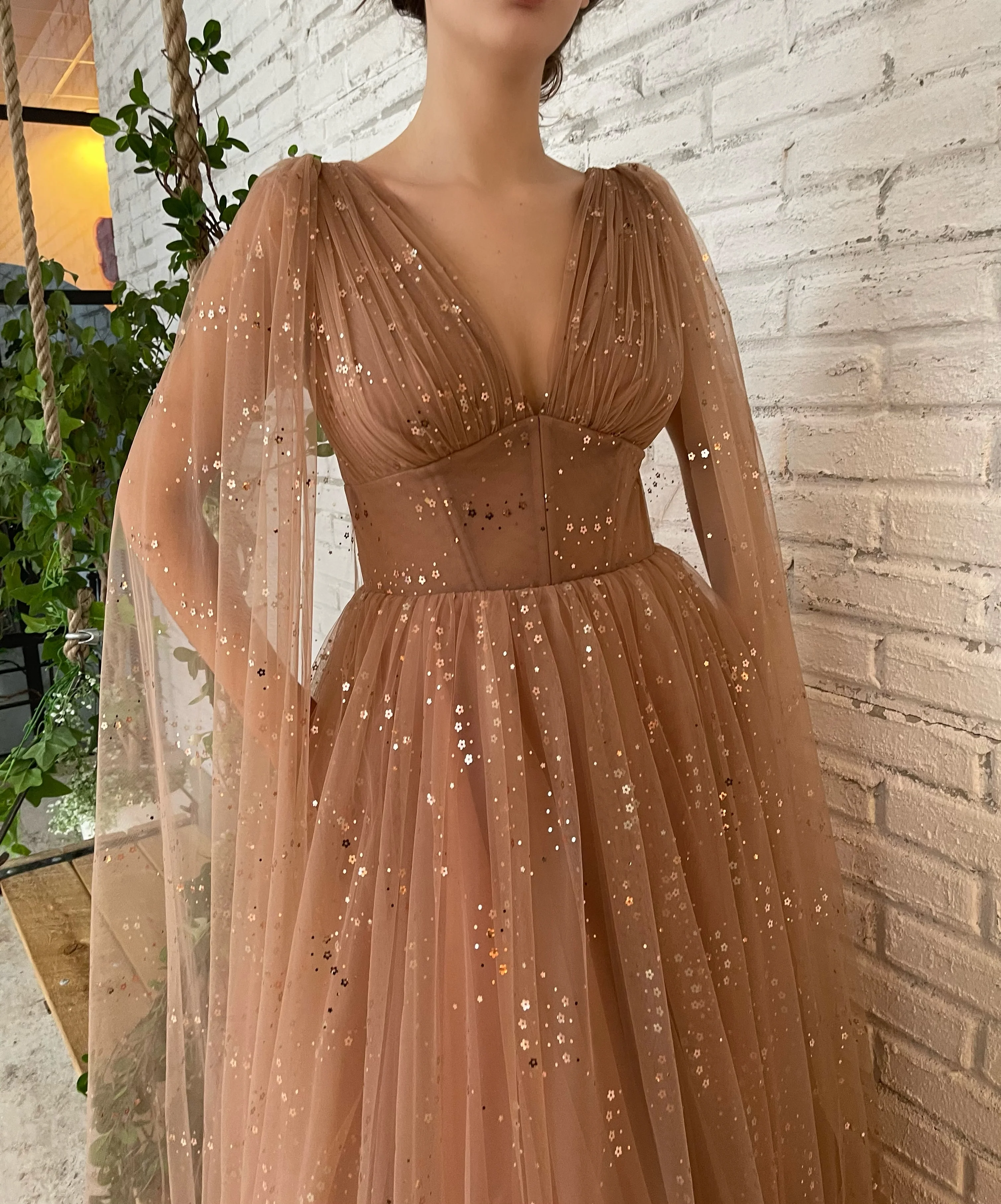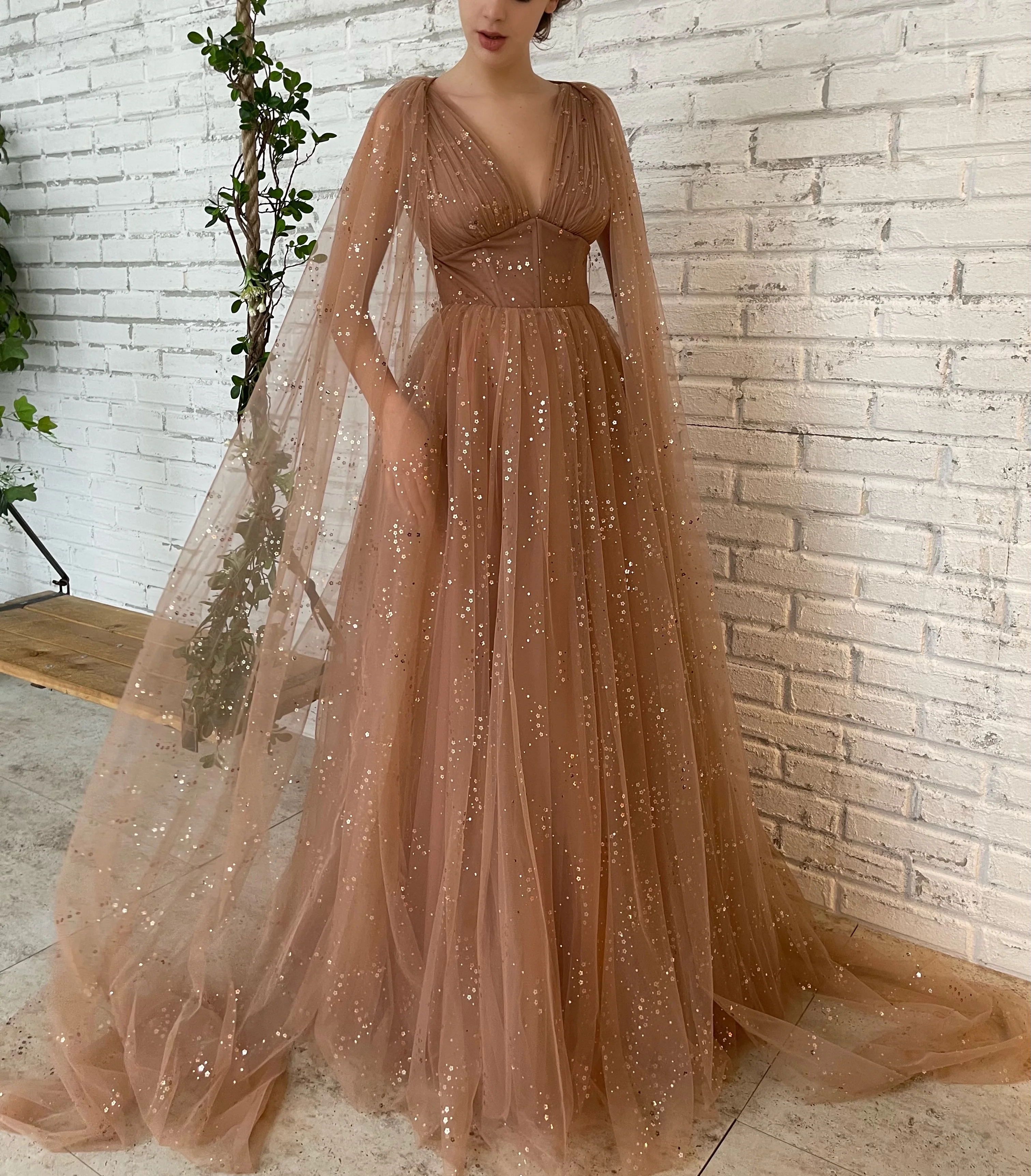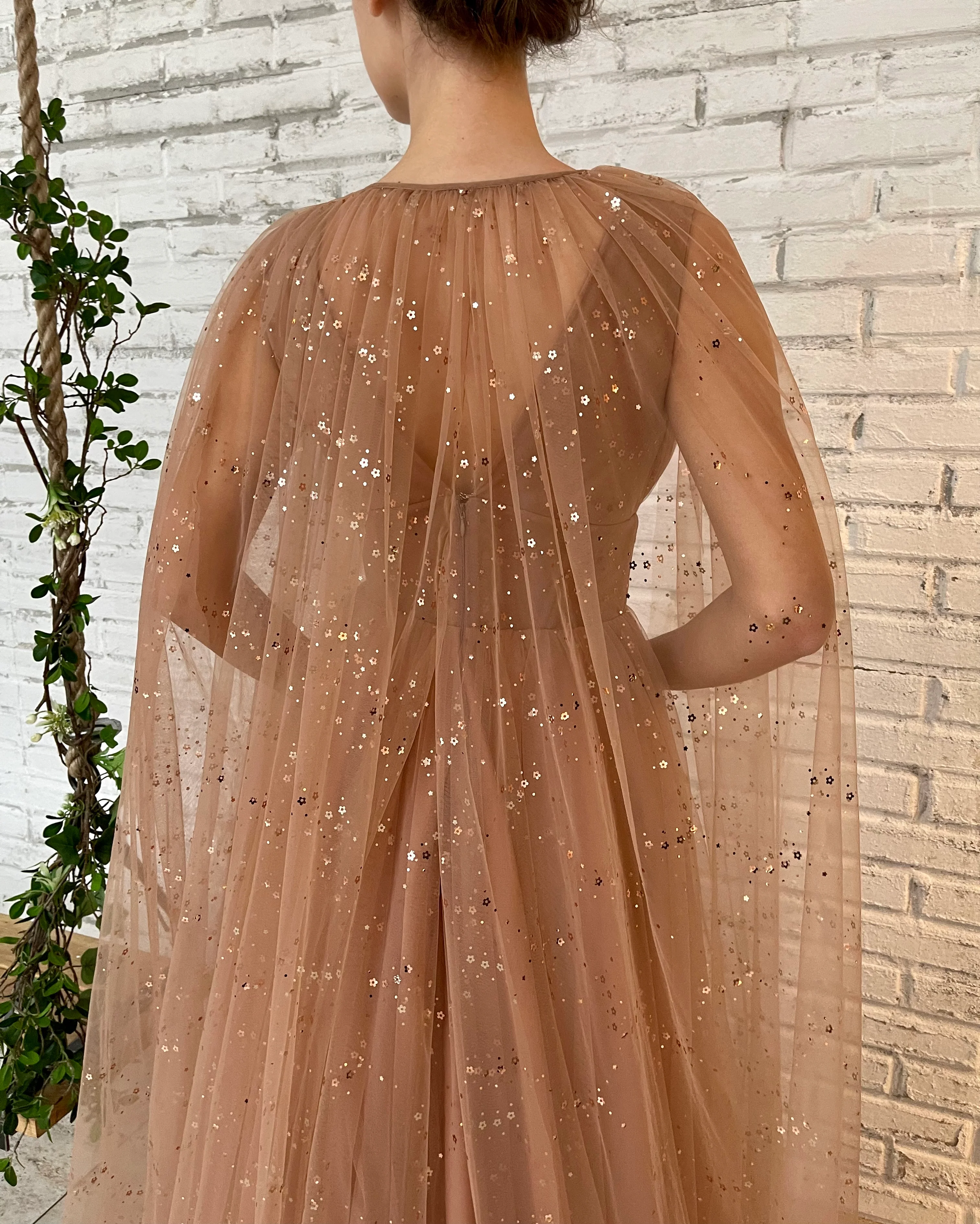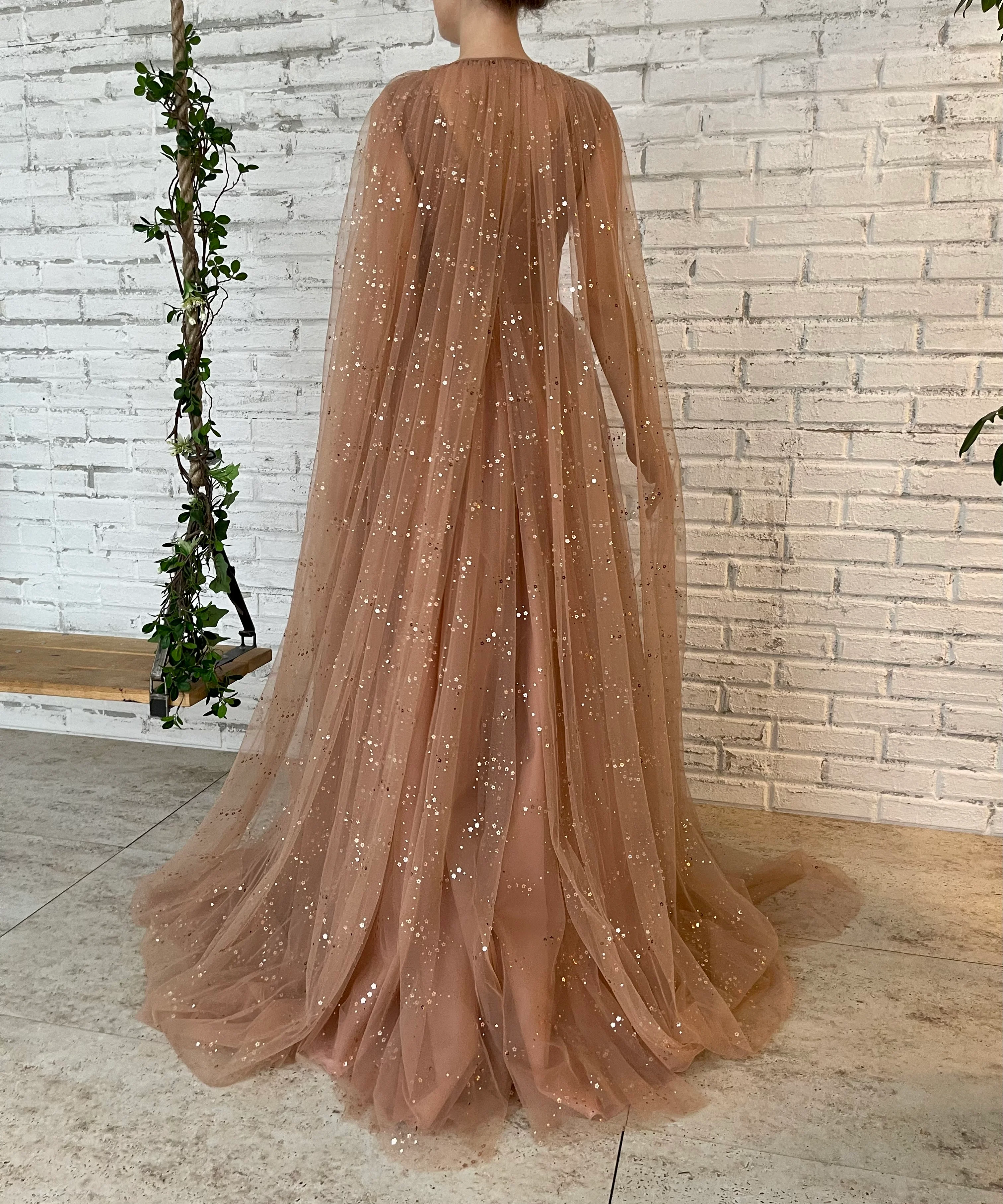 - Long cape sleeves