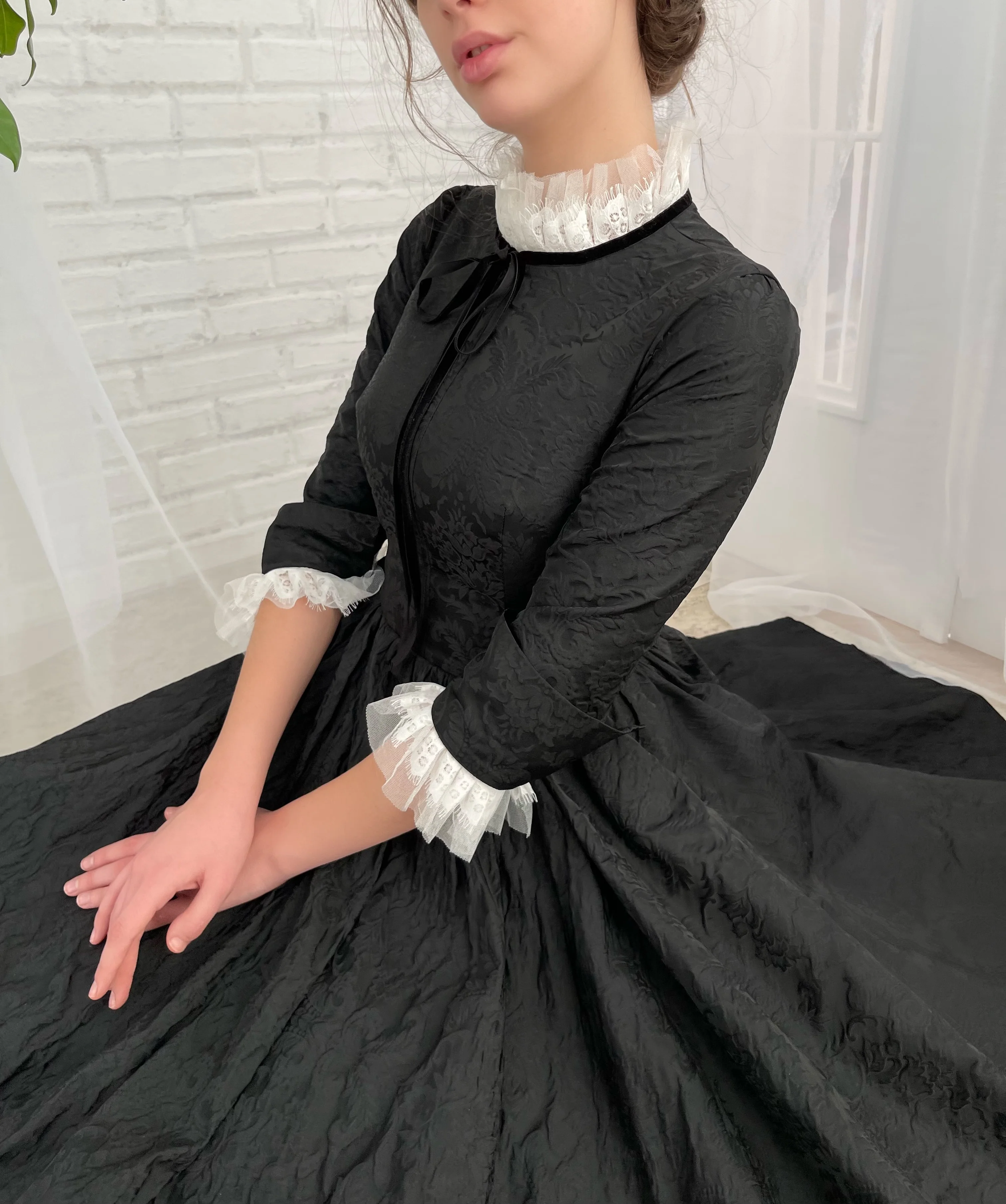 -Ruffle handmade white cuffs and collar