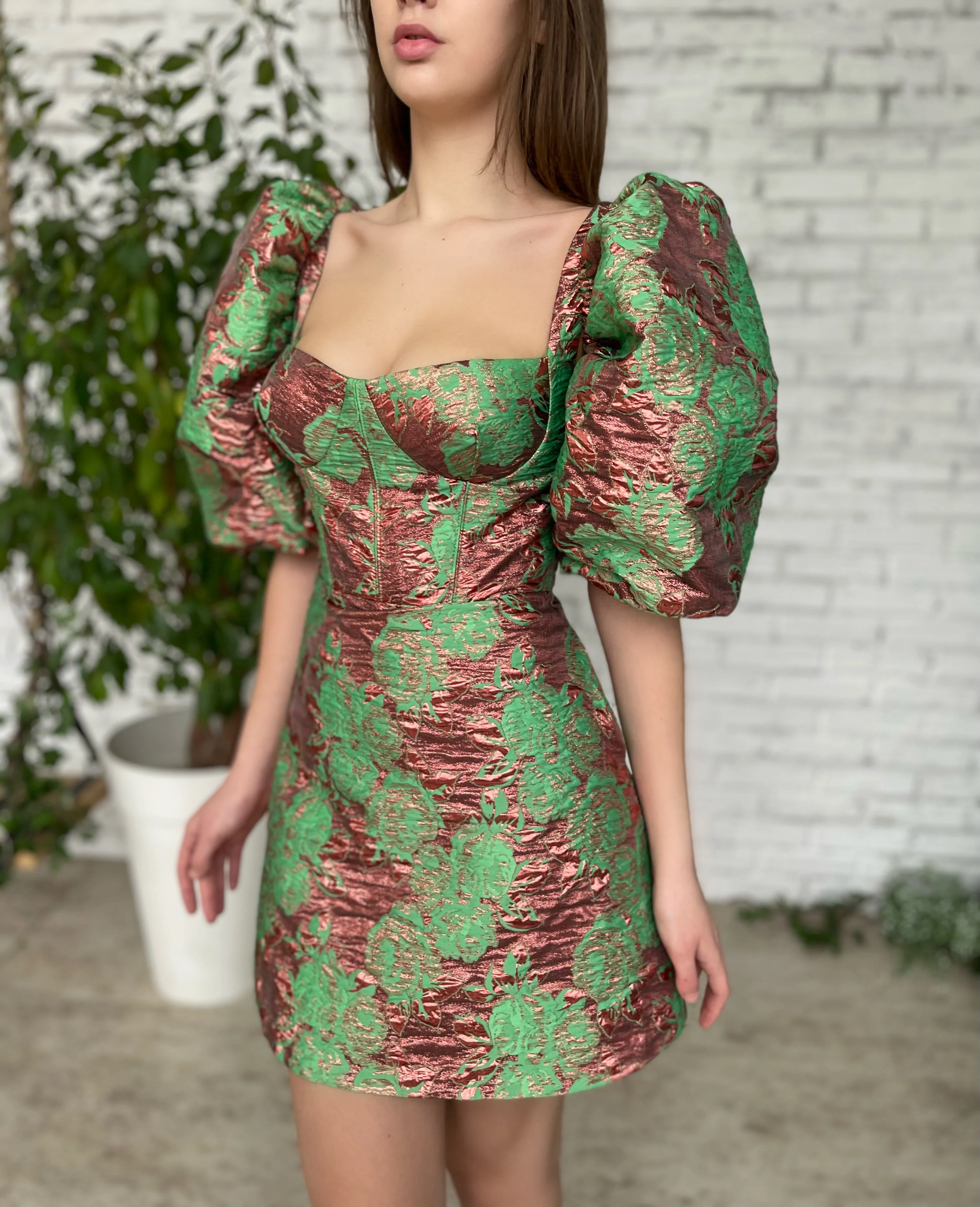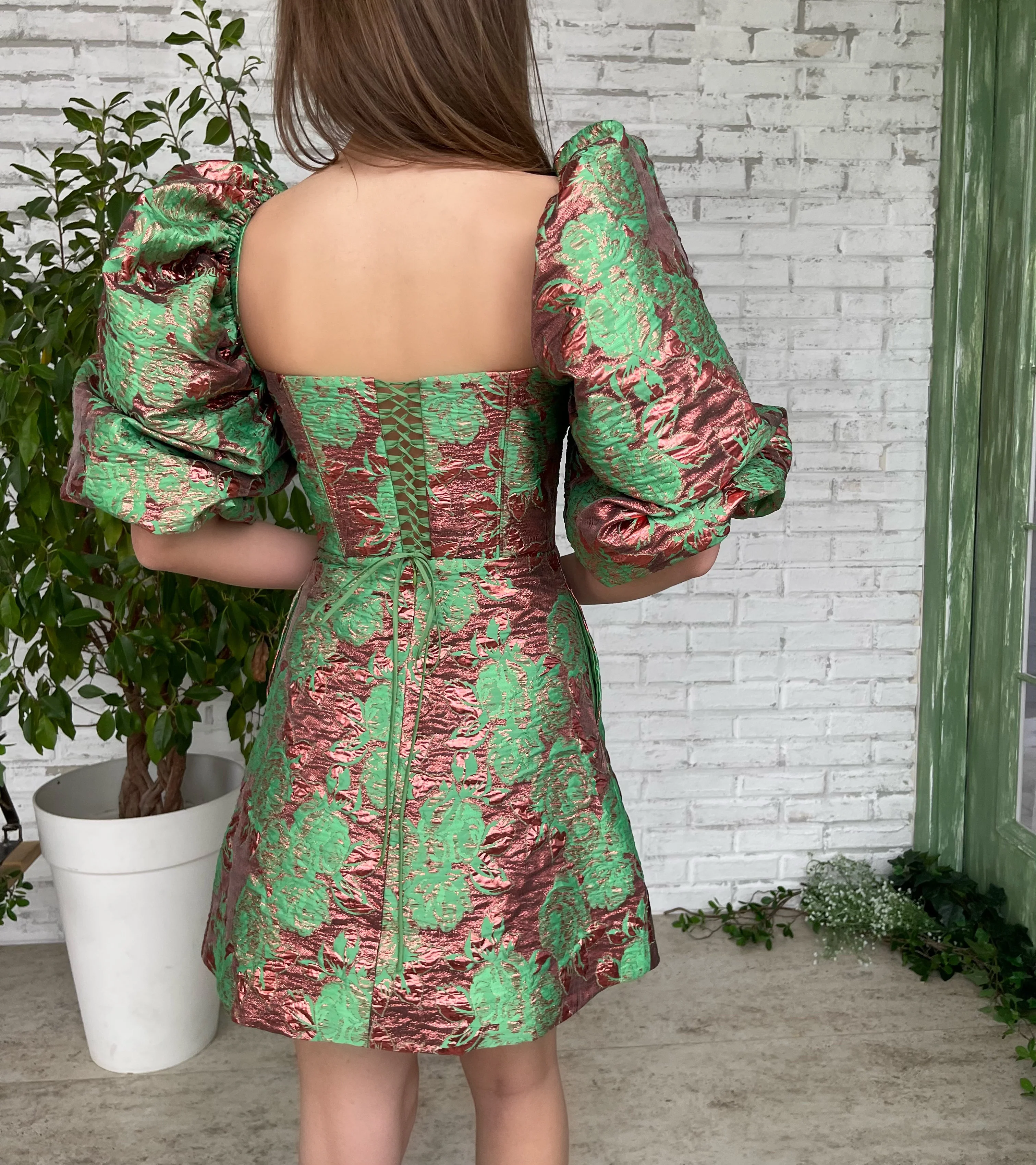 -Sage green color with shiny brown details