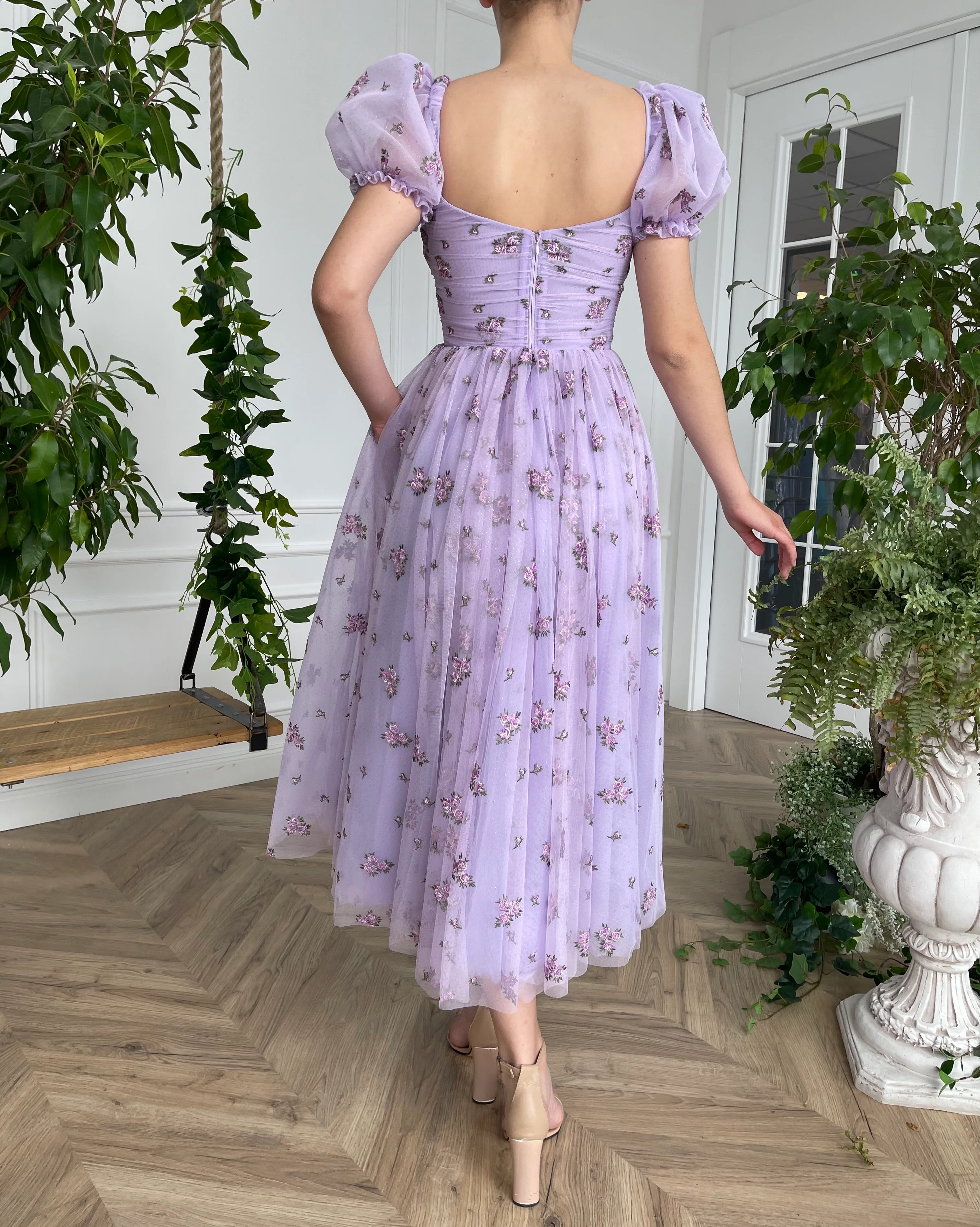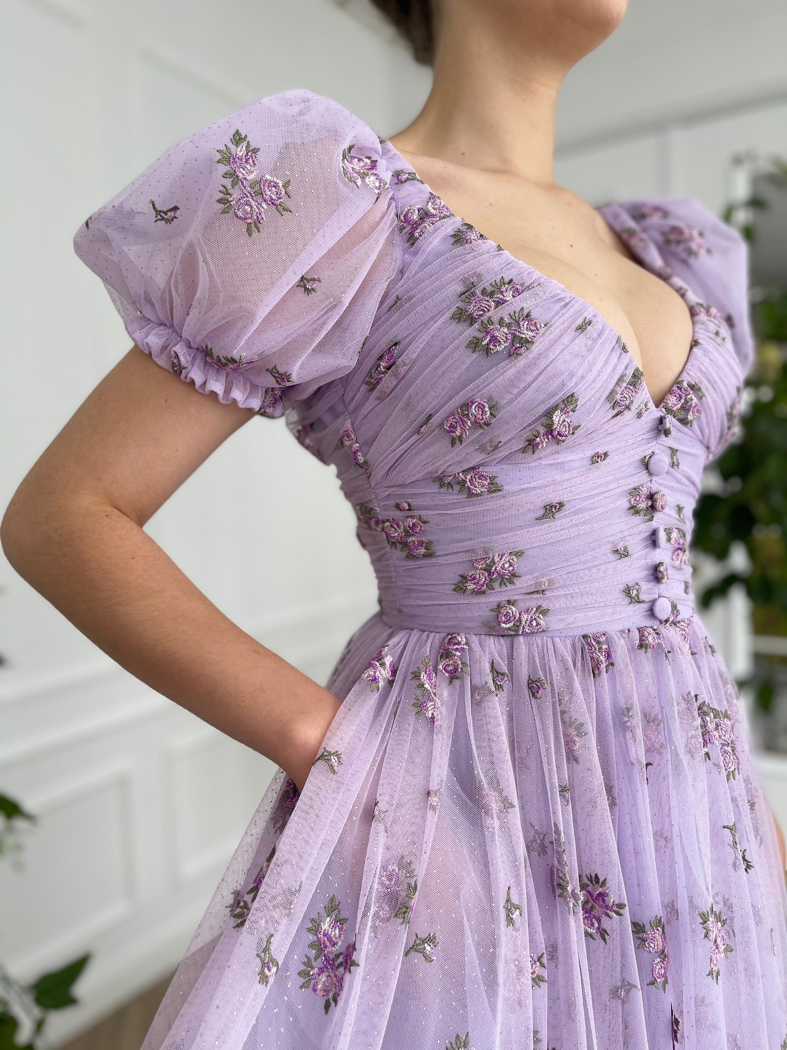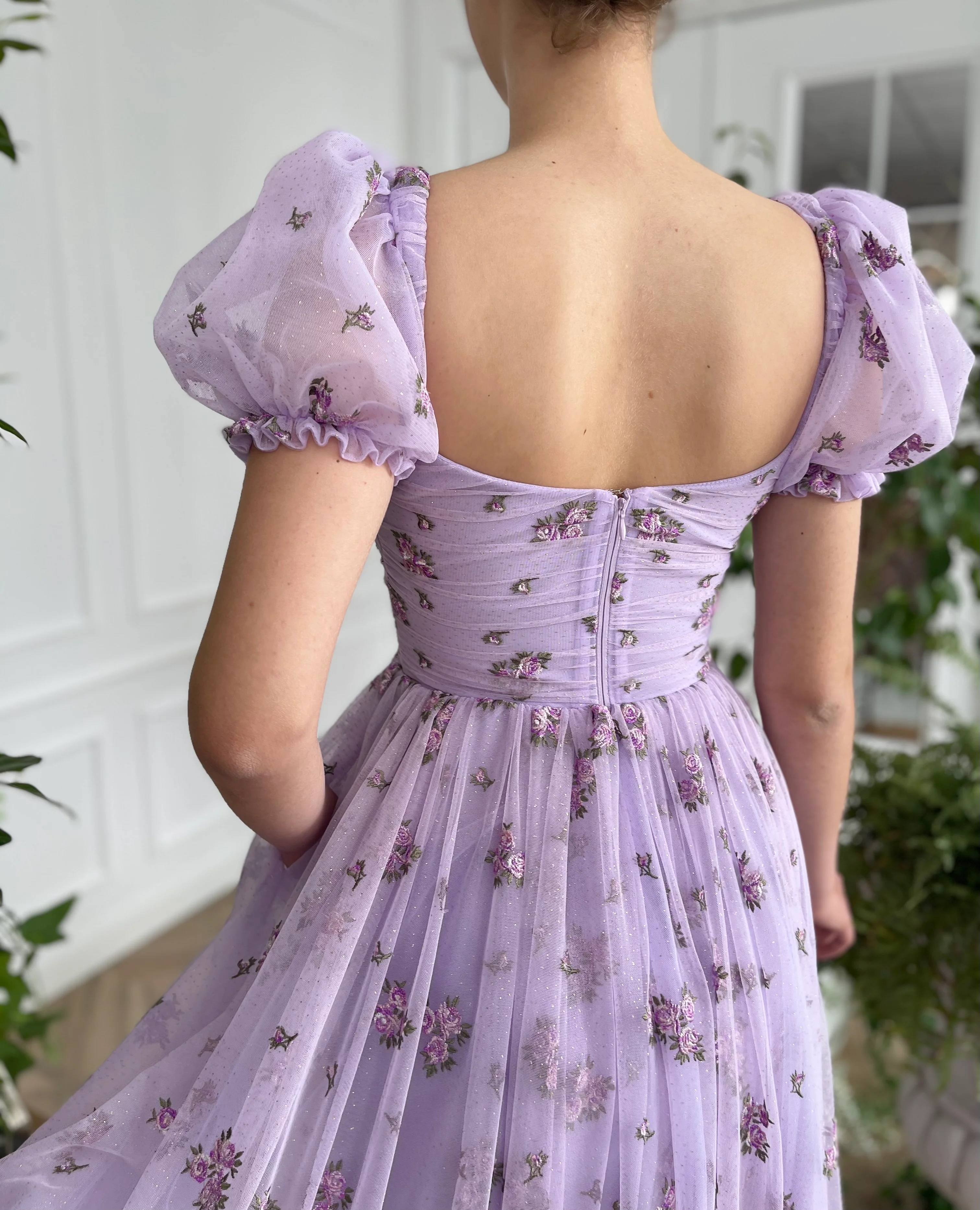 -Lavender tulle with printed flowers