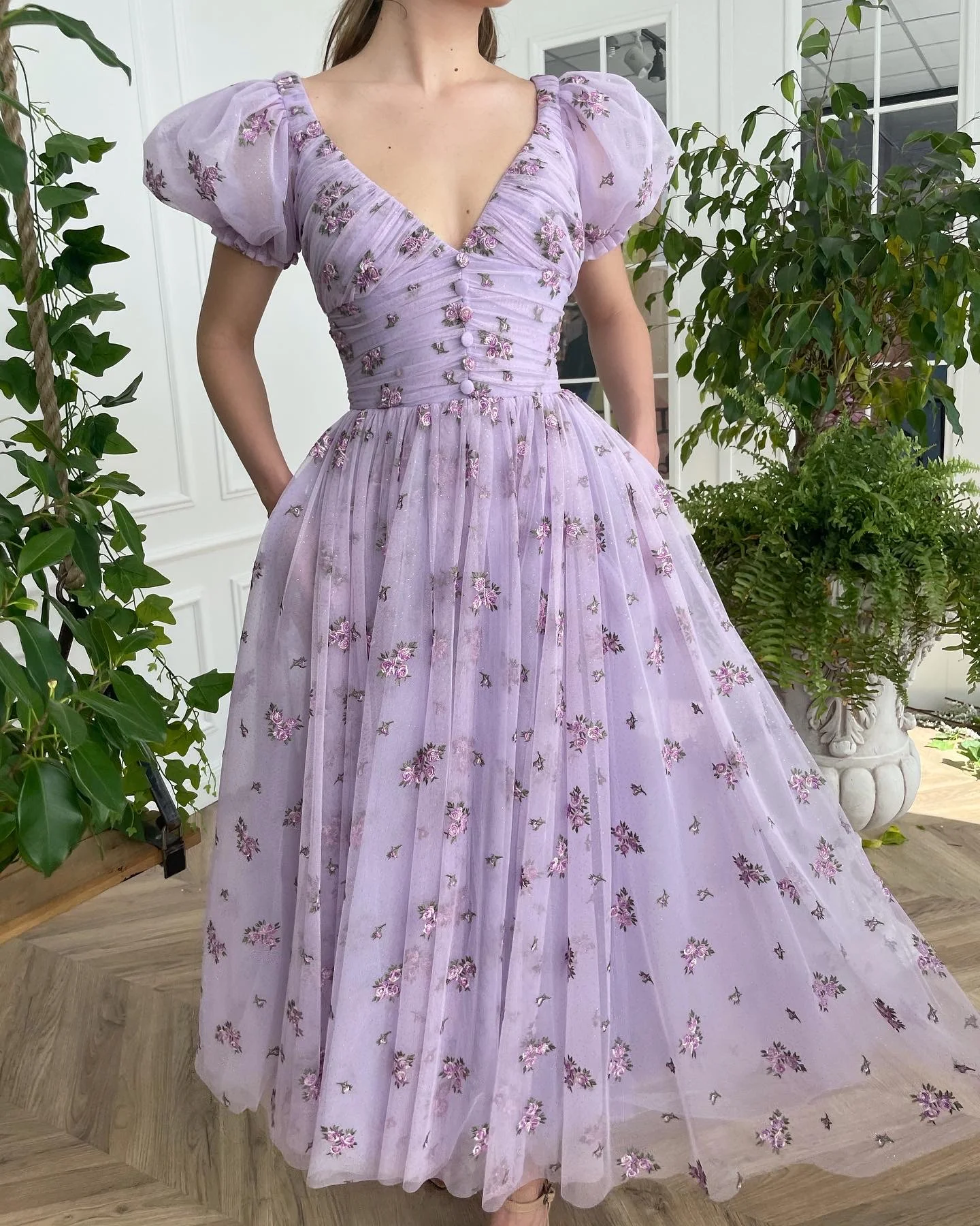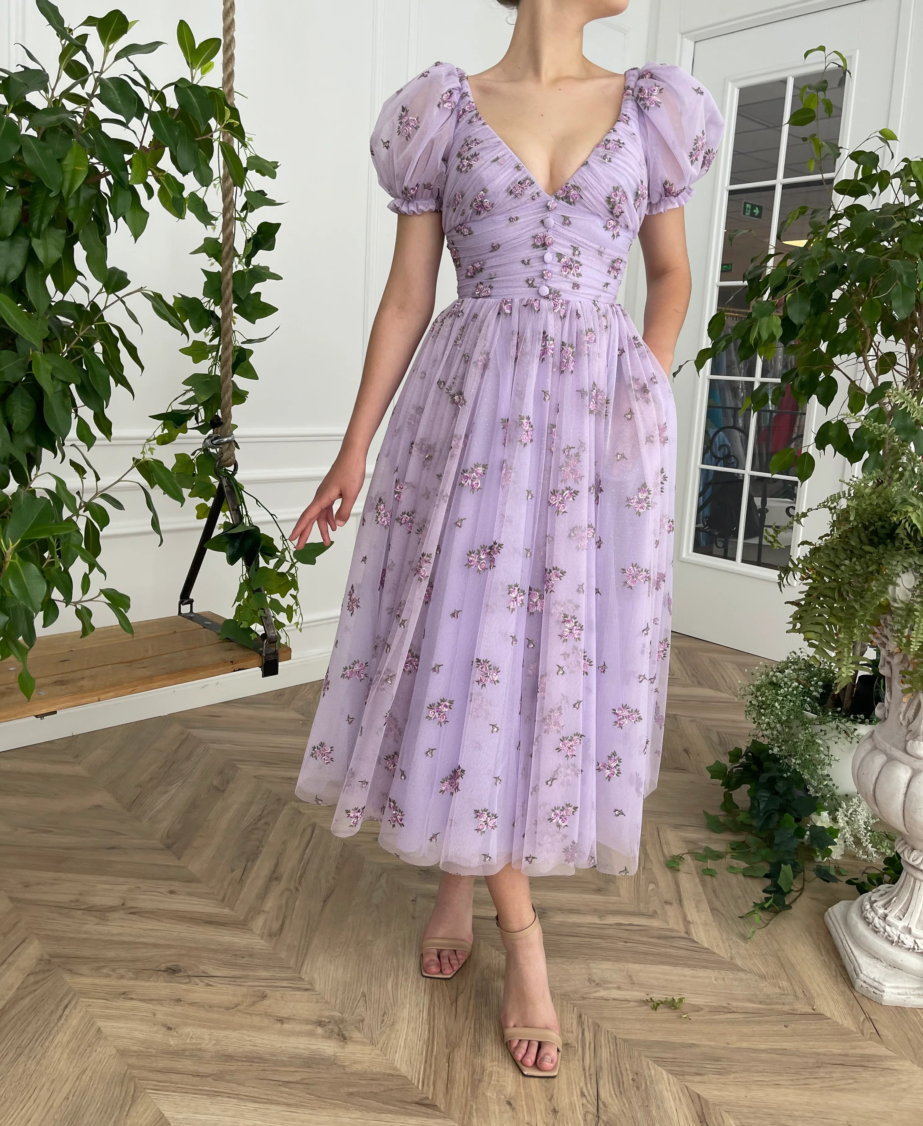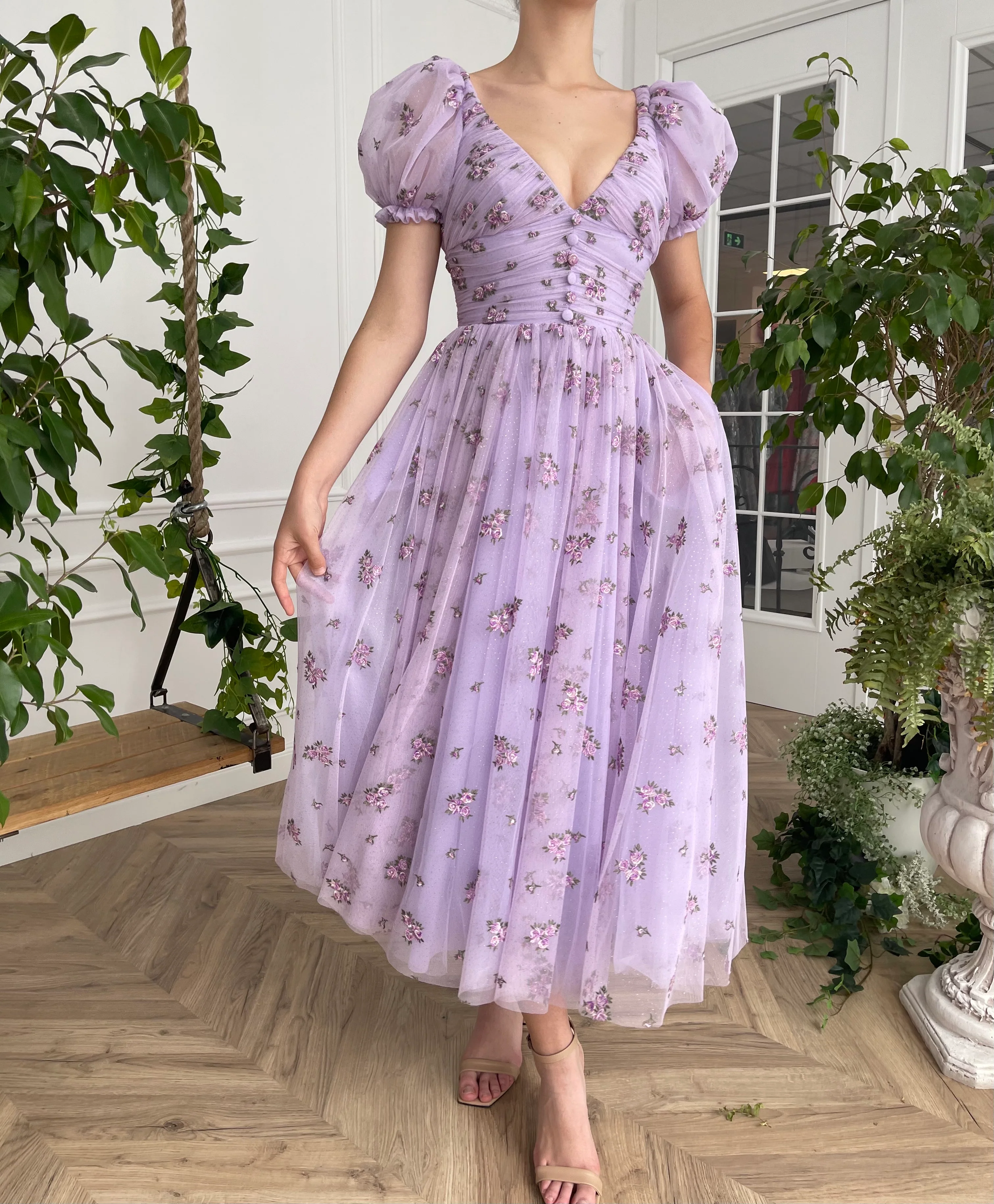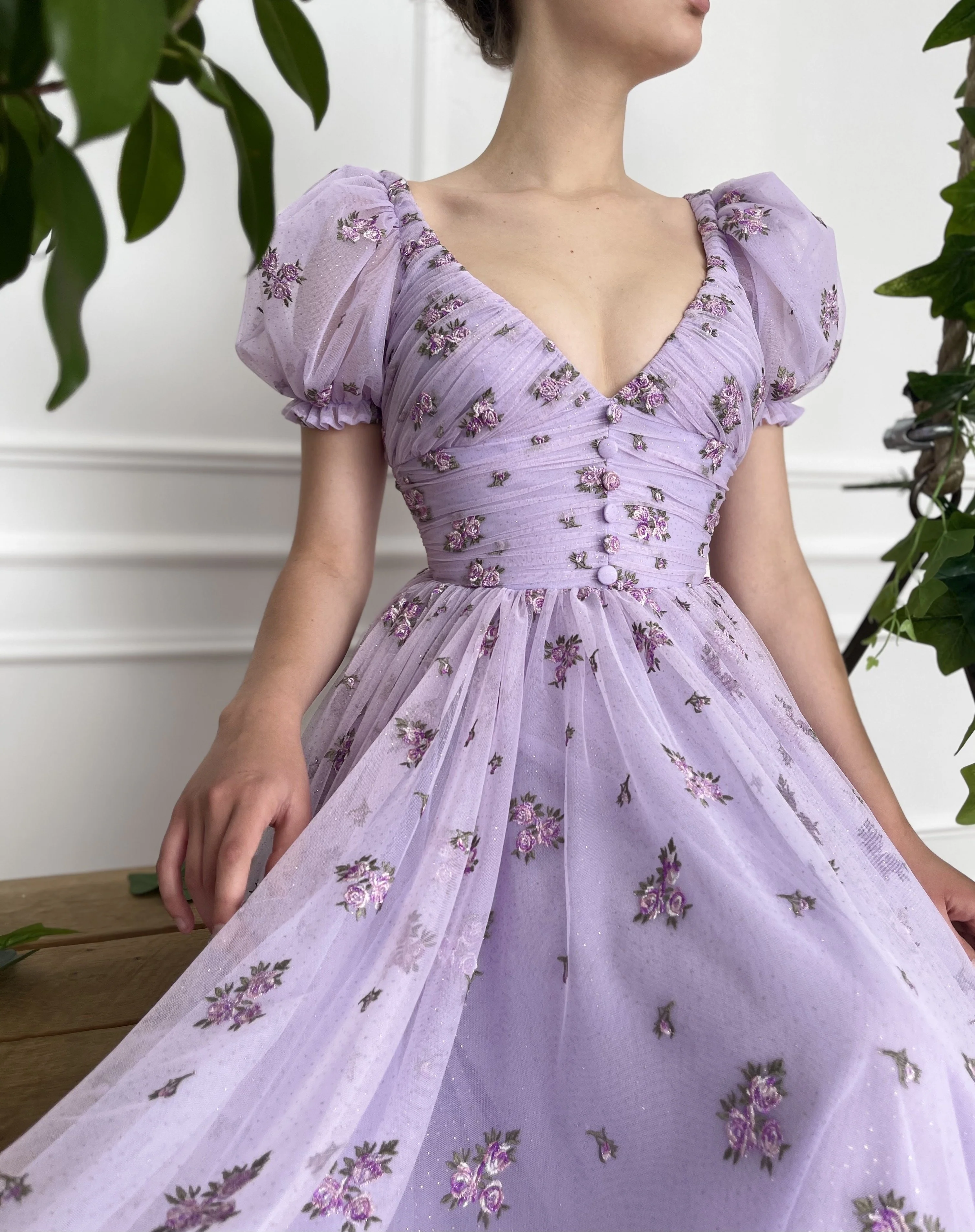 -Lavender tulle with printed flowers