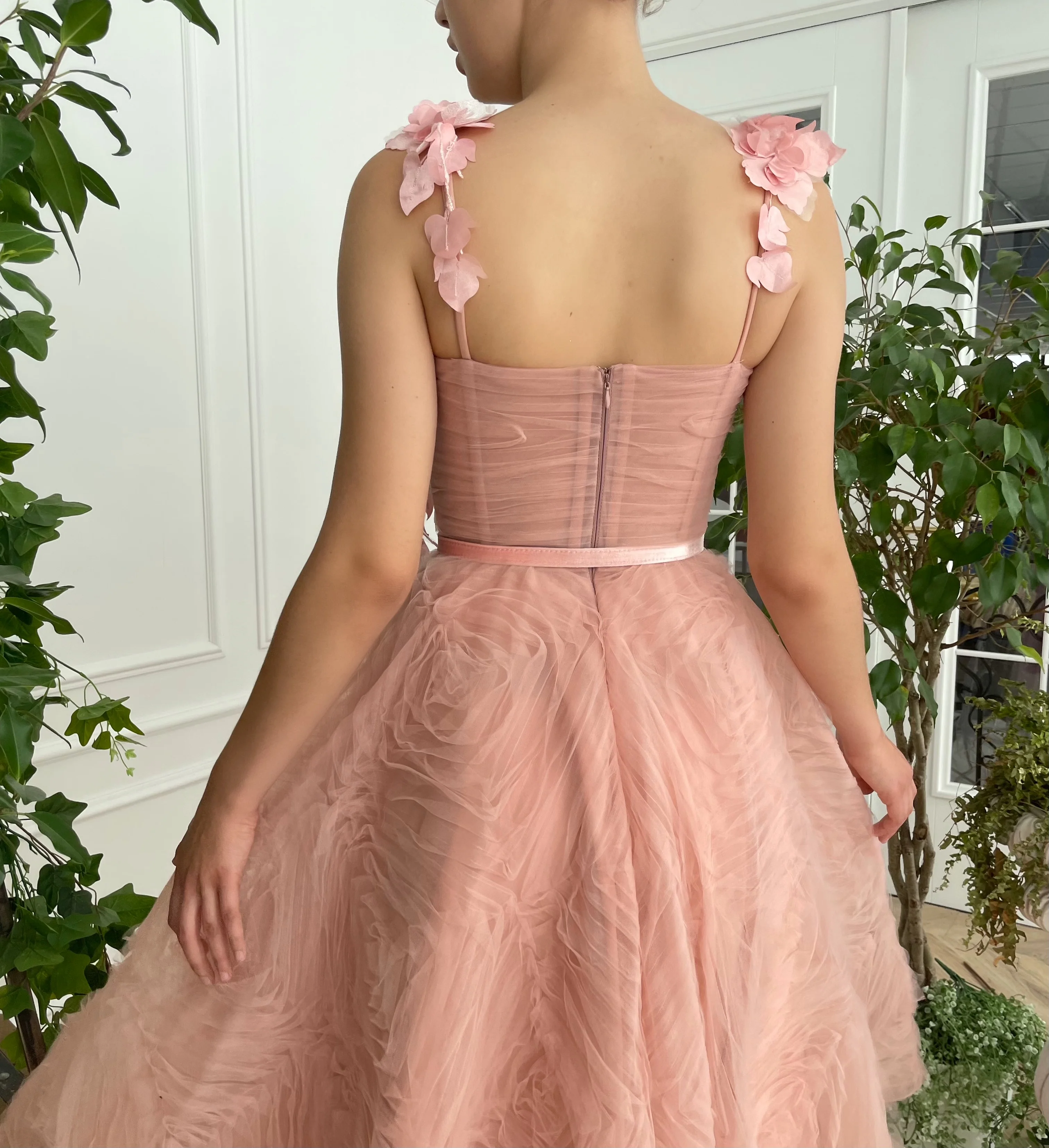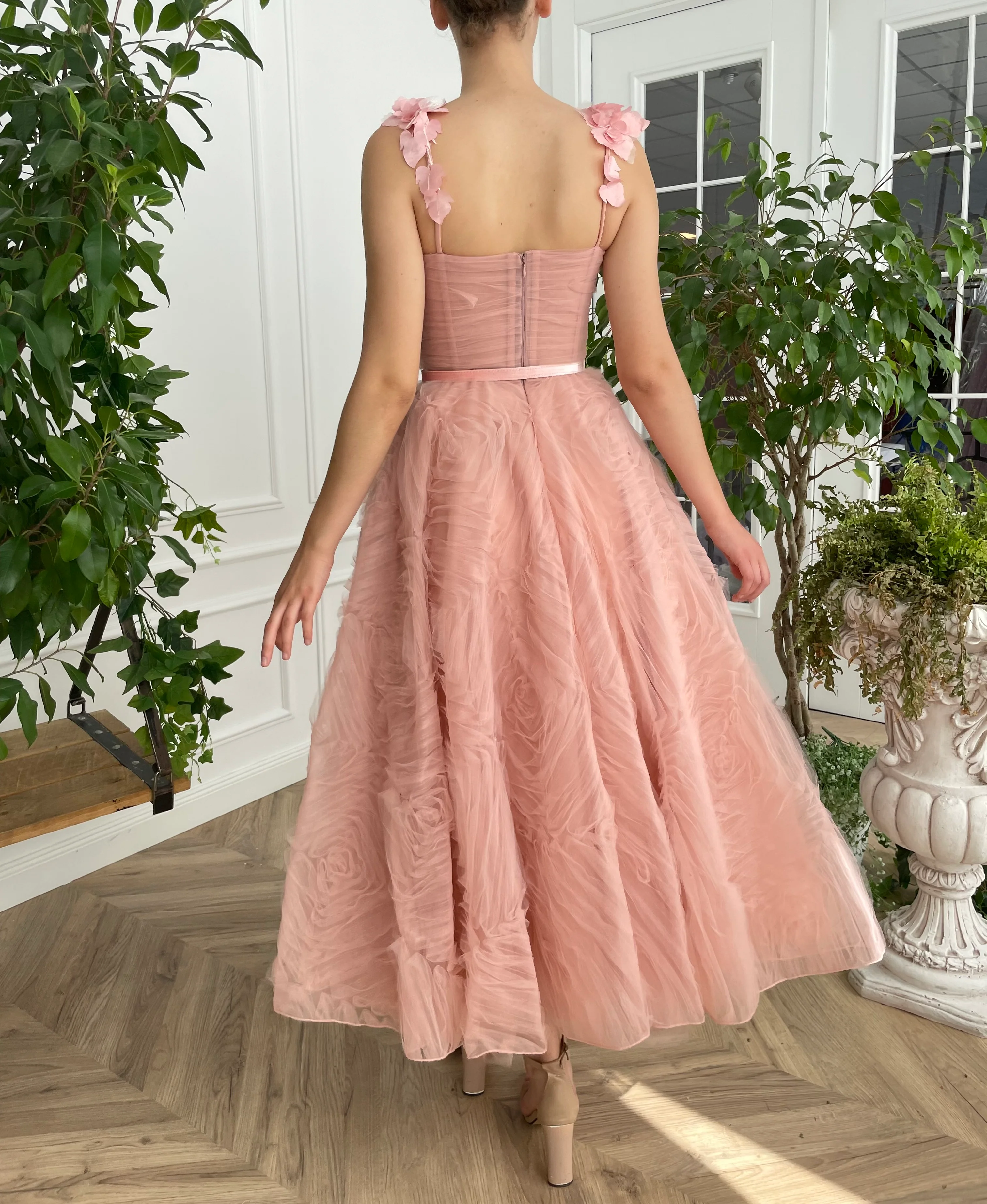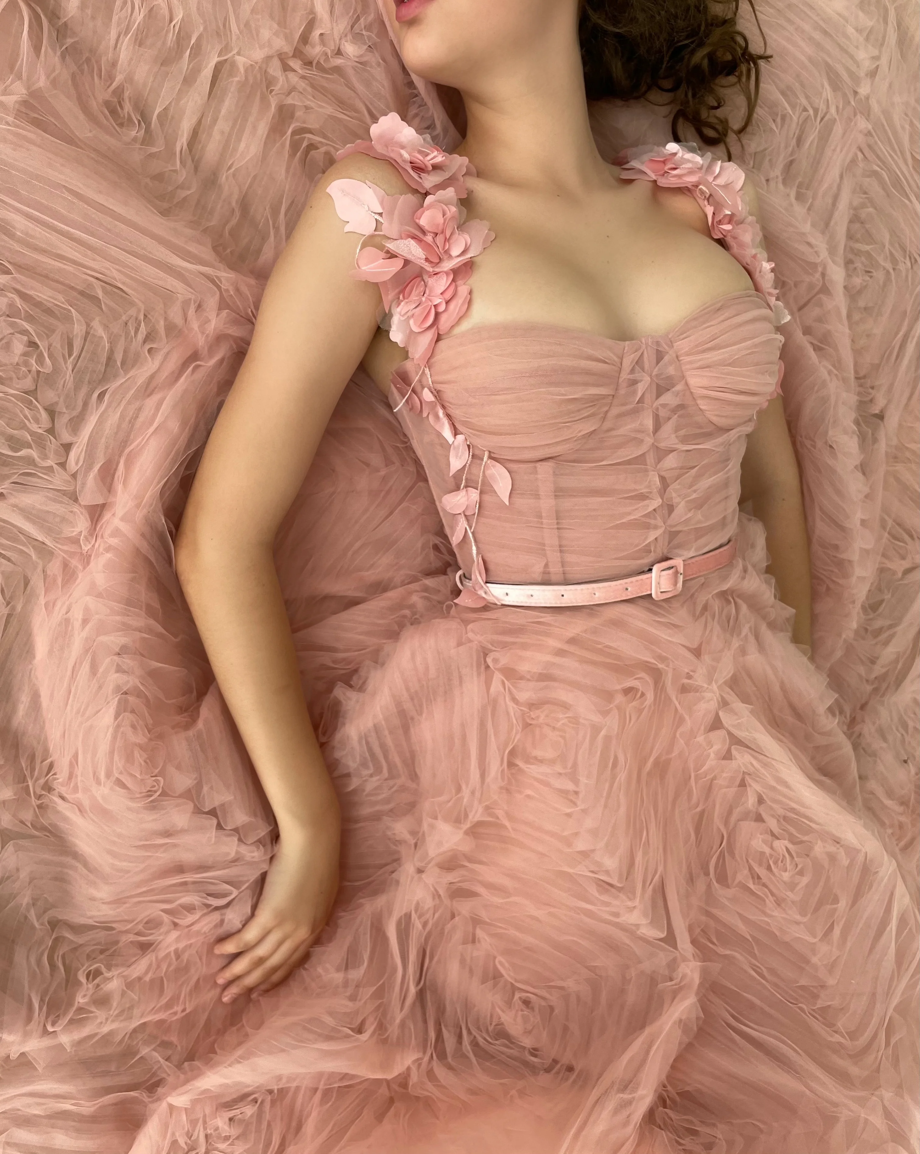 -Rose pink tulle with a pattern