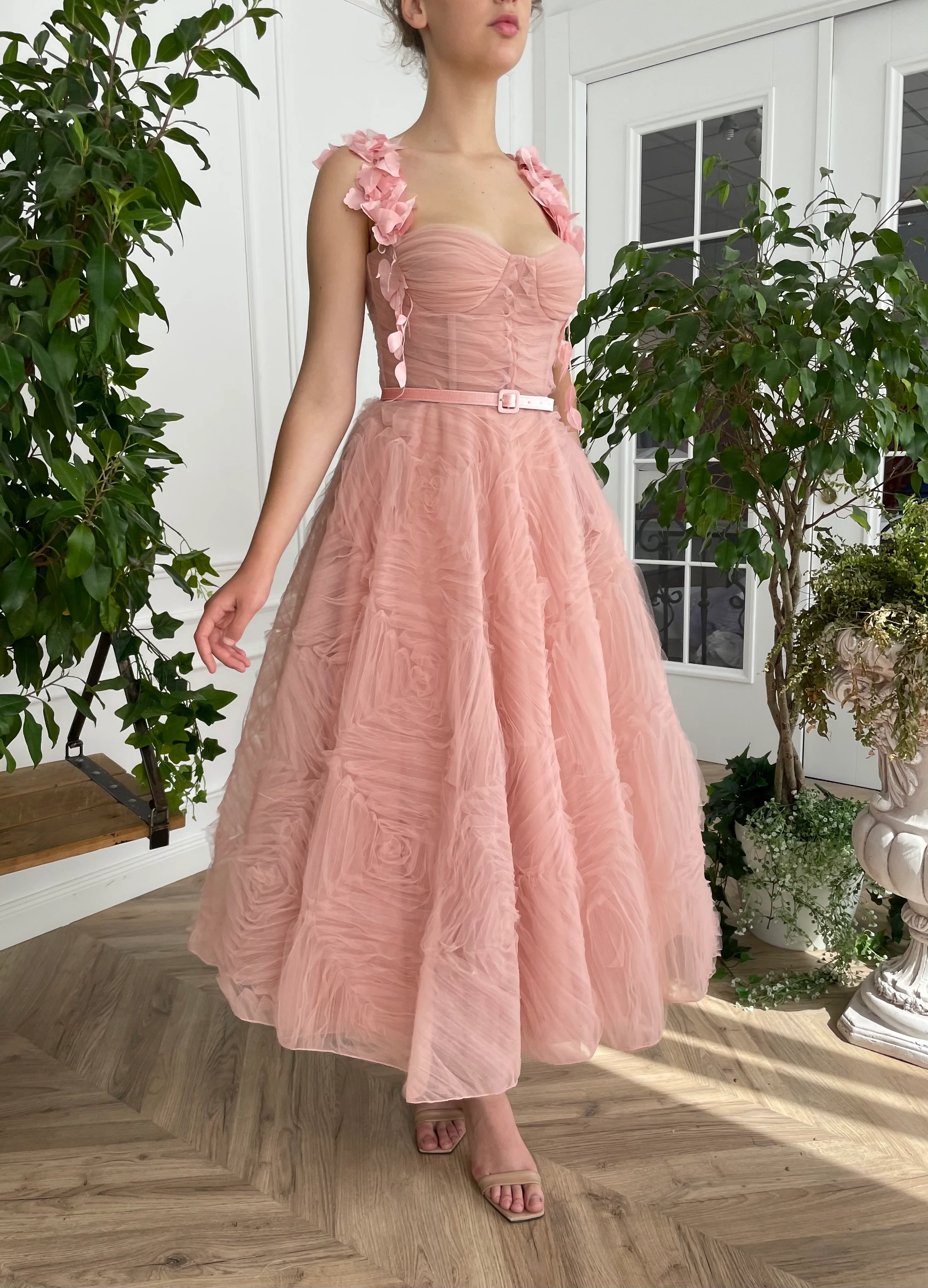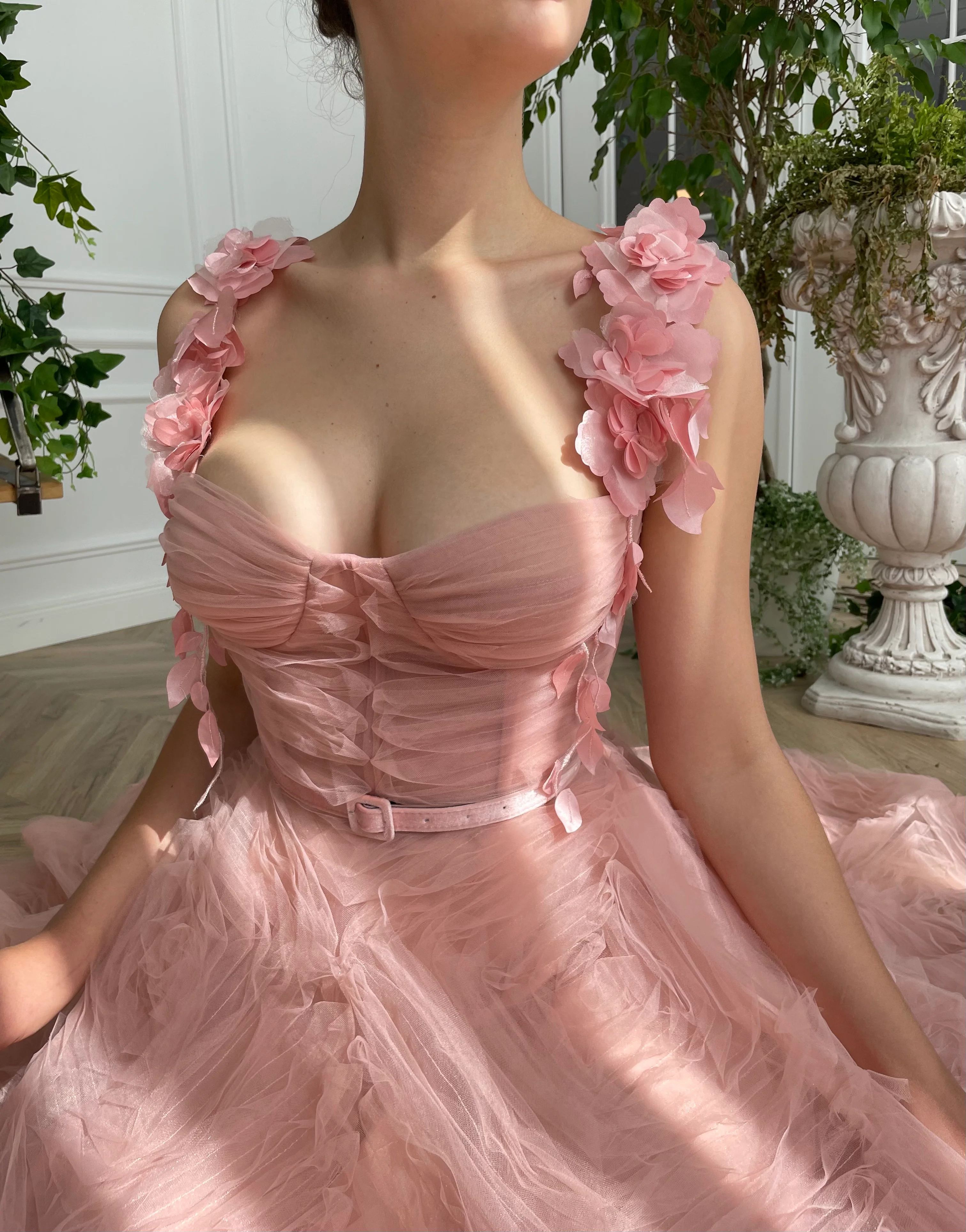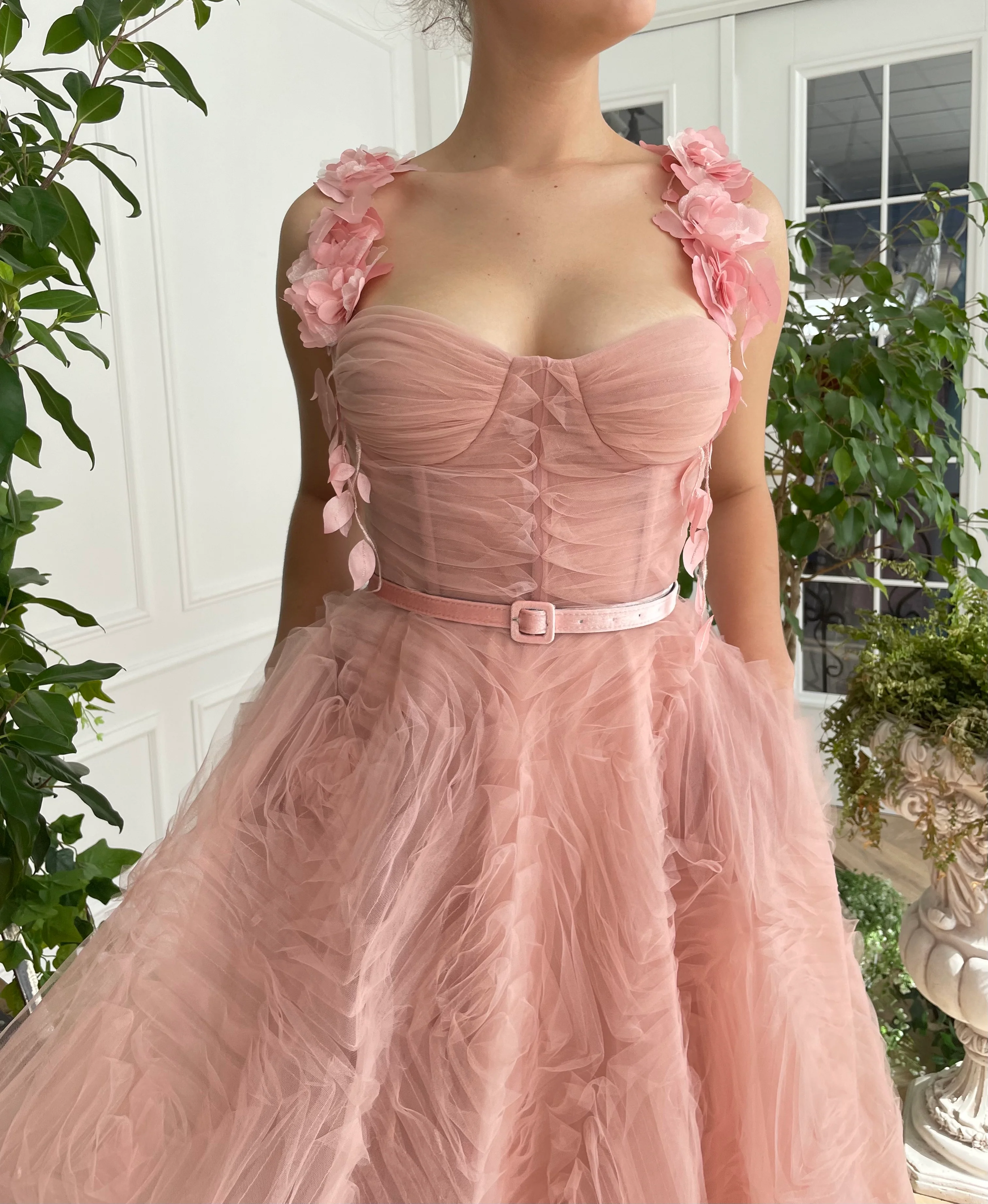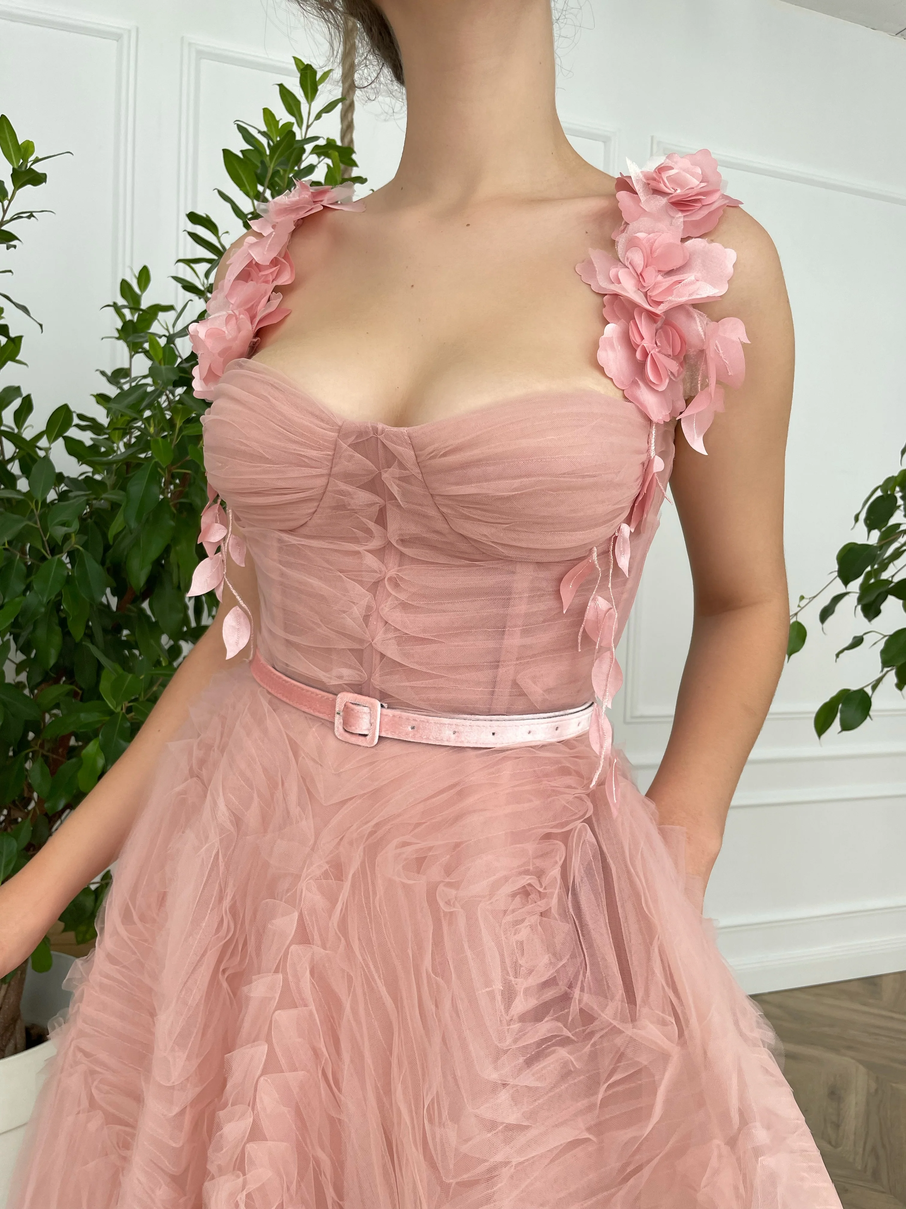 -Rose pink velvet belt.