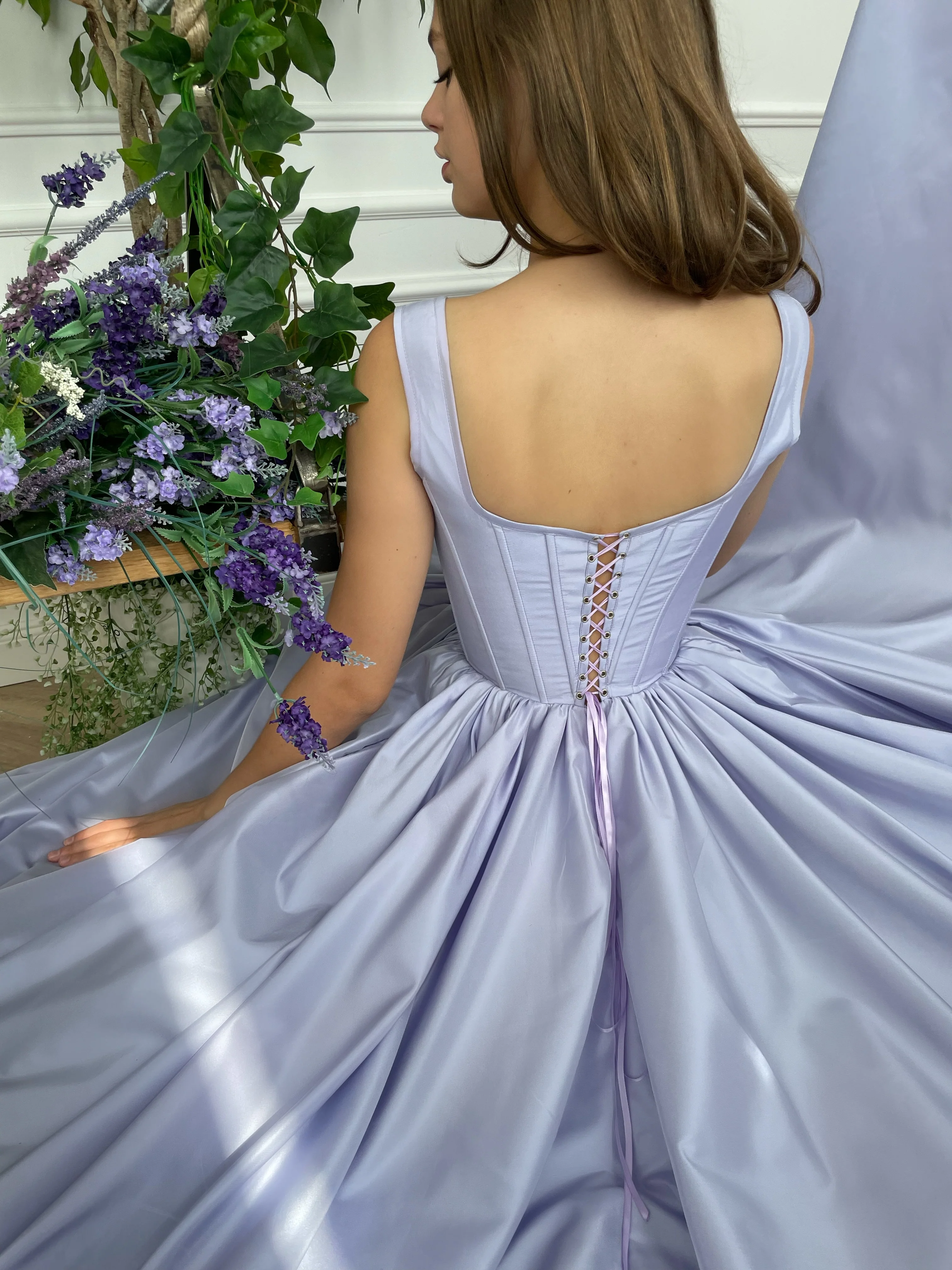 Become a renaissance icon in the Periwinkle Skies Corset Gown. Play queen for the day in your bucolic chateau and bake heavenly lavender lemon macarons. Fill your pockets with lavender while you run around barefoot, your floor-length gown trailing behind you. Adjust the corset with fitting boning for a custom look.