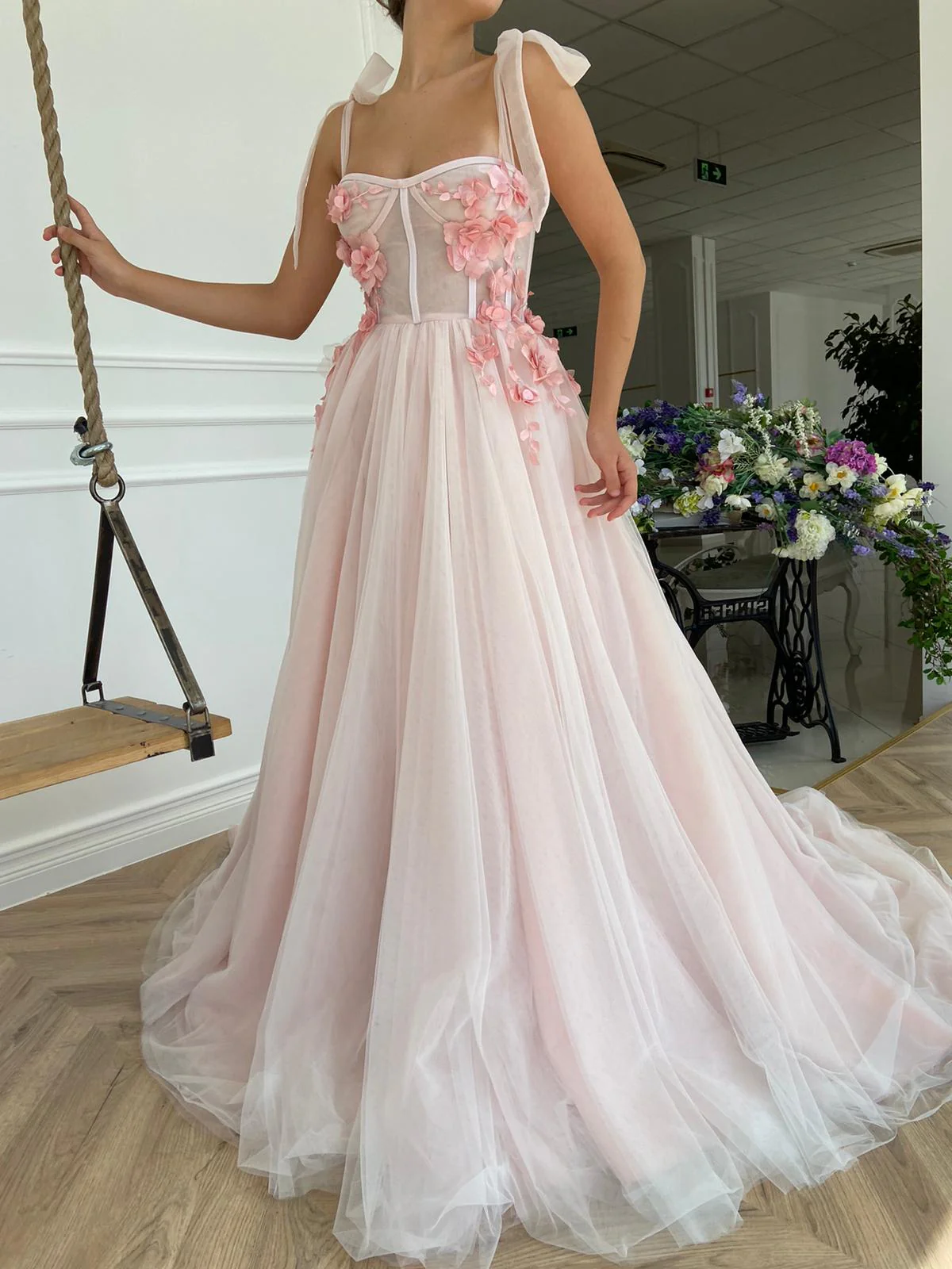 -A-line with embroidered flowers on top