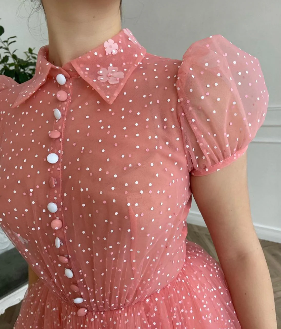 -Peachy dotted tulle fabric