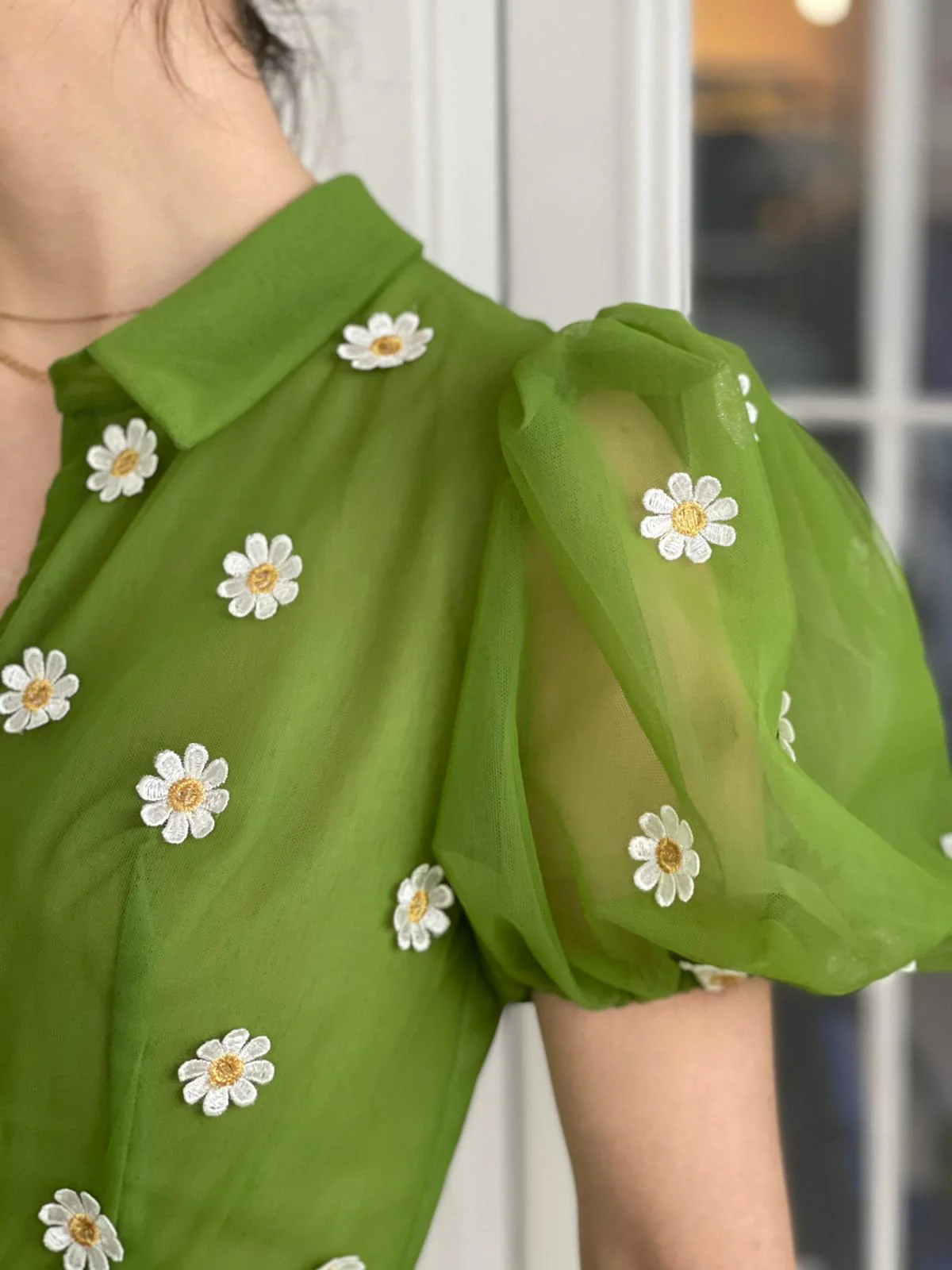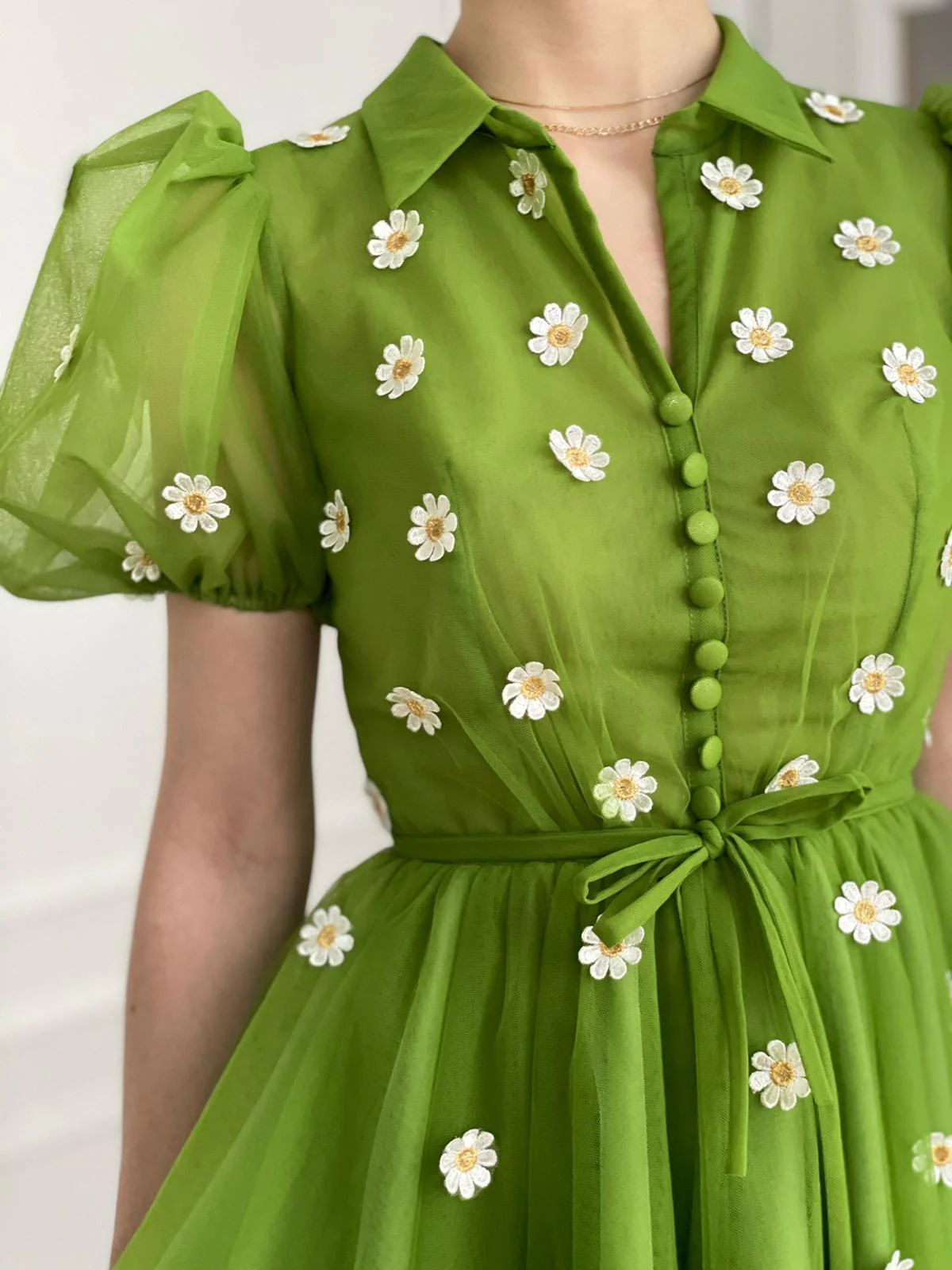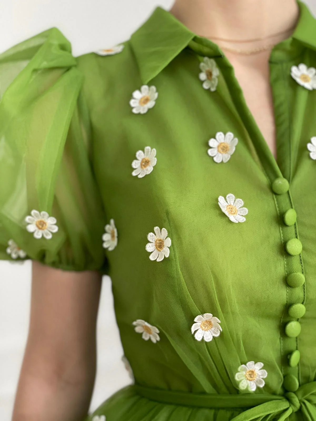 -Tulle fabric with embroidered daisies