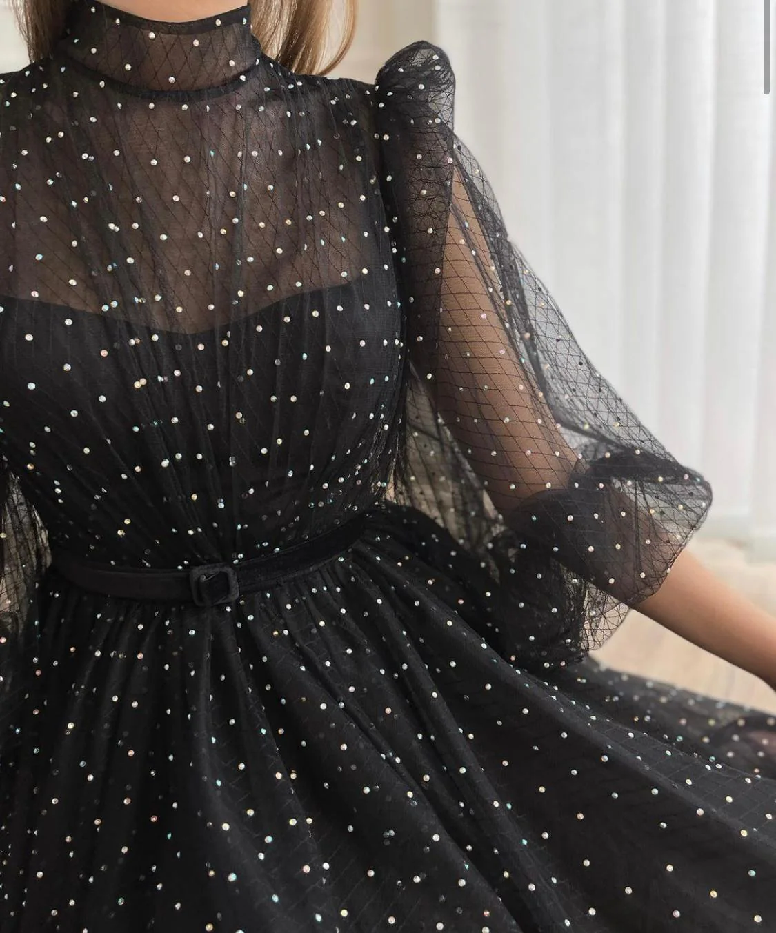 -Tulle fabric with small stones attached