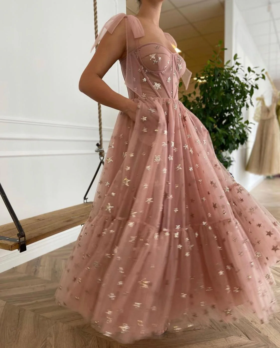 -Tea length with decorative straps