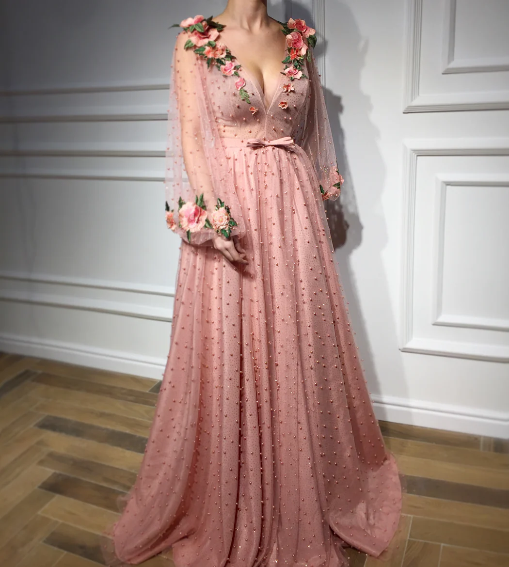 - Handmade embroidered pearls and flowers