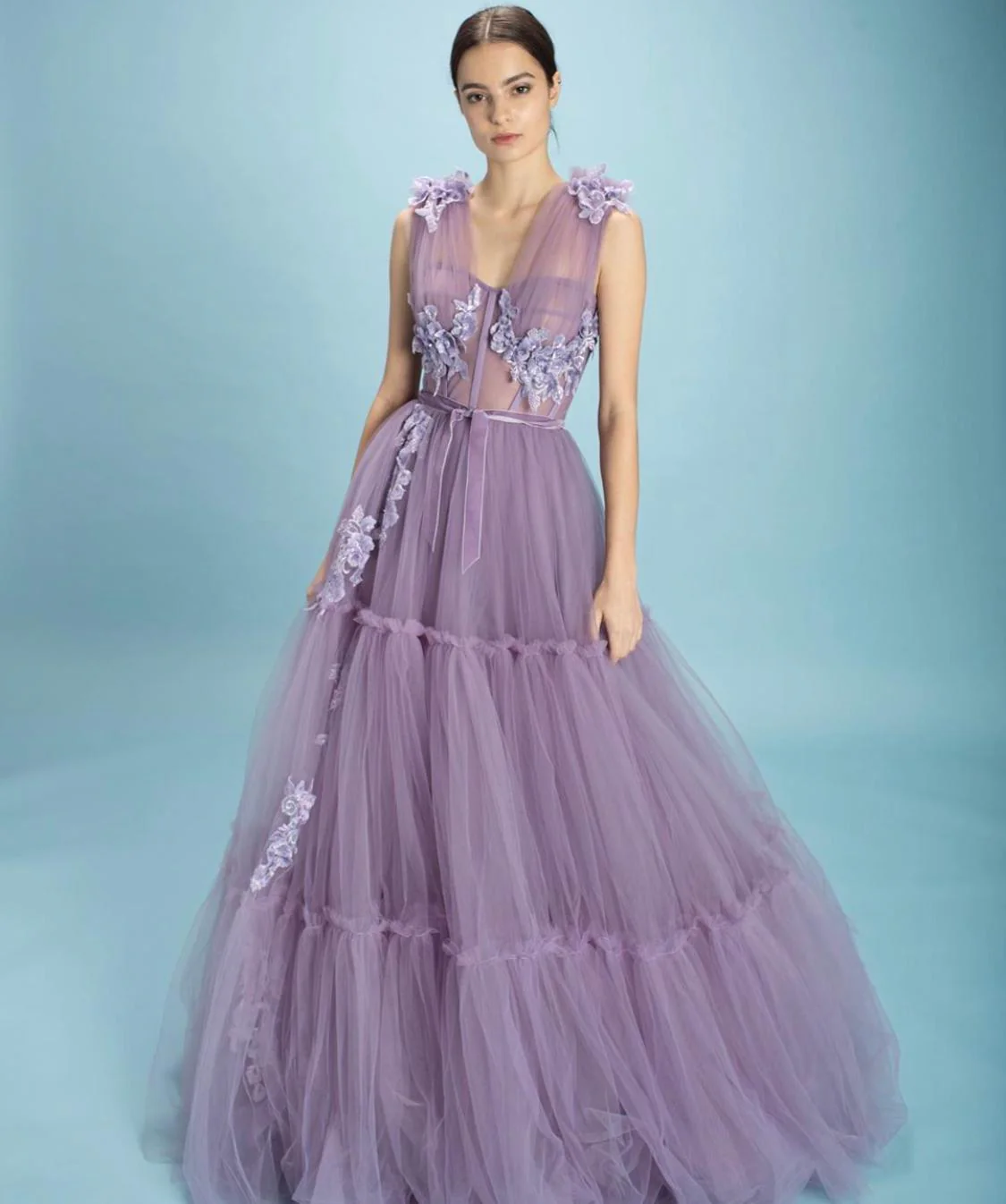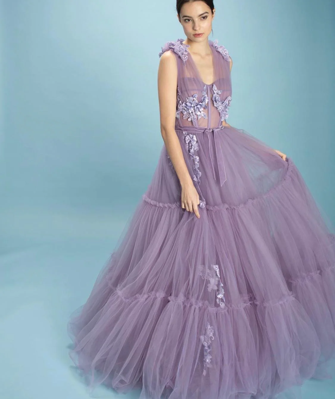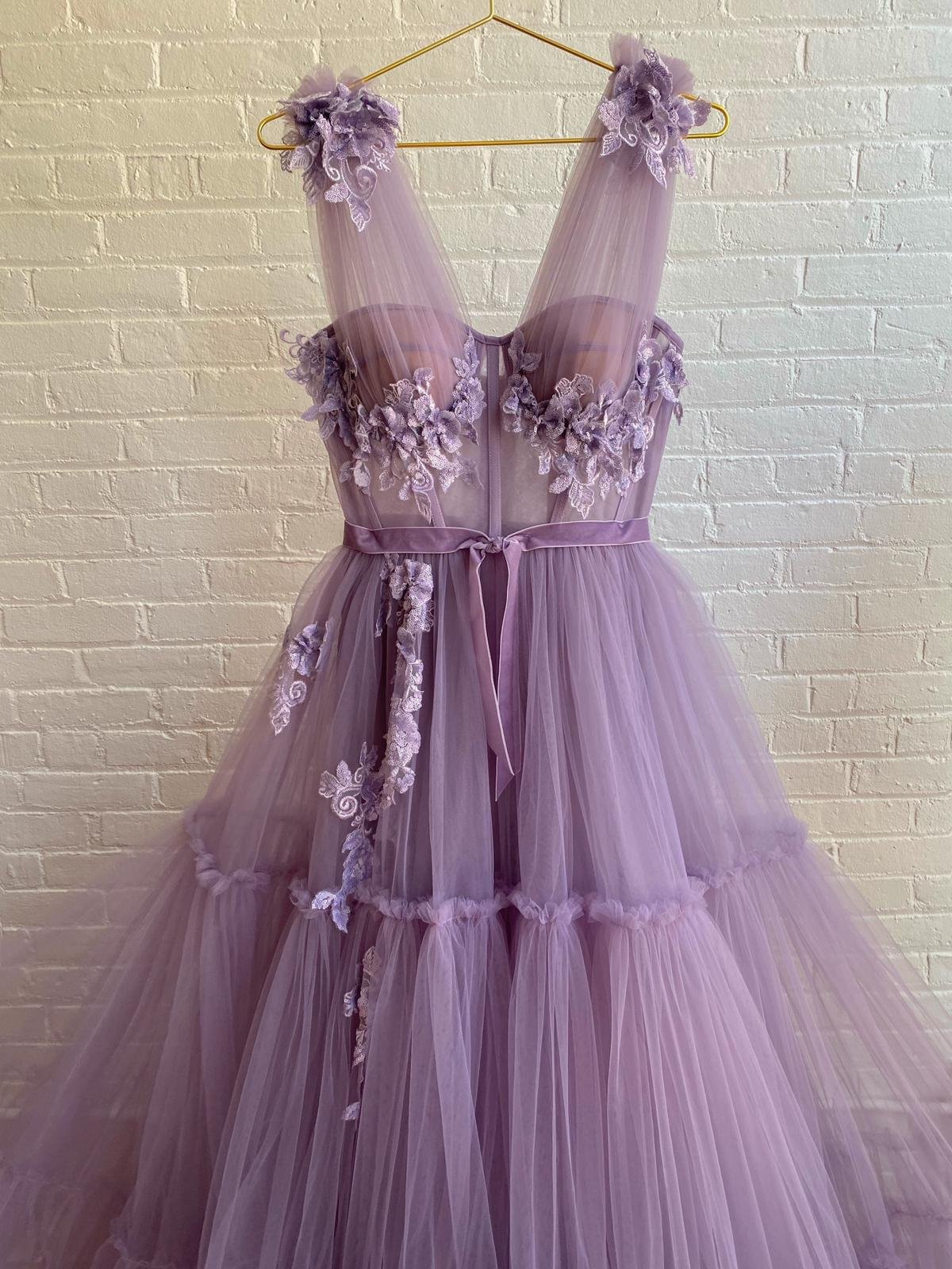 Get charmed in shades of vivid violet and handmade, embroidered lace flowers. Meet the Charming Violet Gown, perfect for days spent dancing or long nights out. Featuring a sheer bodice and a beautiful skirt made out of delicately gathered tulle.