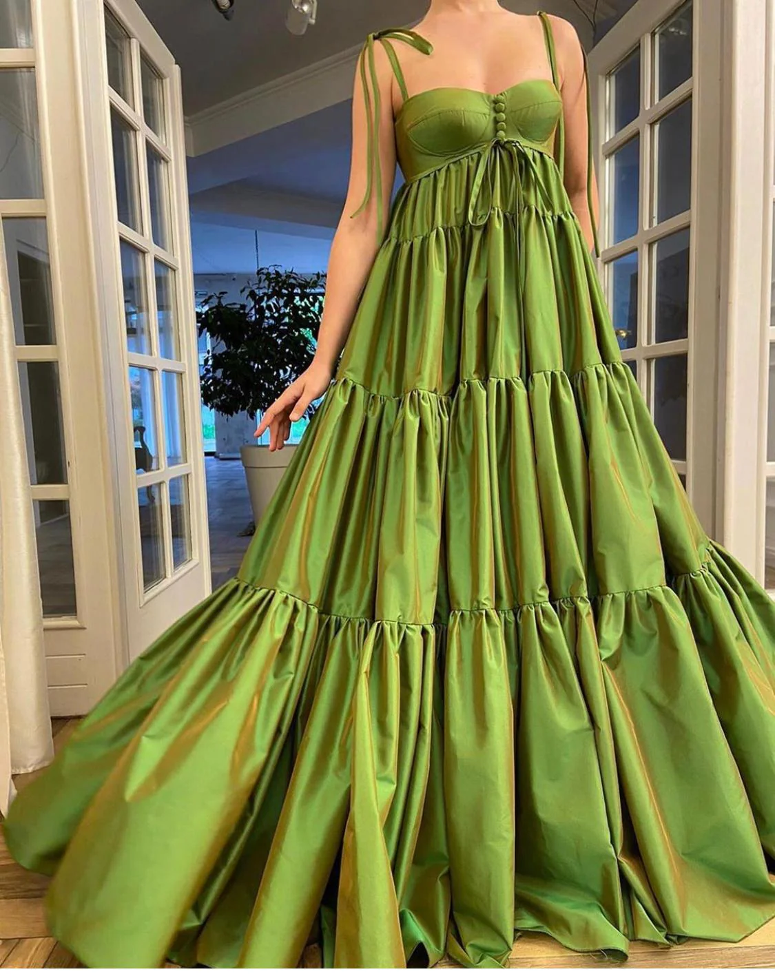 Shine in a luscious lime color made for the most special occasions. The Melrose Shine Gown is made of illuminated taffeta and cut as a babydoll silhouette with a high waist. The skinny, adjustable shoulder straps and flowing tiered skirt is flattering for all bodies.