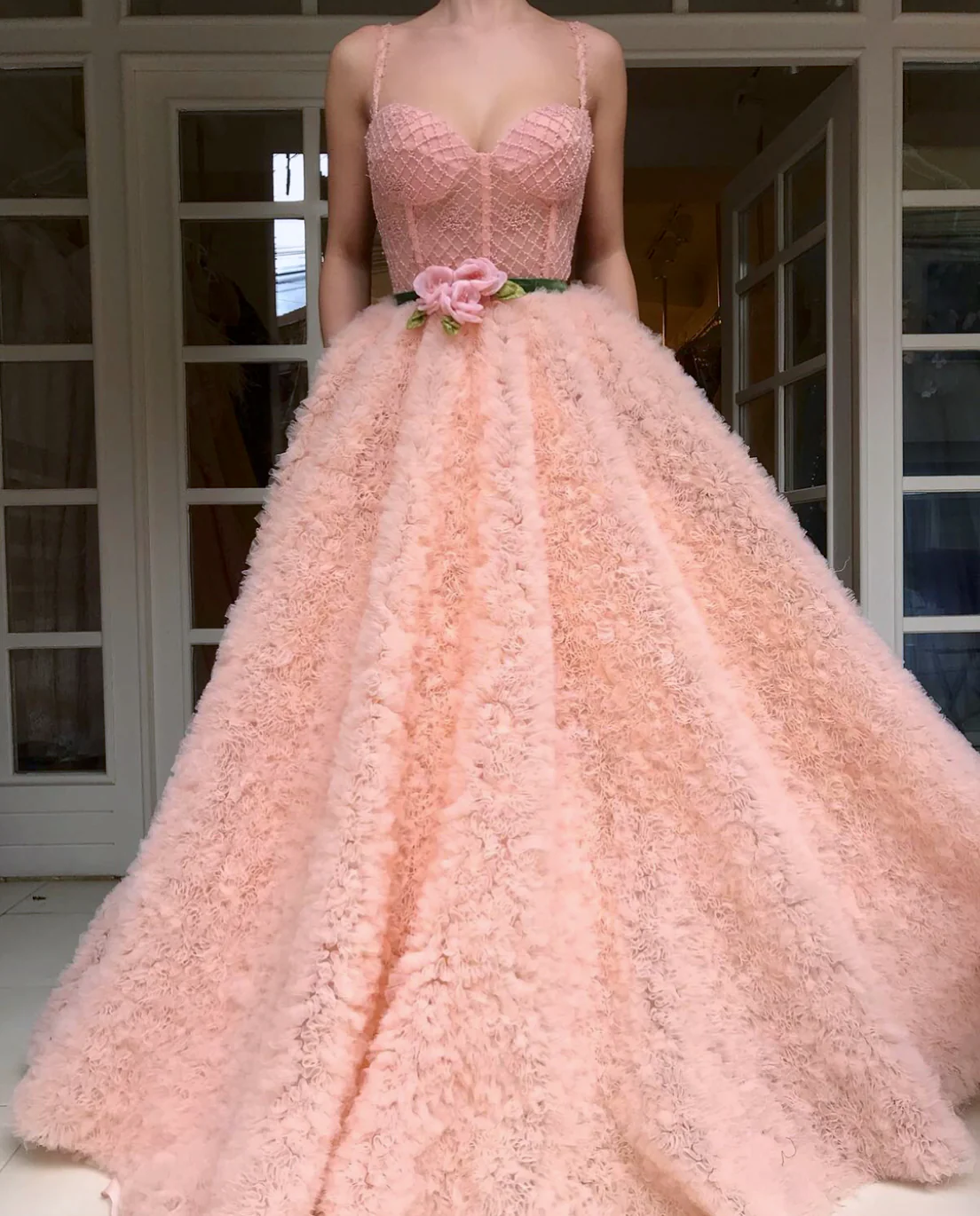 - A-line gown with waist definition
