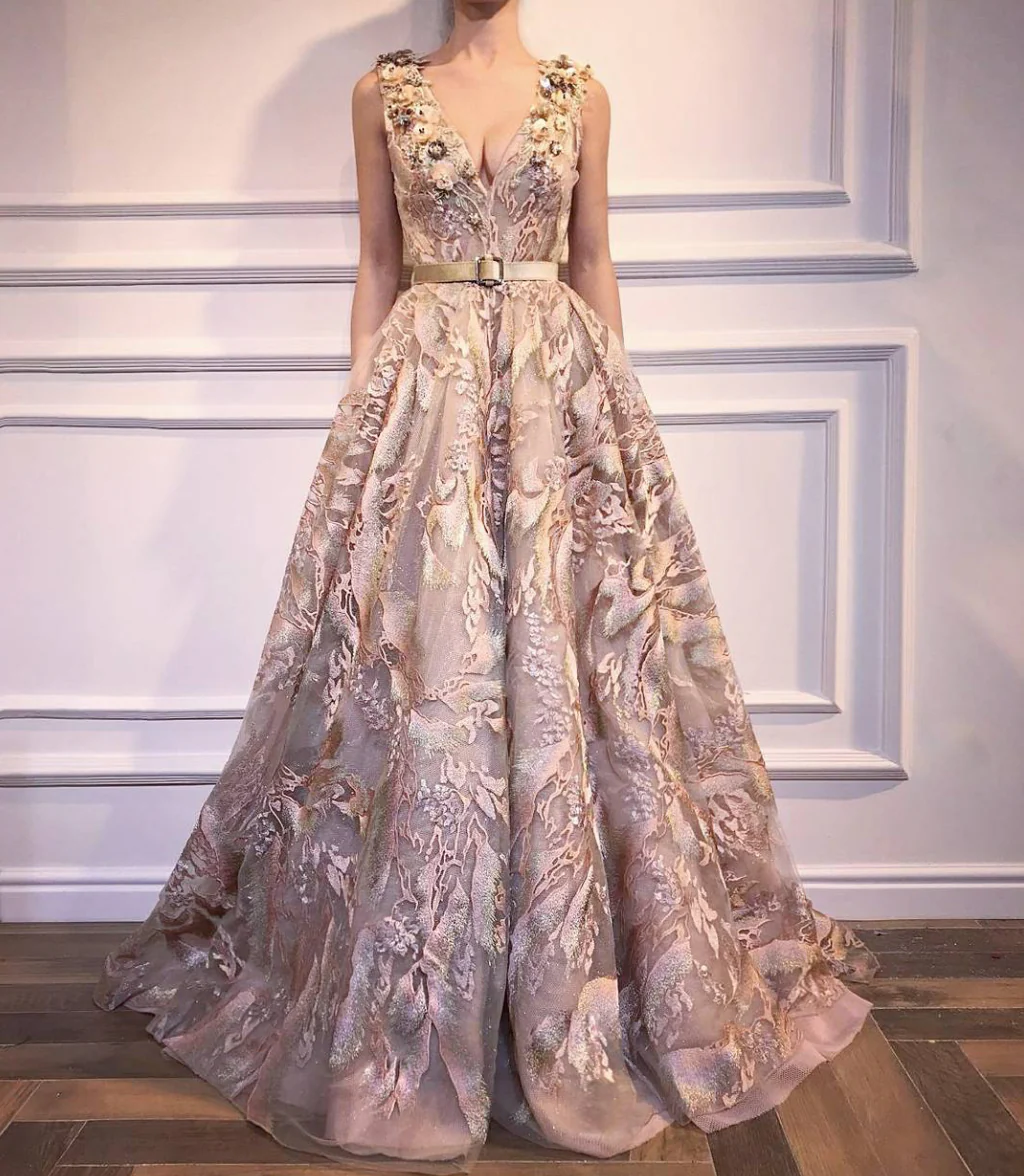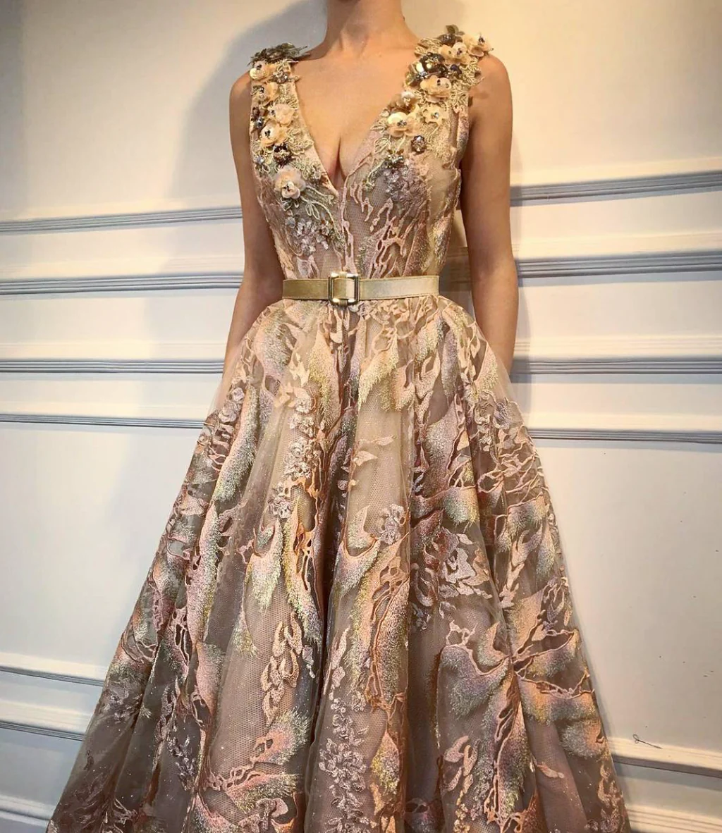- A-line dress shape with waist definition and V-neck