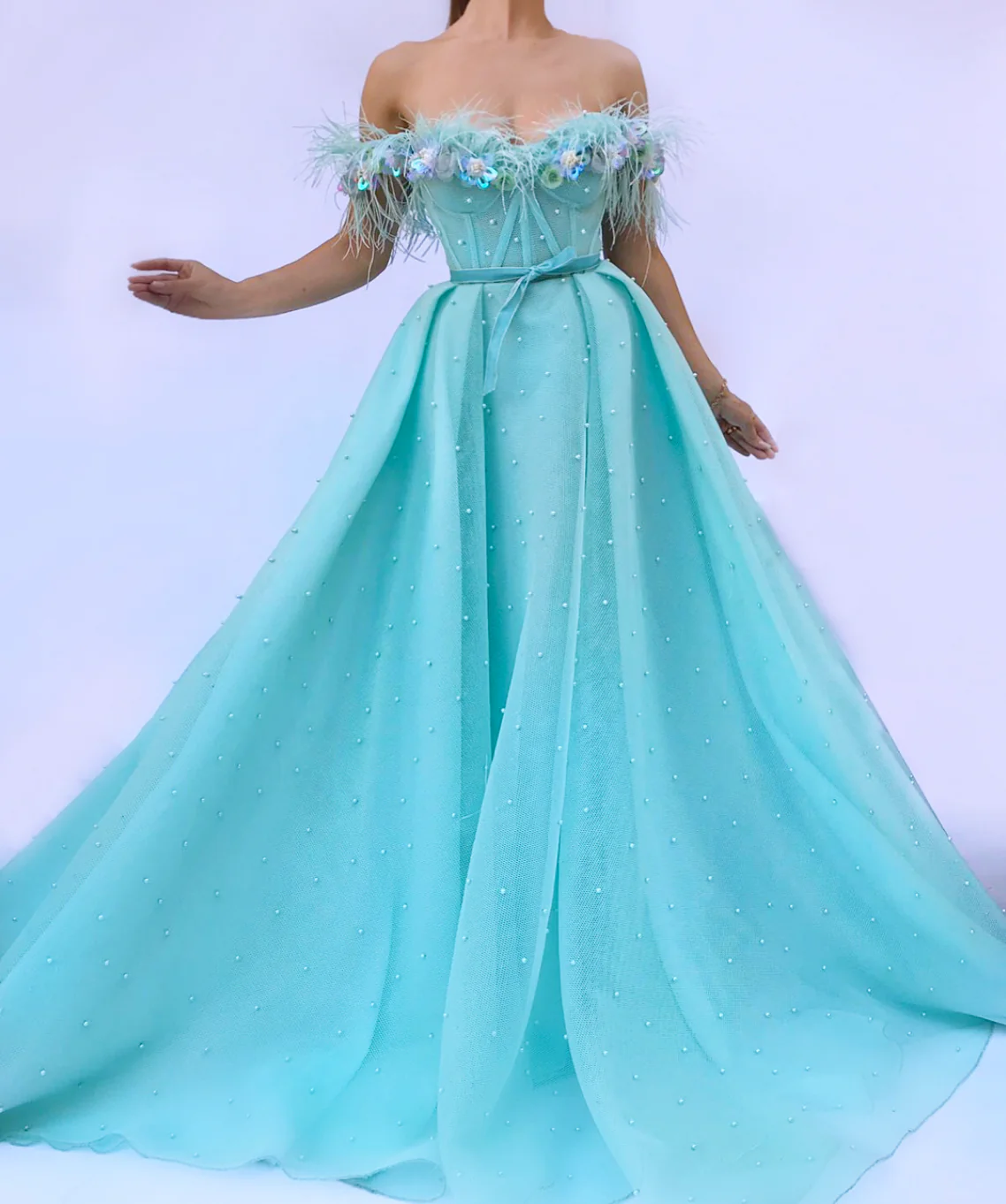- Handmade embroidered flowers and pearls