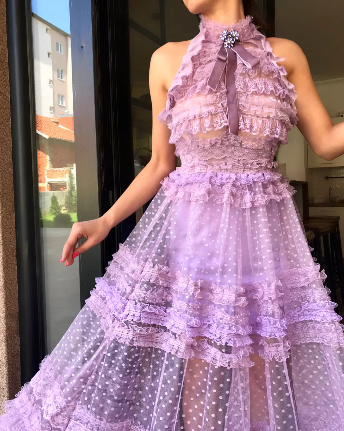 - Designed tulle fabric with dots