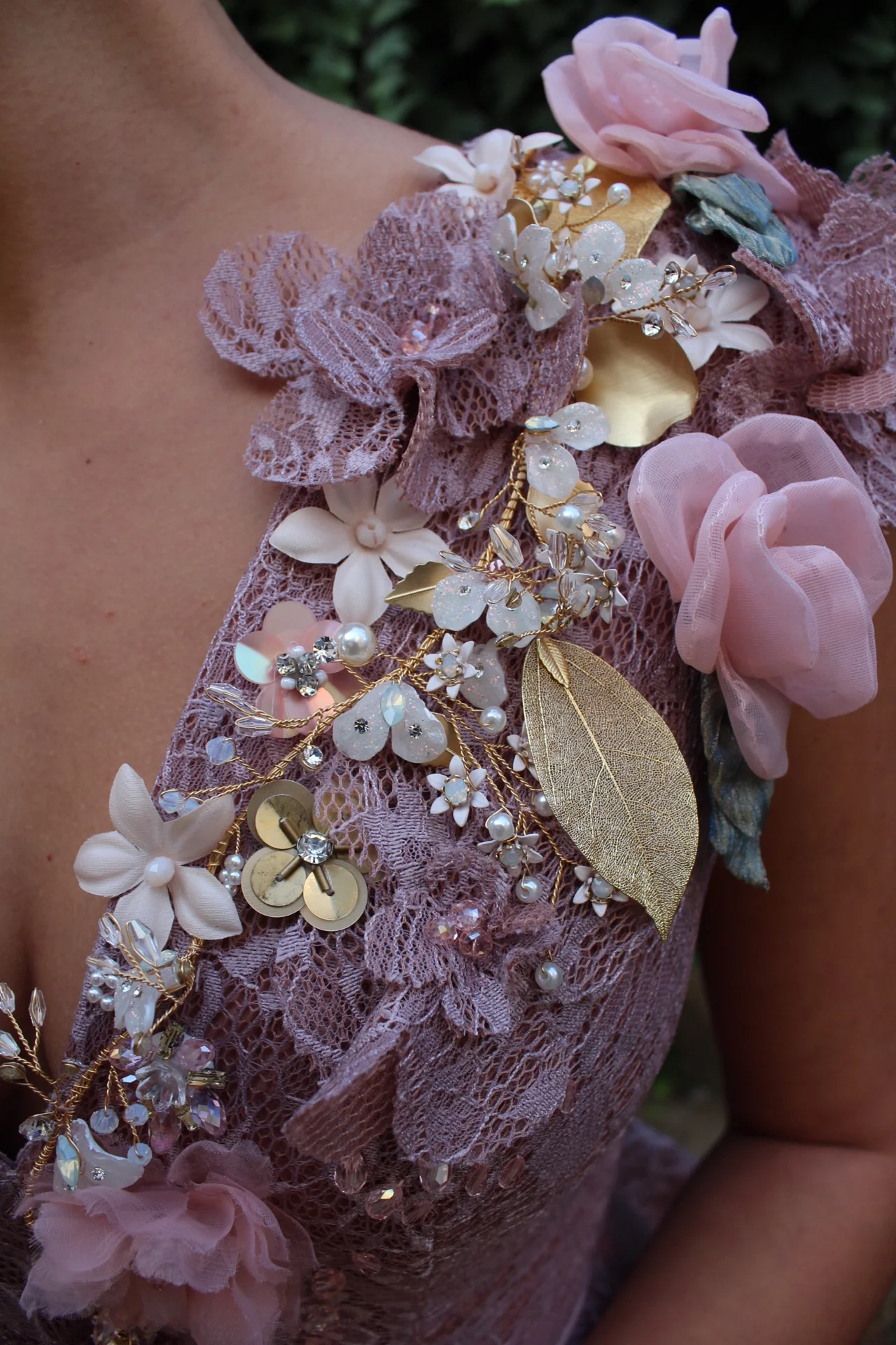 - Handmade embroideries different kinds of flowers,leaves and crystals