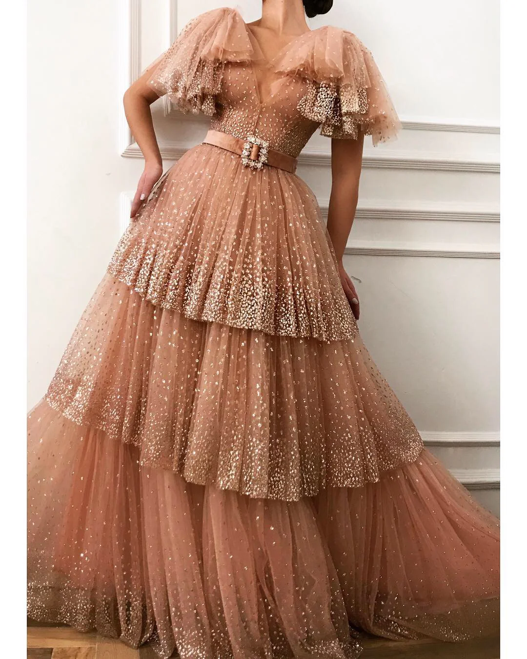 - Glittery tulle dress fabric
