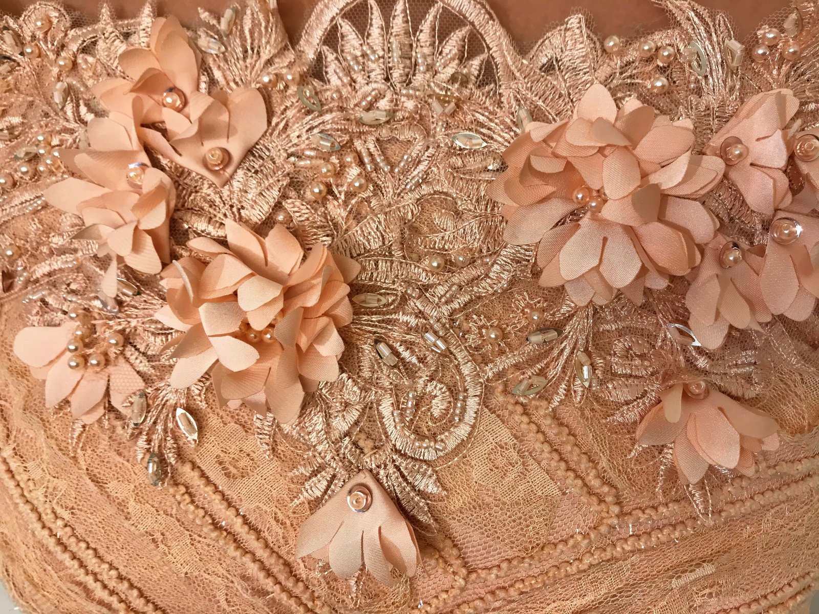- Handmade embroidered tulle fabric