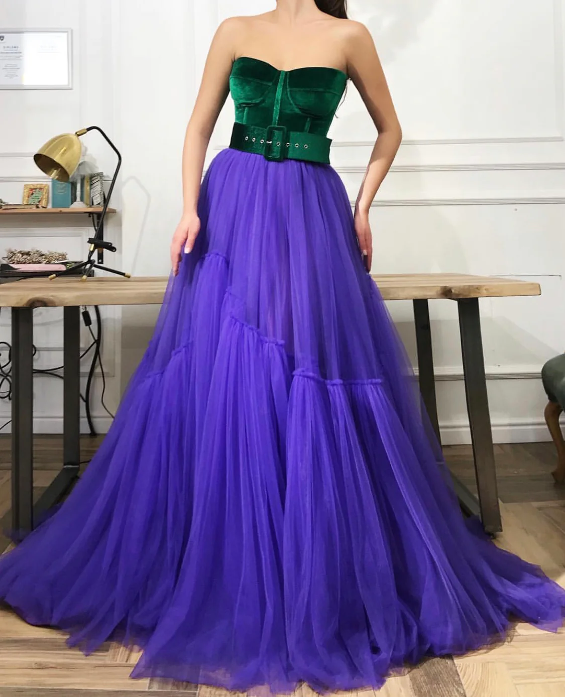 - Velvet and Tulle Mix-Fabric dress