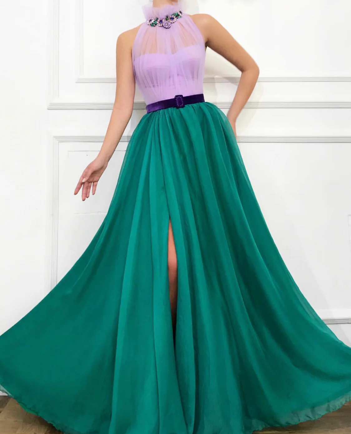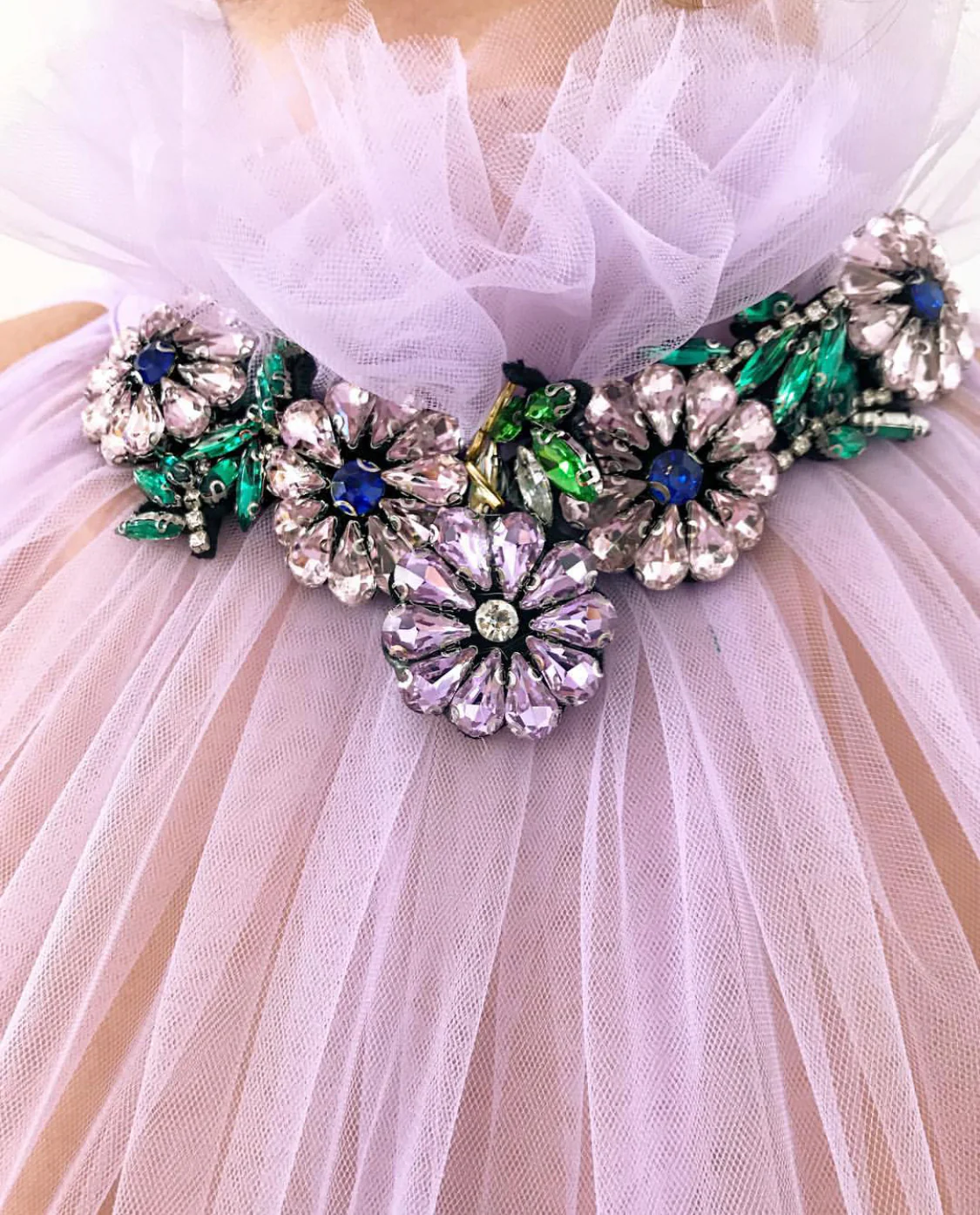 - Handmade embroidered crystals and belt