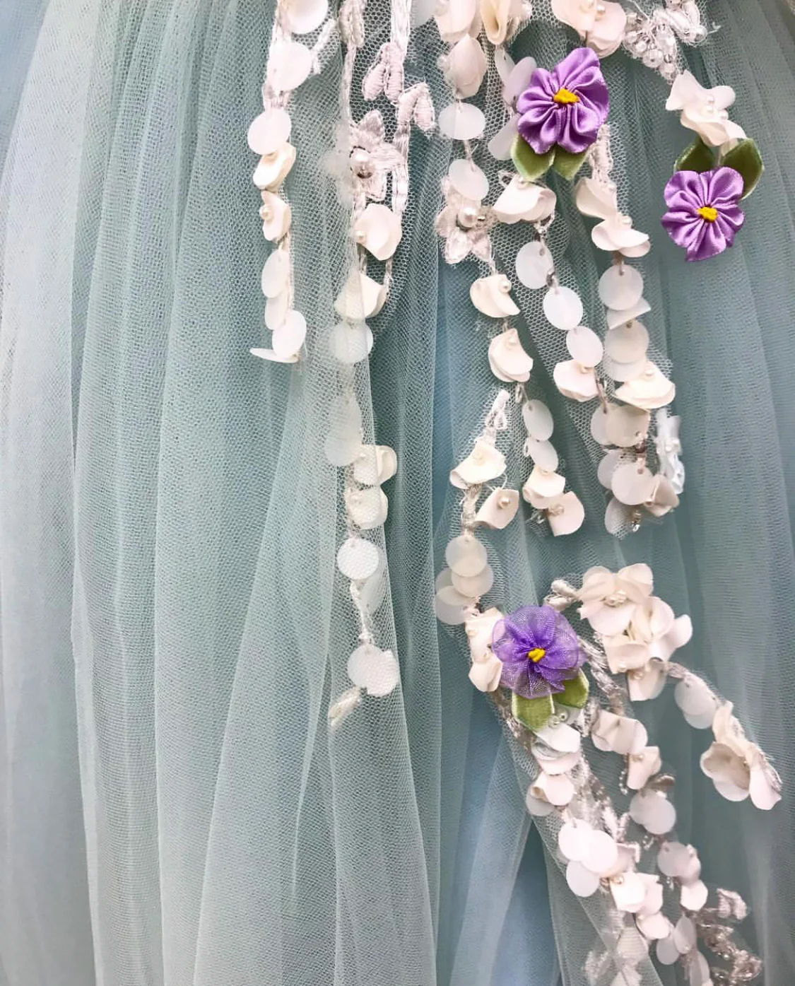 - Handmade embroidered flowers