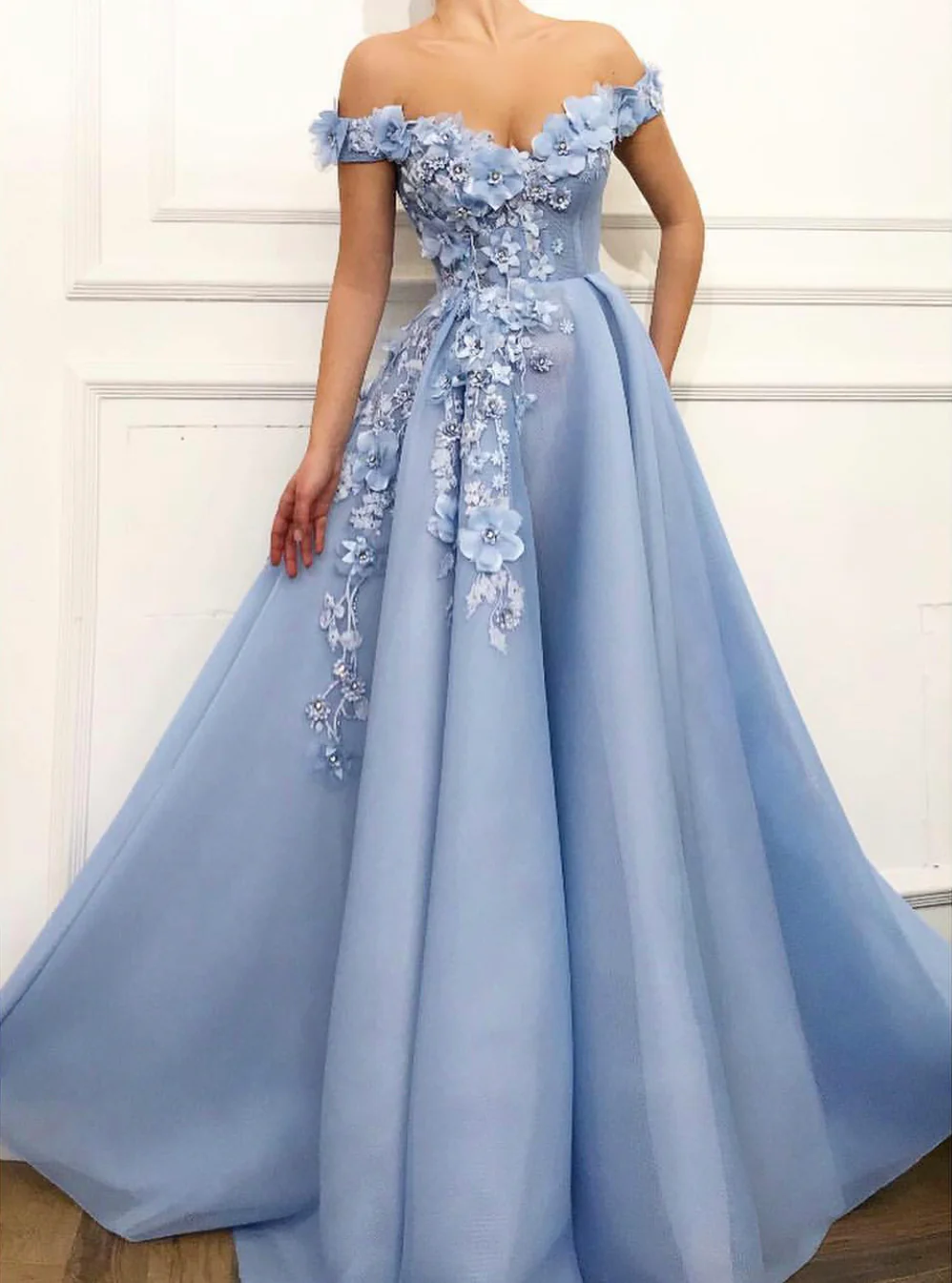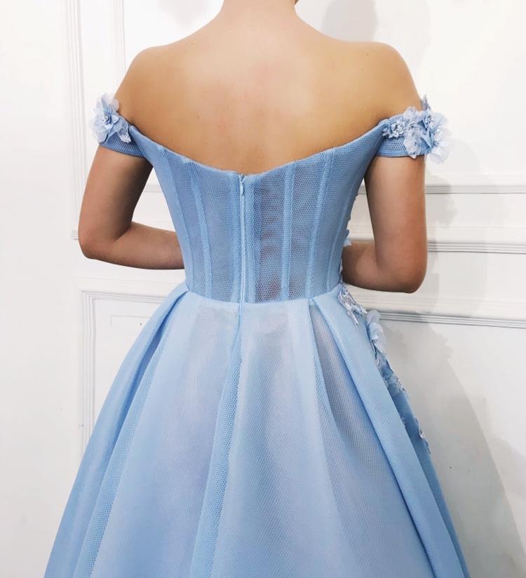 - Off-shoulder, ball gown dress