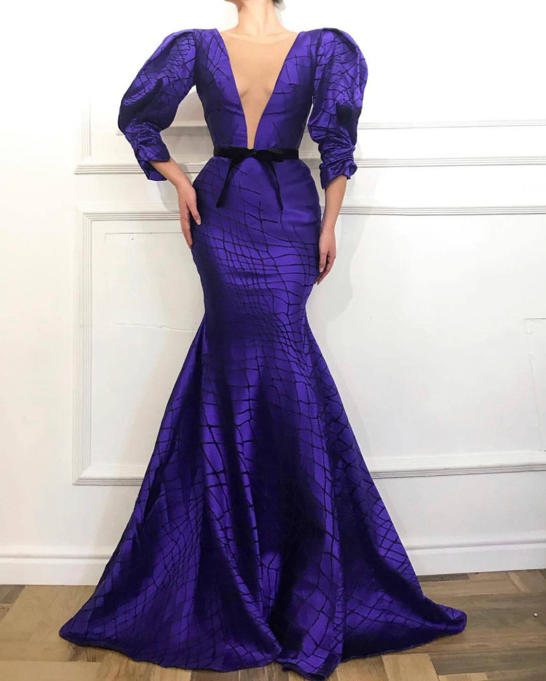 - Puffy shoulders V-neck and siren shape dress