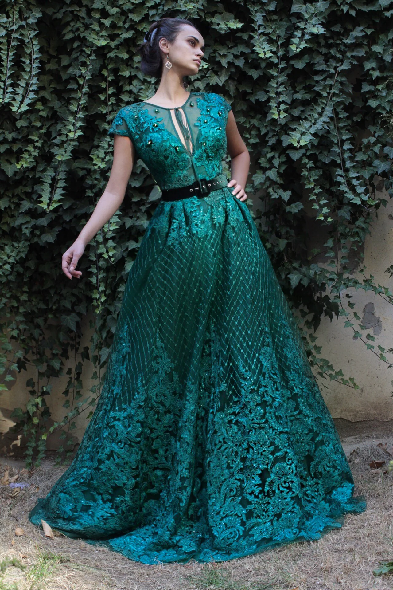 - Ball gown dress style with waist definition