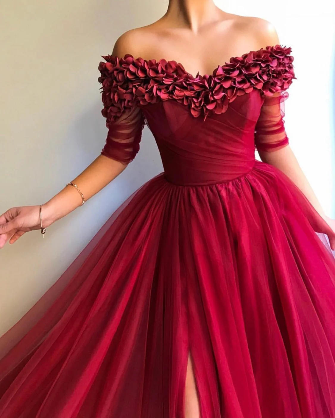 - Off-shoulder dress style