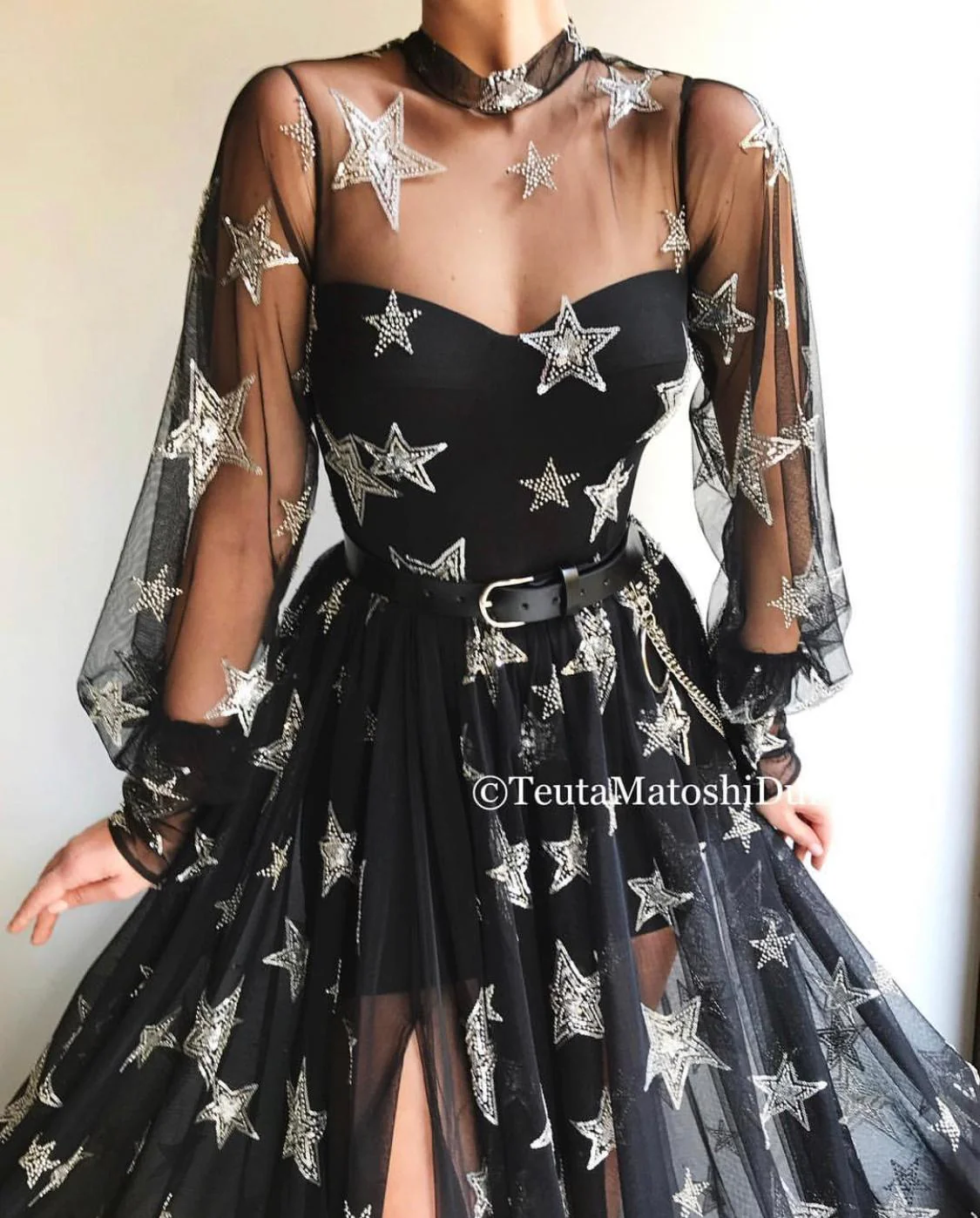 - Handmade embroidered shiny stars and black belt