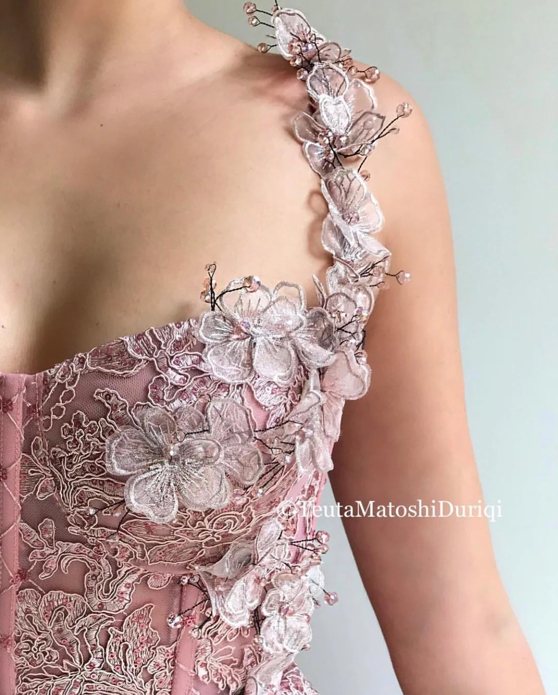 - Handmade embroidered flowers with crystals and velvet belt