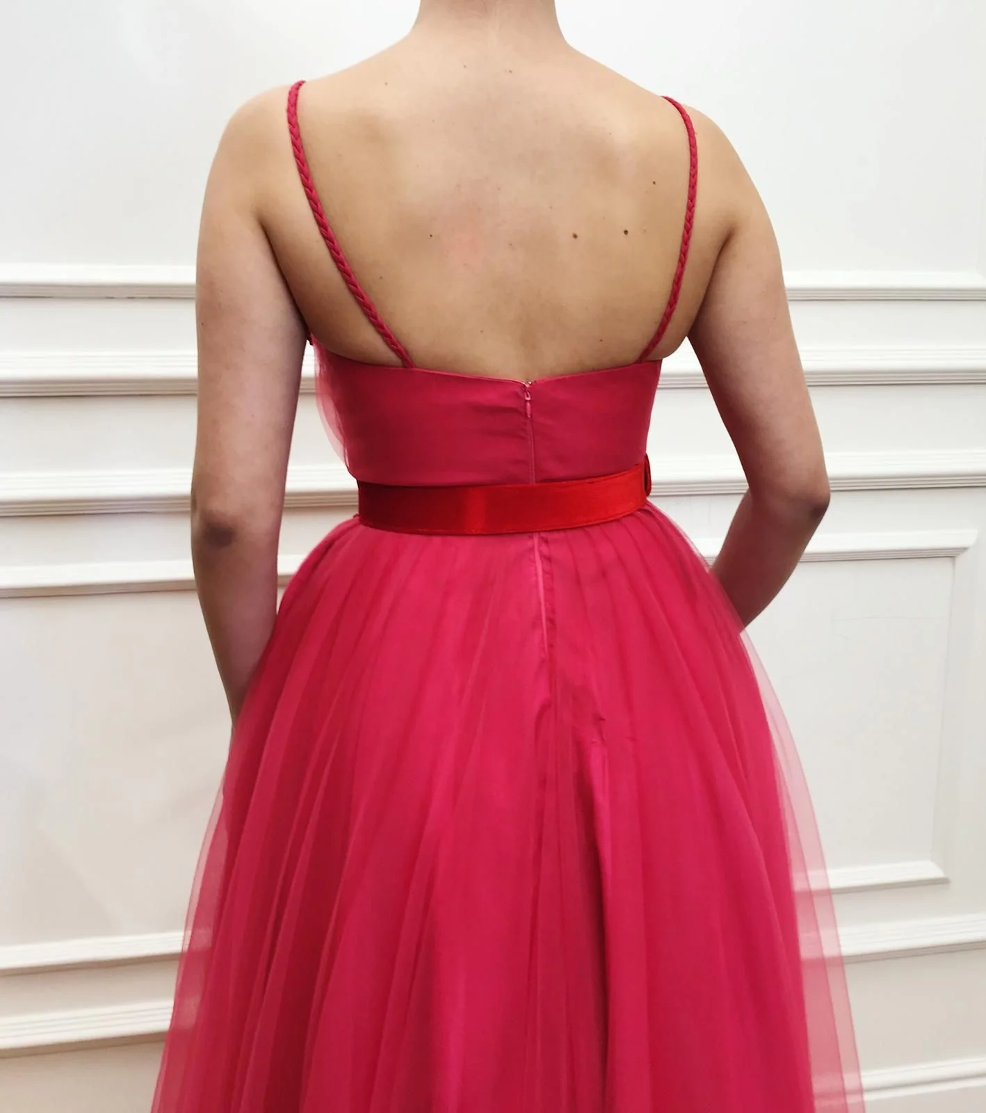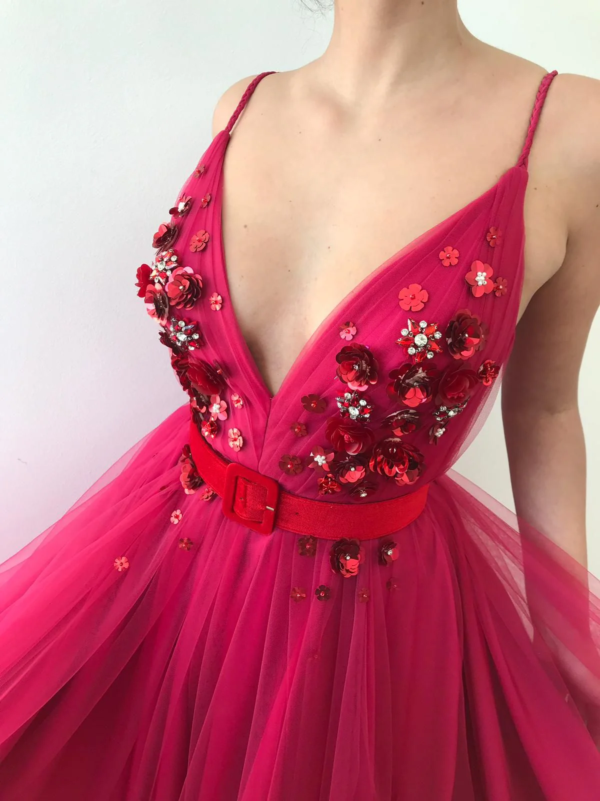 - Handmade shiny crystal and holographic flowers and a red velvet belt
