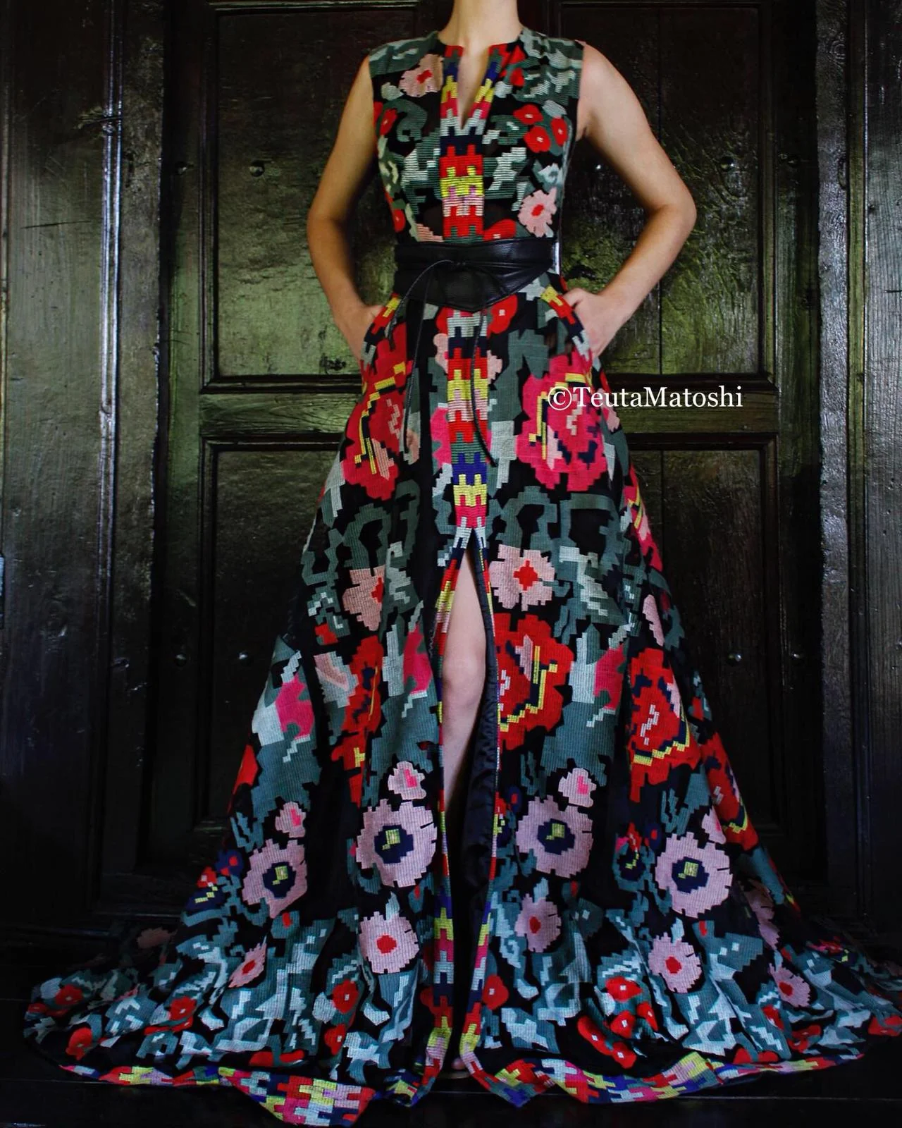 - Black leather belt detail