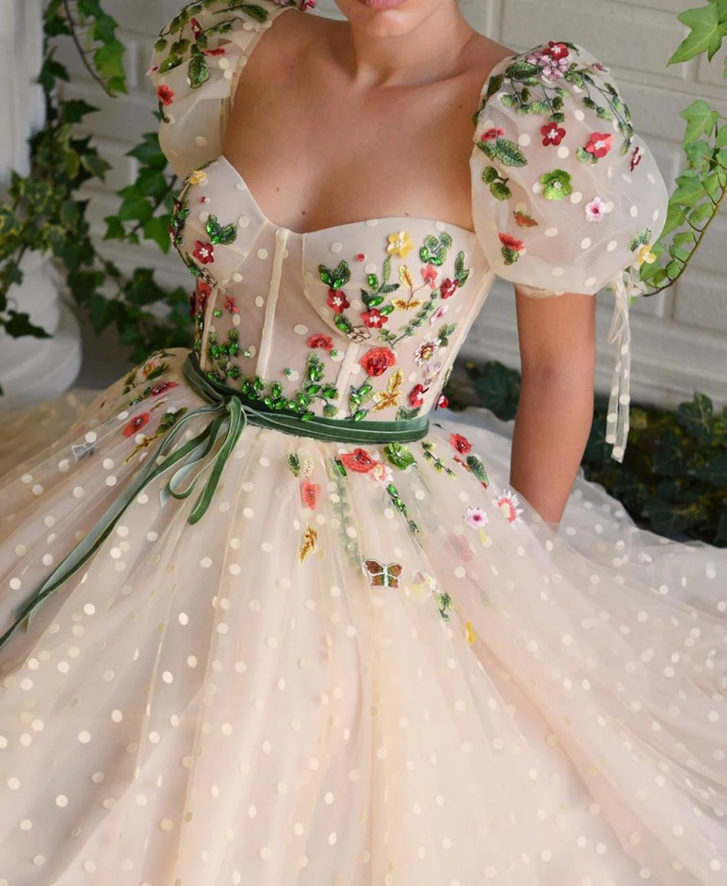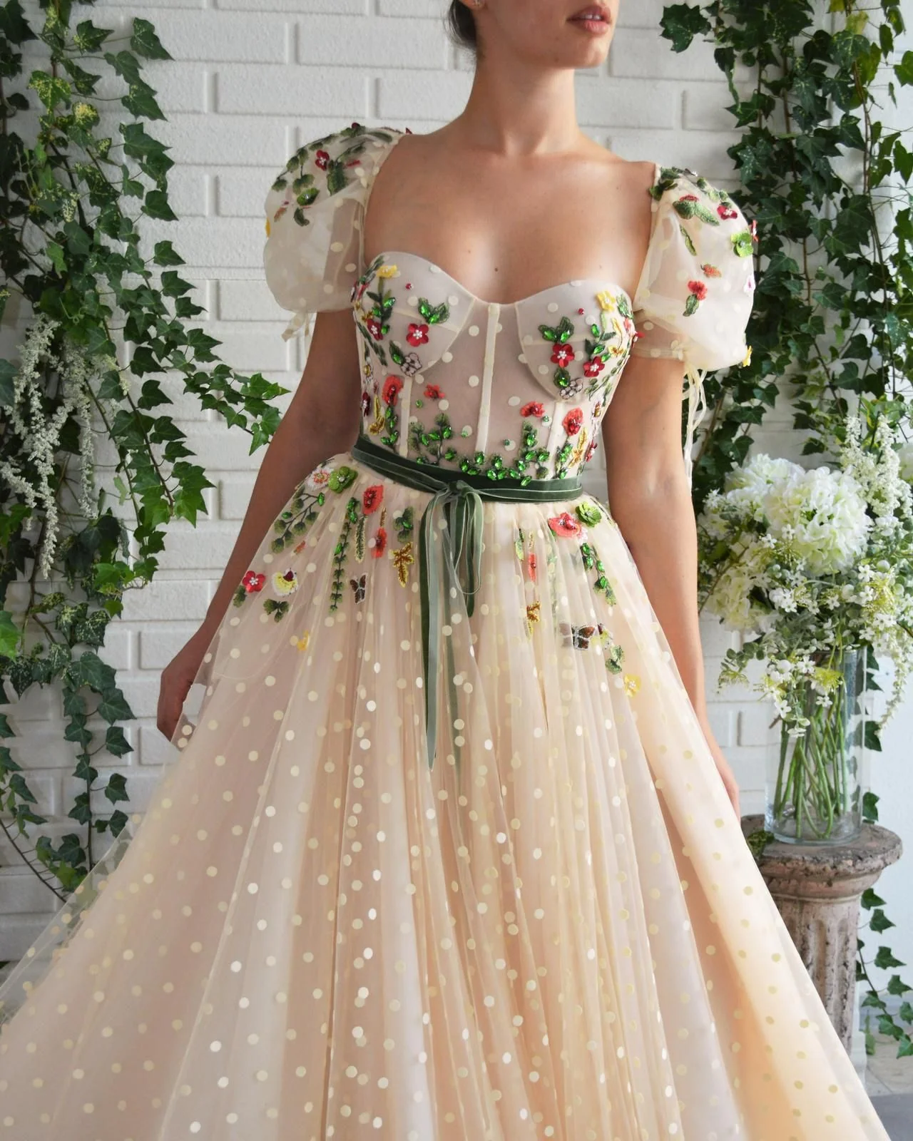 - Embroidered with flowers and crystals